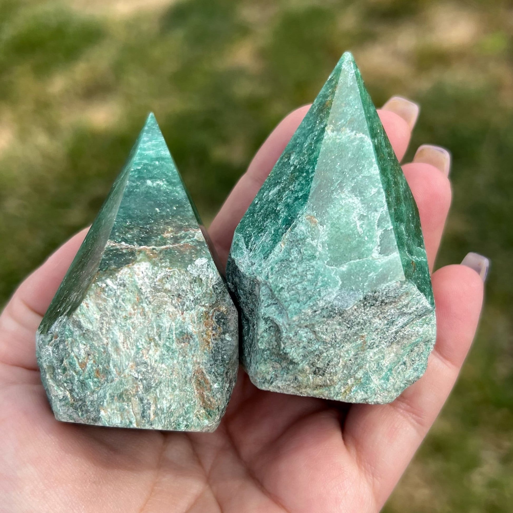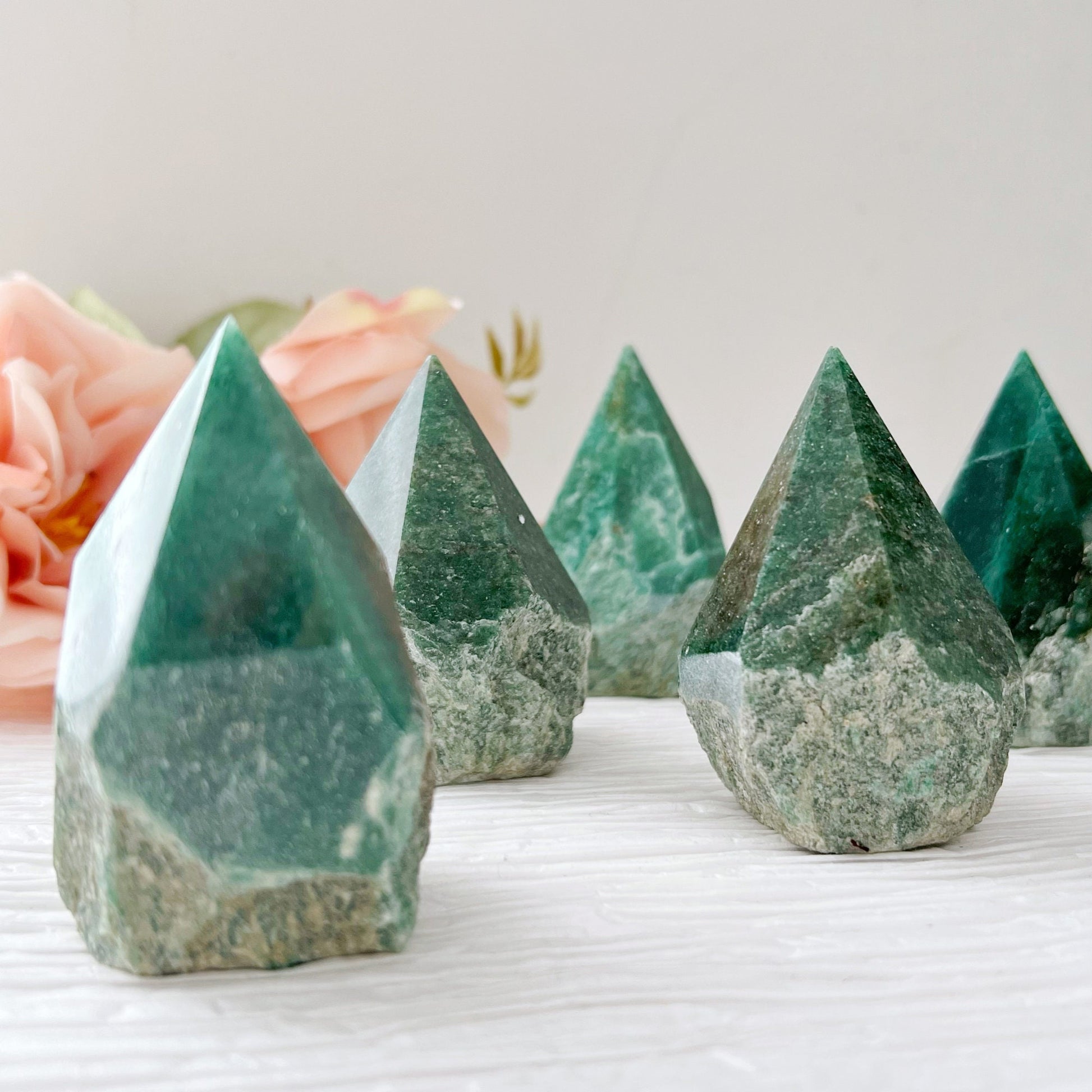 Dark Green Aventurine is a crystal that's often associated with good luck, prosperity, and heart-centered healing. Its rich, earthy hue and polished point design make it an elegant addition to any crystal collection. Whether you're a seasoned crystal enthusiast or just beginning to explore the world of metaphysical properties, our Dark Green Aventurine Crystal Polished Top Points are sure to captivate your senses and enhance your spiritual journey. Embrace the tranquility and abundance that these crystals have to offer today.