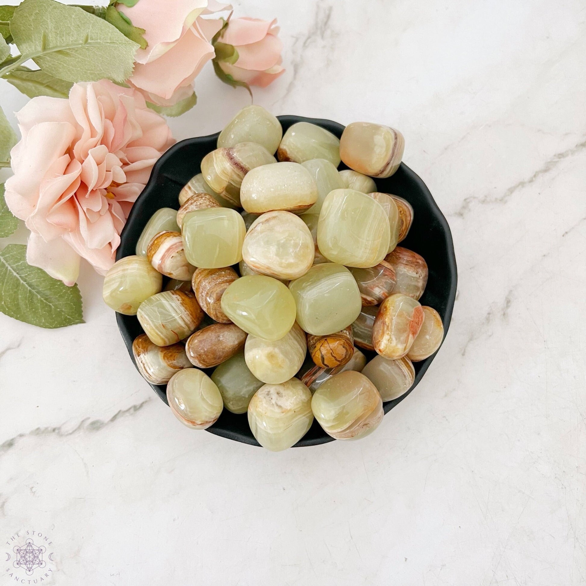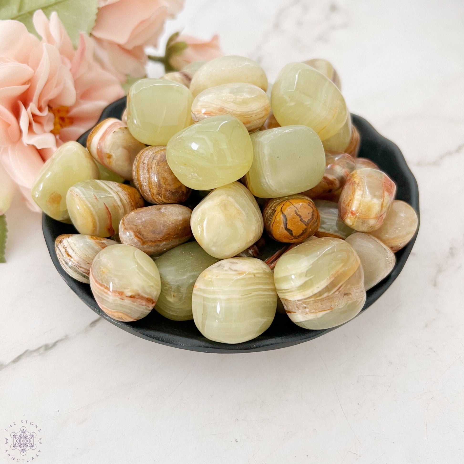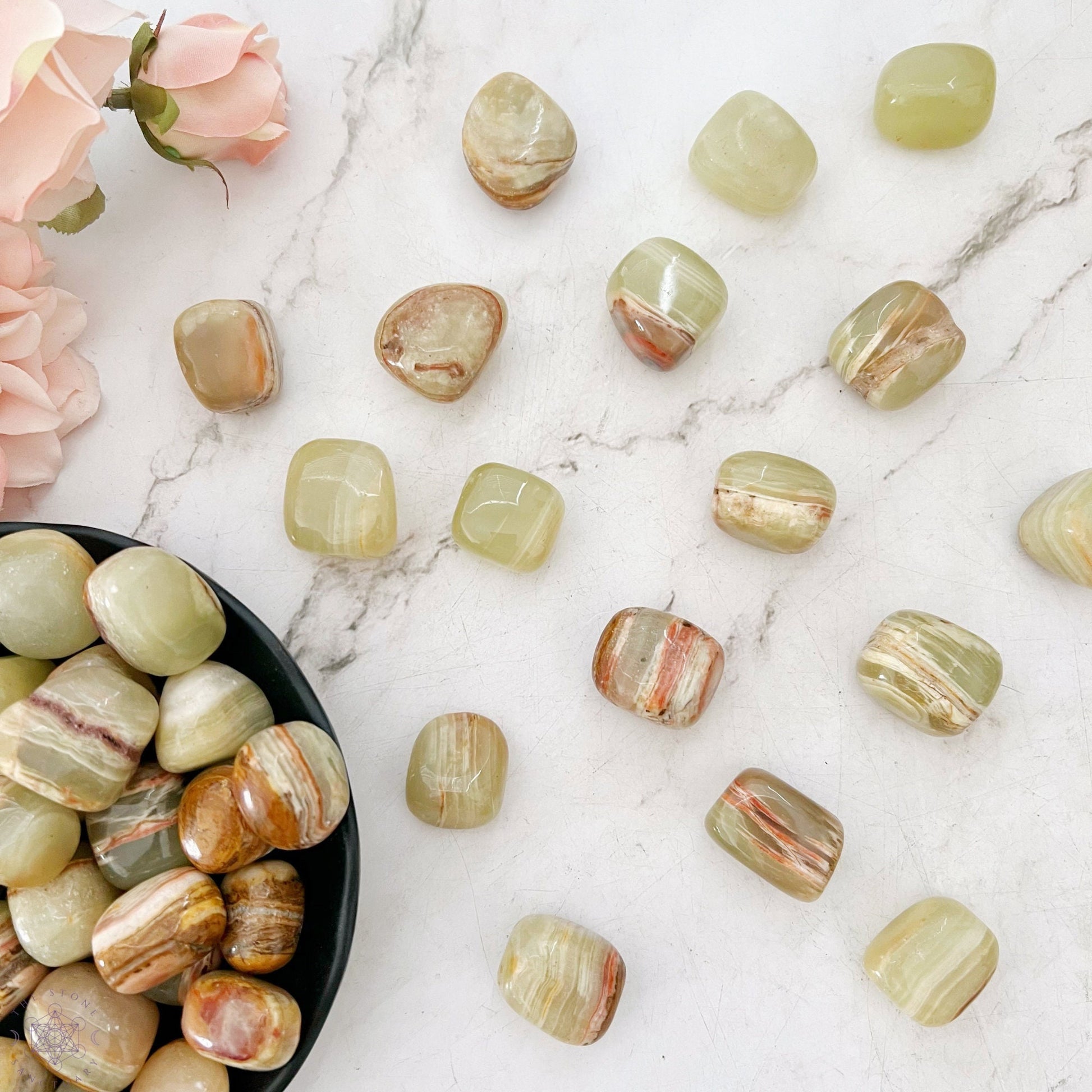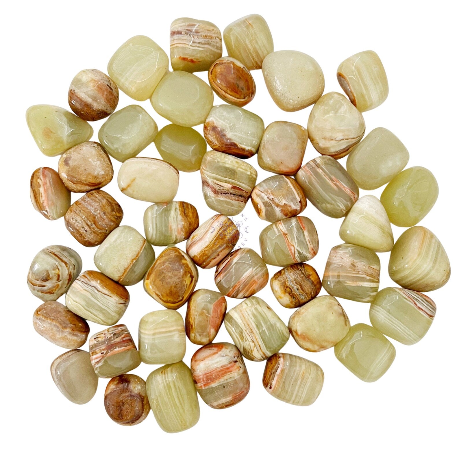 You will receive one (1), polished tumbled green onyx crystal measuring .75-1" in size, intuitively chosen for you.