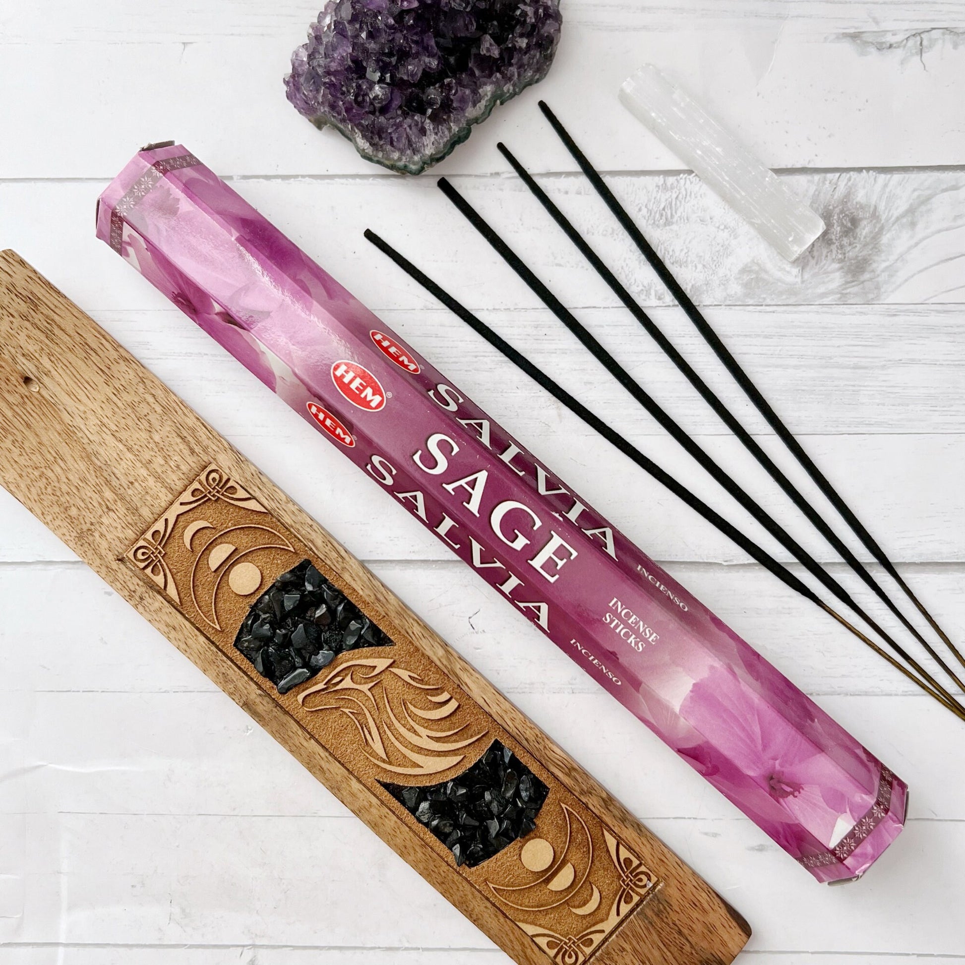 Sage has been used in ceremonies to seek blessings of health and prosperity, banish spirits, encourage protection, remove negativity and cleanse spaces. Embrace the Universe and use incense as a tool in your magical workings to enhance your magick.