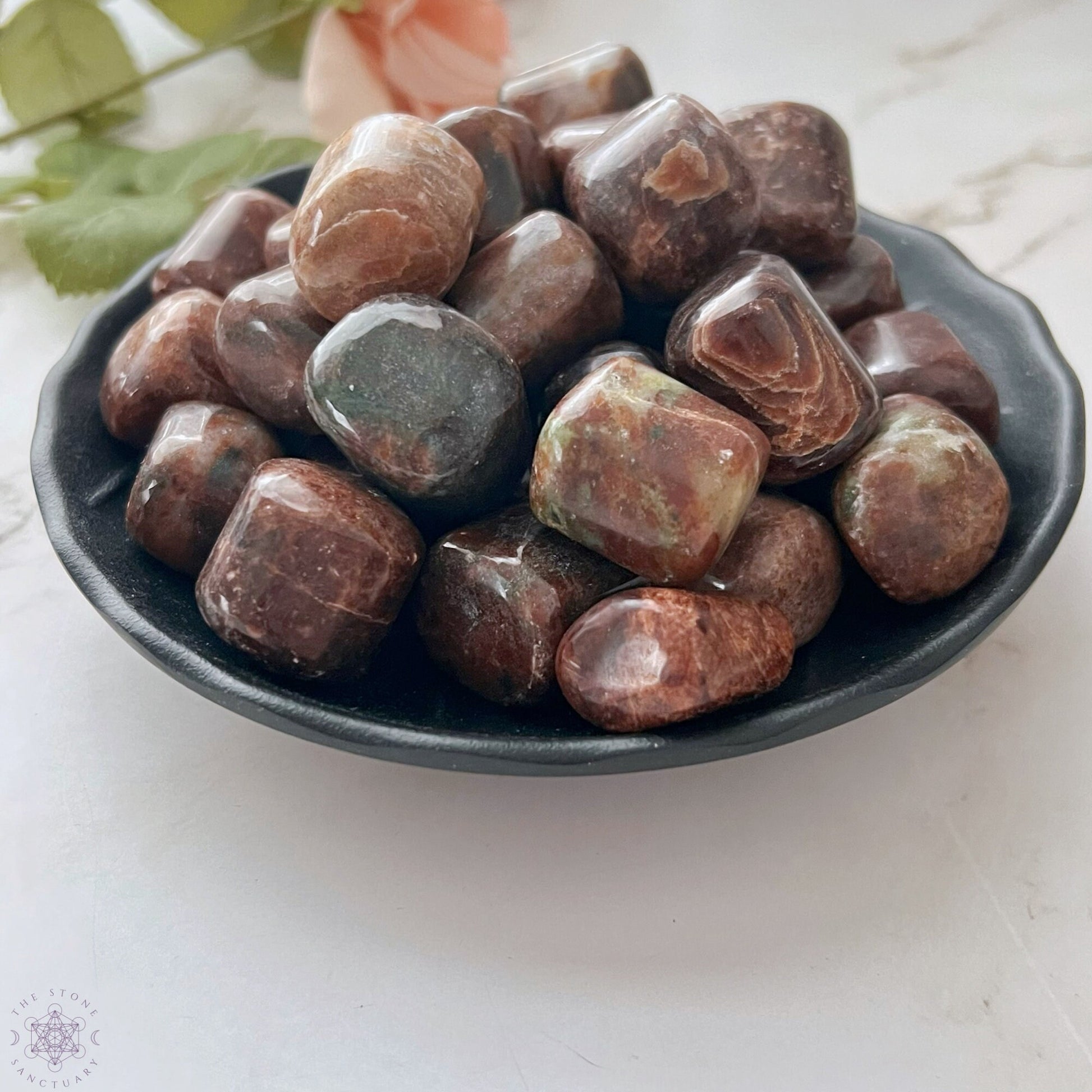 You will receive 1 Hessonite Garnet Tumbled Stone intuitively chosen approximately 1" in size. These hand-polished Hessonite tumble crystals highlights their rich orange-brown color and unique patterns.