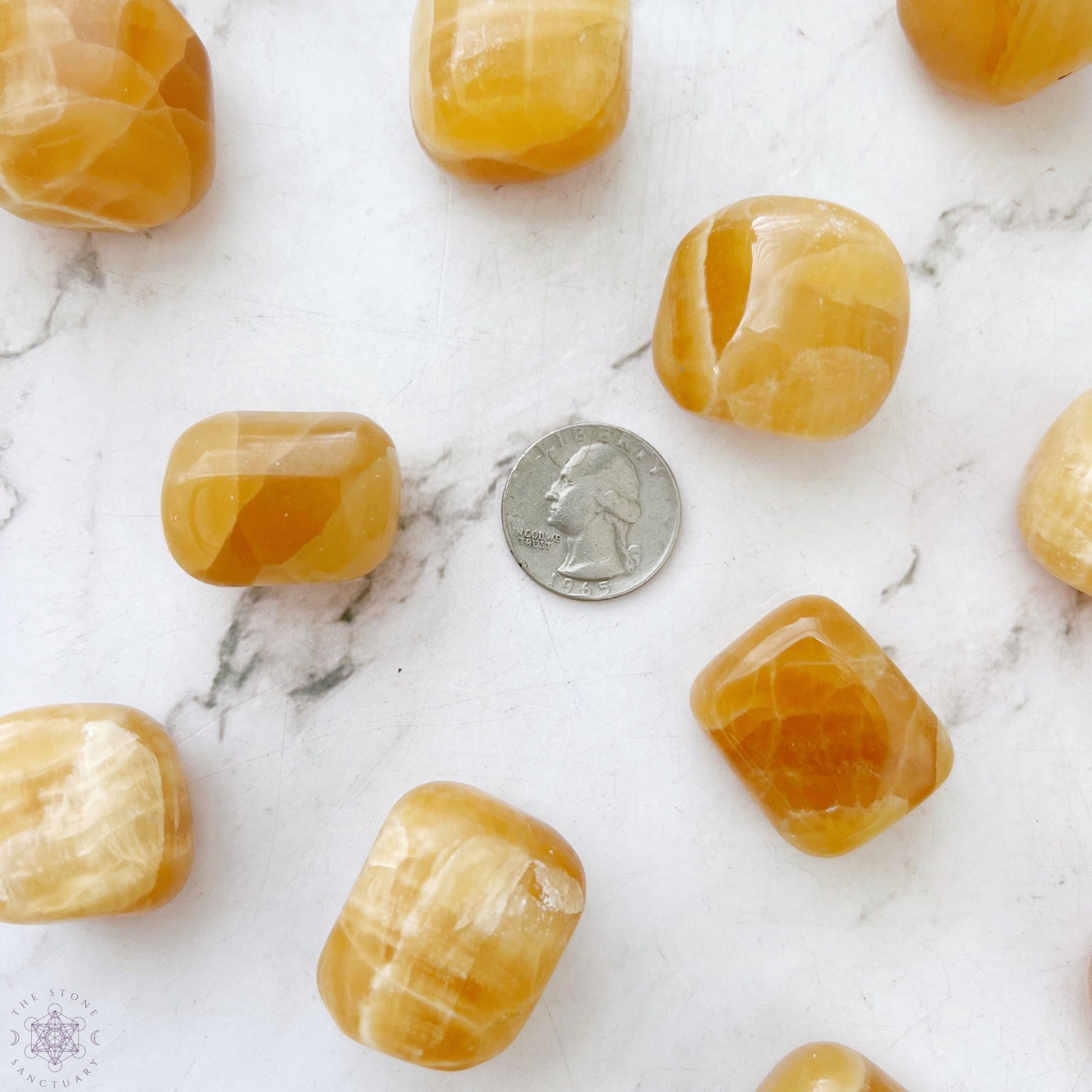 Experience the captivating energy of Honey Calcite as it resonates with your intentions and guides you toward a path of inner harmony and self-discovery. Each tumbled stone is a reflection of the natural world's beauty, carefully selected to align with your spiritual journey and bring a touch of sunshine to your days.