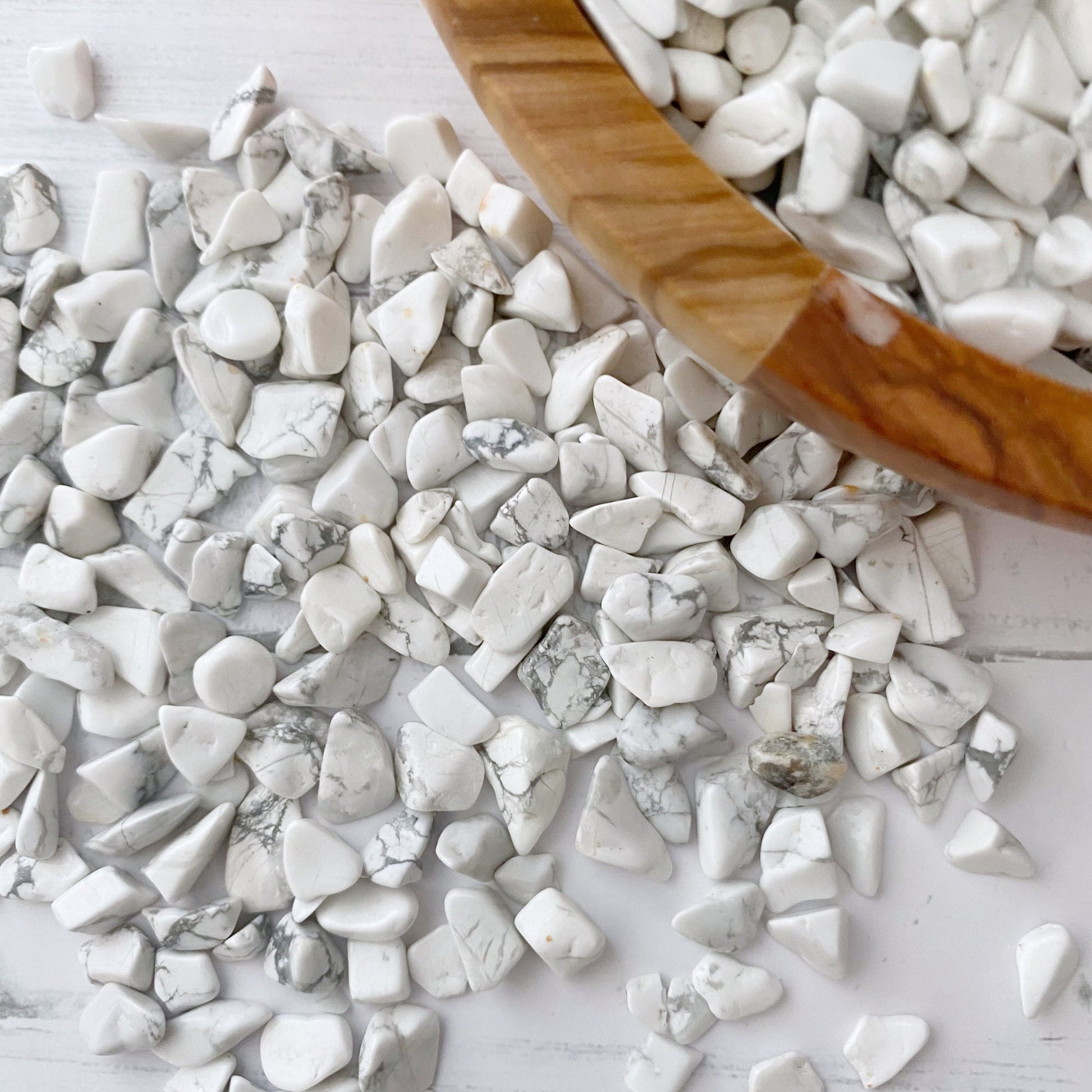 White Howlite Crystal Chips are tumbled and polished tiny stones. These mini stones are perfect for various creative and mystical endeavors. Whether you're into candle making, adding to your roller ball oils, crafting, or creating resin jewelry, these chips add a touch of natural energy to your projects. They're also ideal for spell jars, mojo bags, witch balls, orgone devices, and as sacred additions to your altar jars.