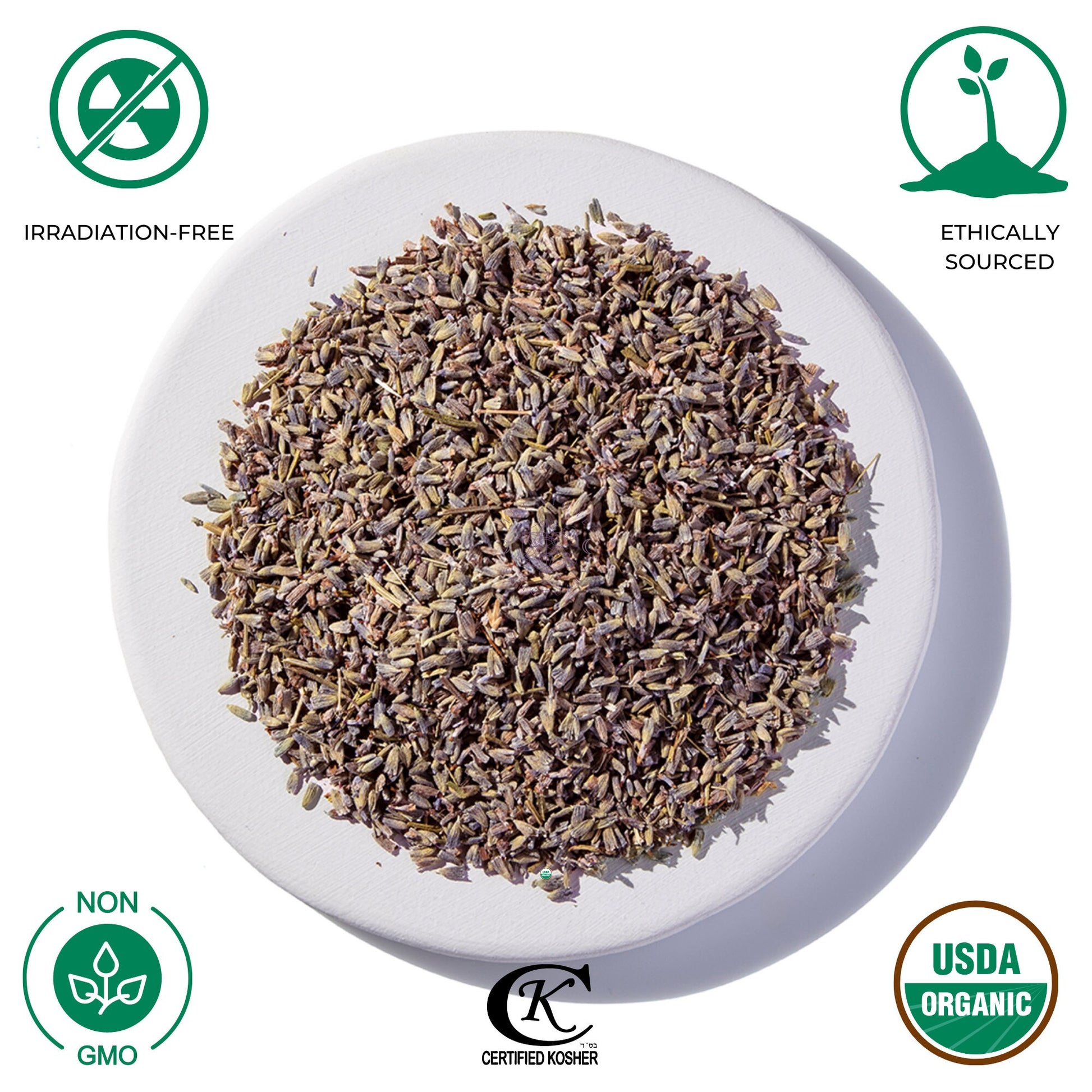 Our Organic Dried Lavender Flowers are Extra Grade, with a slightly bitter, floral, grassy flavor enhanced by the aroma. They have a little more green or blue-grey color compared to Select and Super grades, and also contain slightly more stems and leaves, making them a cost-effective alternative in culinary preparations and crafts that do not rely on visual presentation.