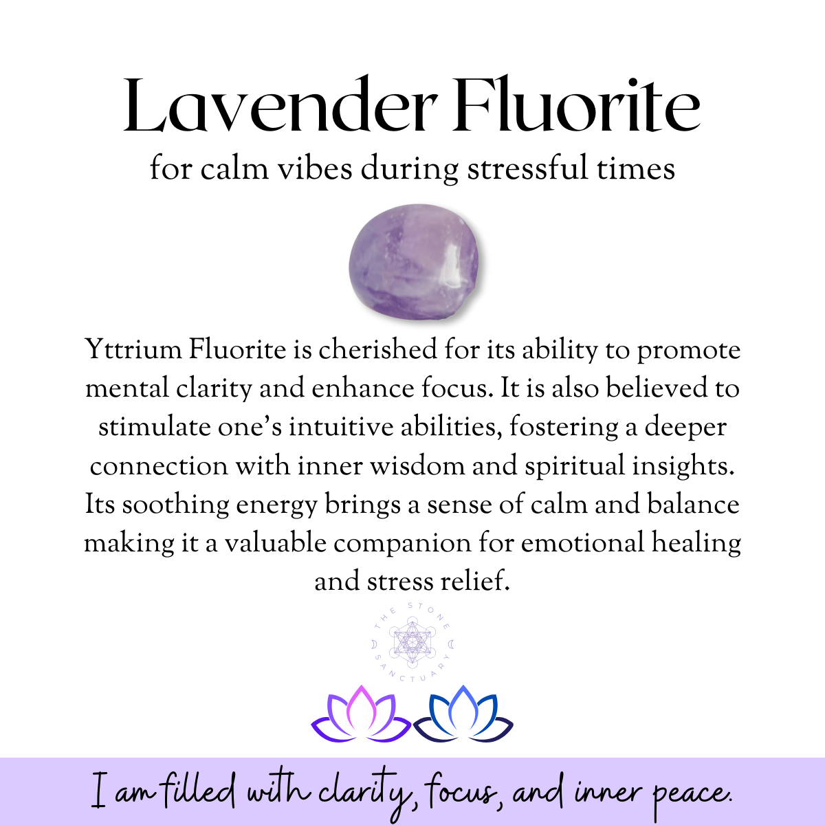 Beyond this, Lavender Fluorite carries a calming energy that can help in reducing stress and anxiety. The soothing energy of this stone can assist you in finding balance amid chaos and promoting a sense of inner peace.