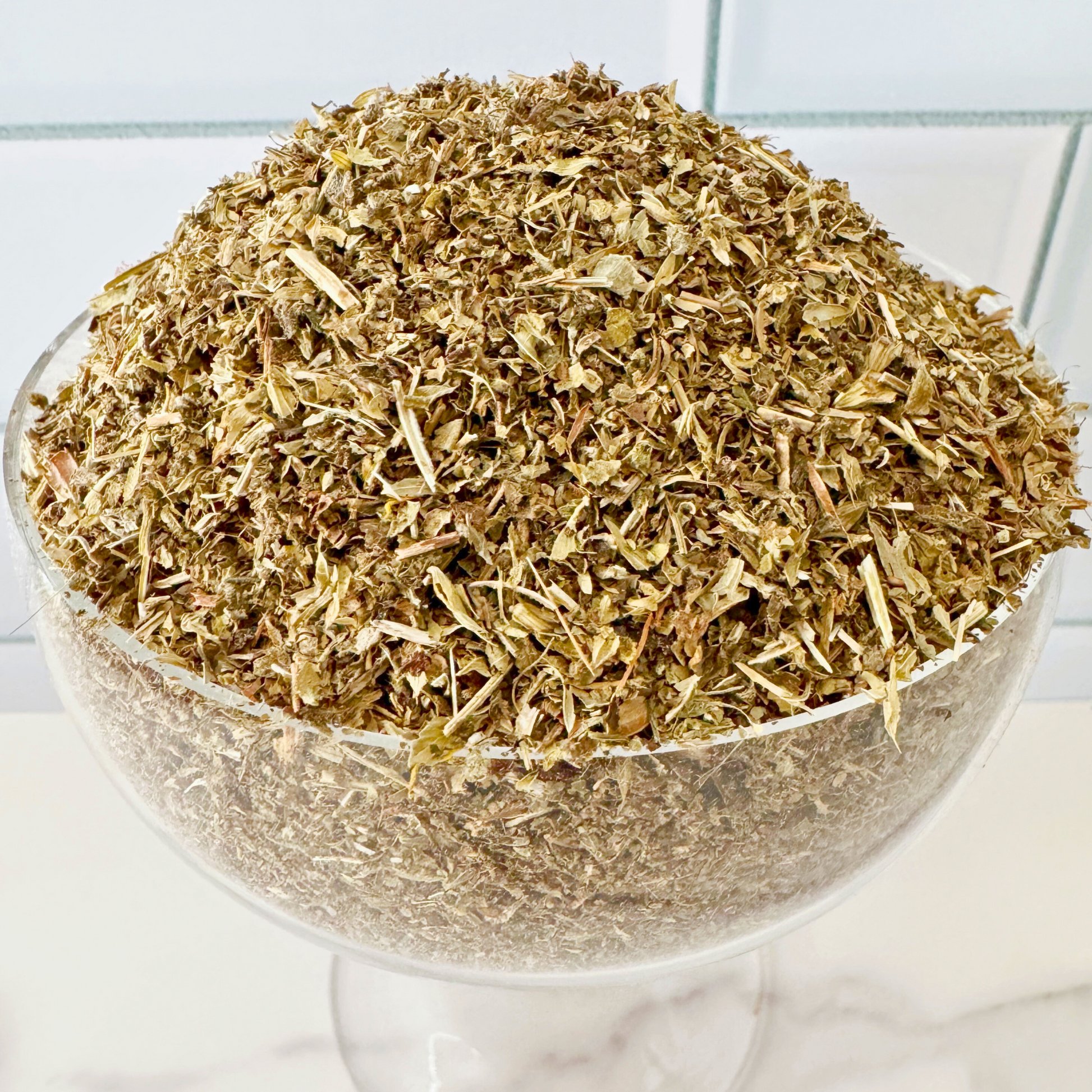 Introducing our Lemon Balm Leaf Cut & Sifted (Melissa officinalis)—a potent botanical ally that transcends the boundaries of the mundane and opens the door to magical possibilities. Lemon Balm is a perennial herb from the mint family known for its aromatic, citrus-scented leaves.