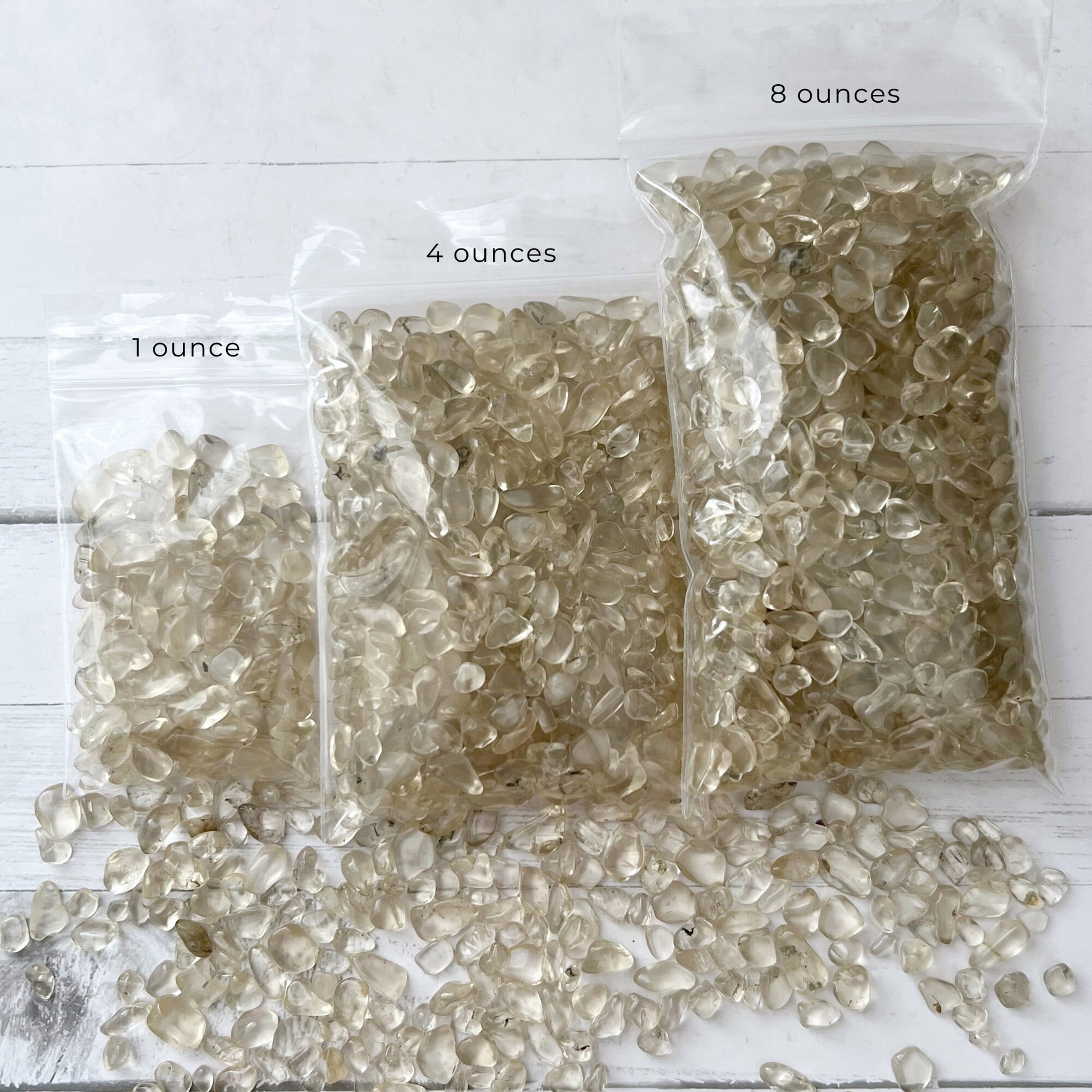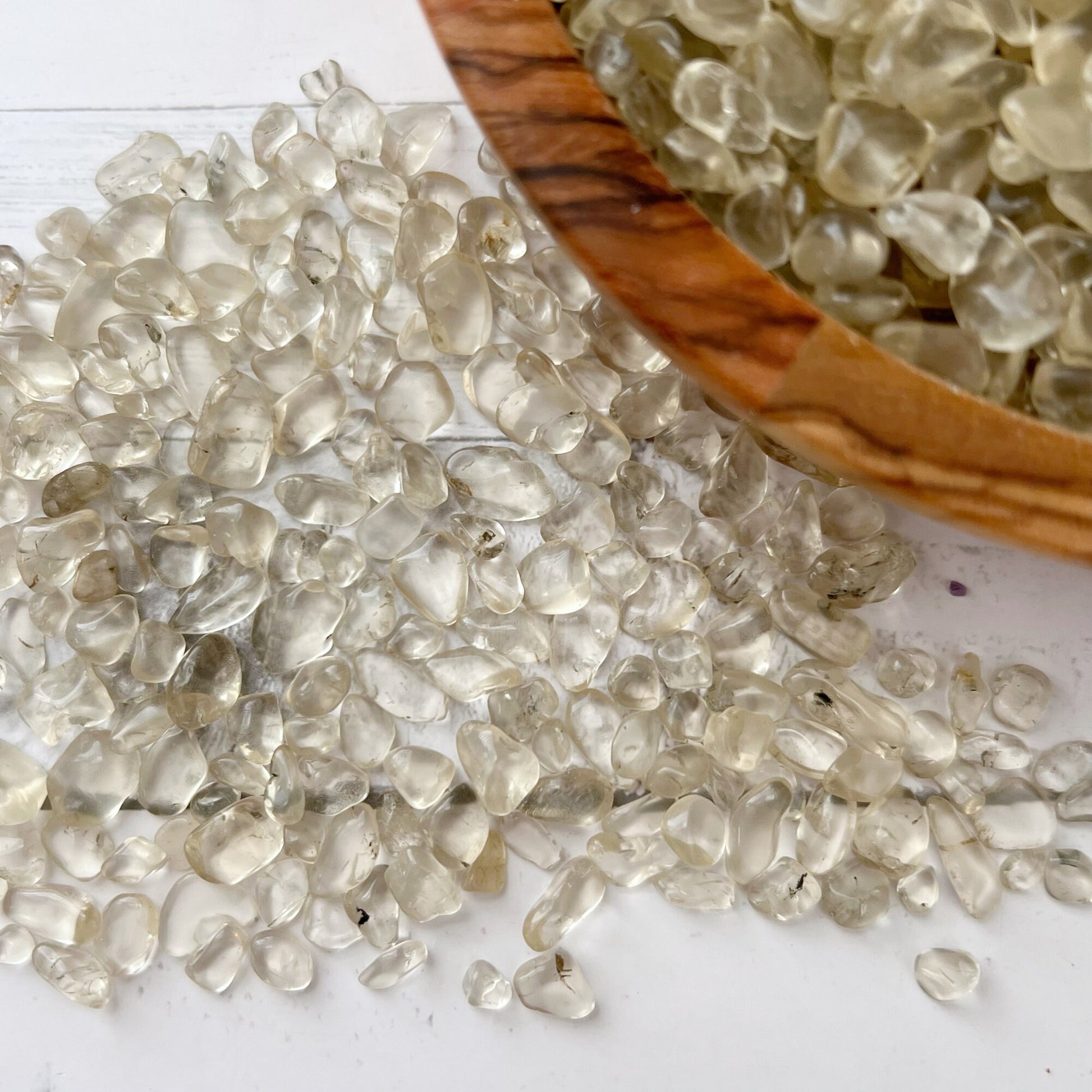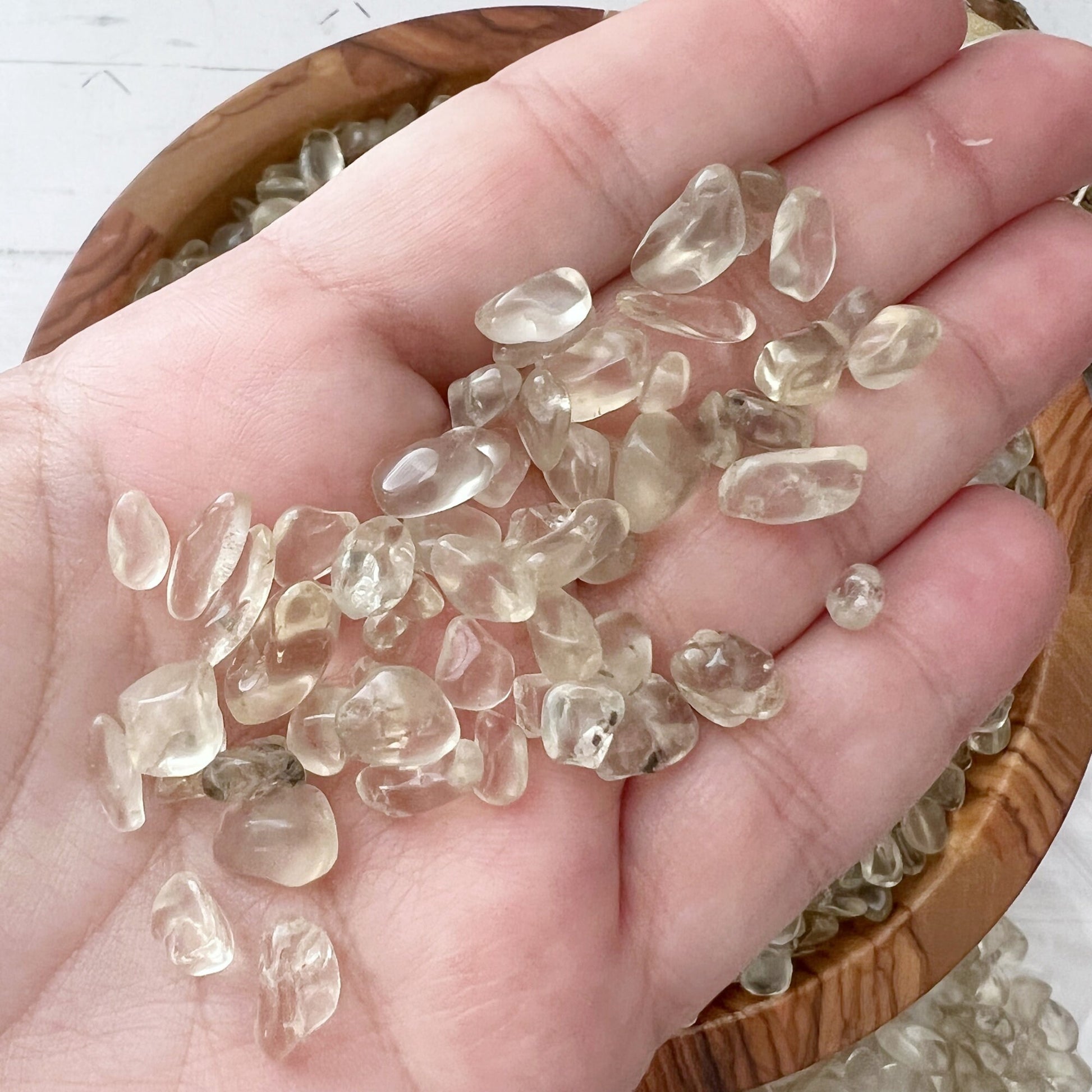 Lemon Quartz Crystal Chips are tumbled and polished tiny stones. These mini stones are perfect for various creative and mystical endeavors. Whether you're into candle making, adding to your roller ball oils, crafting, or creating resin jewelry, these chips add a touch of natural energy to your projects. They're also ideal for spell jars, mojo bags, witch balls, orgone devices, and as sacred additions to your altar jars.