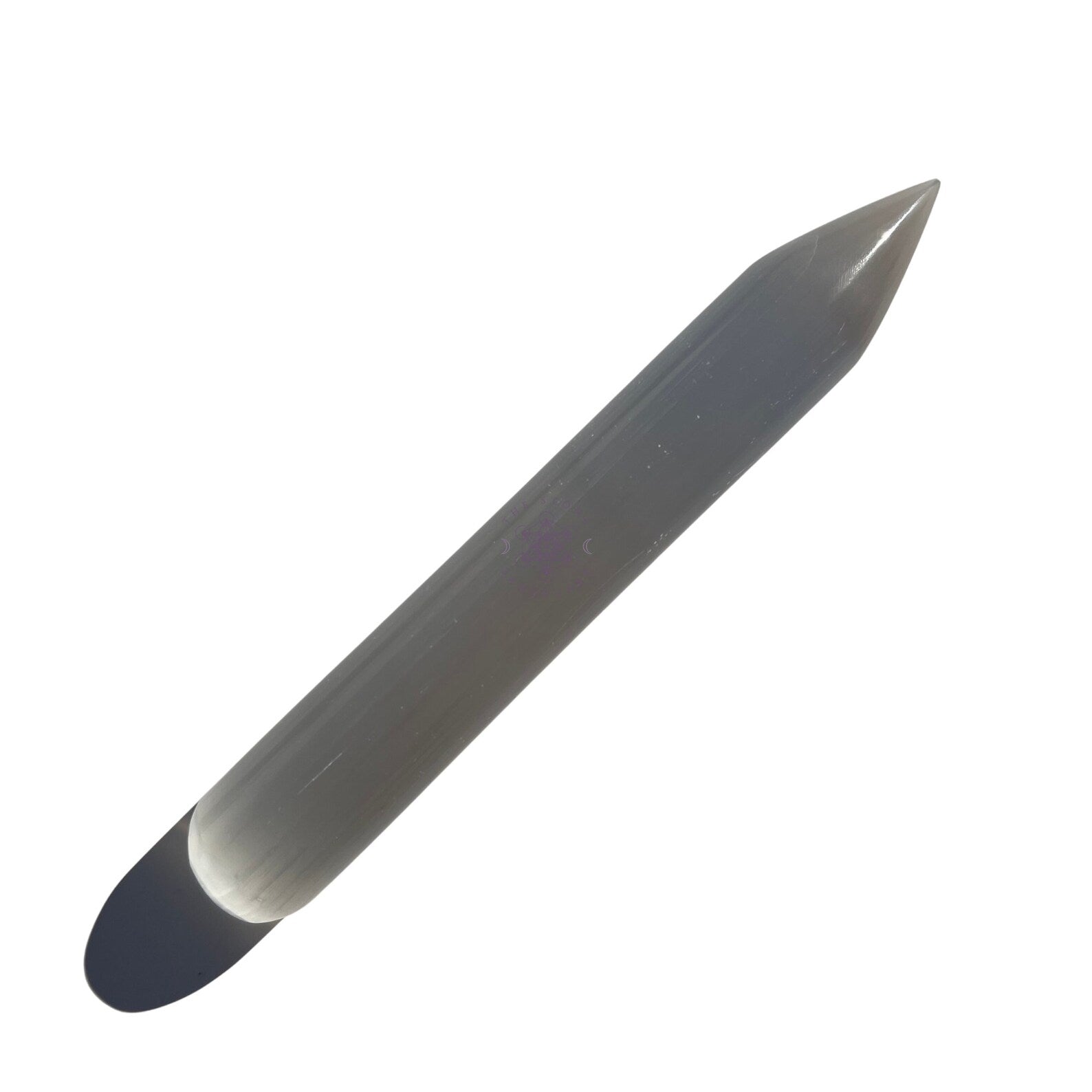 Illuminate your spiritual practices with our exquisite hand polished 5-6-inch Selenite wand, boasting a width of .75-1 inch and meticulously polished to radiate its innate luminosity. Designed for the modern mystic, this wand features a gently rounded end, ideal for infusing spaces with Selenite's tranquil energies, while the pointed tip serves to direct and channel energy with precision, making it an indispensable tool for energy work, Reiki, and rituals.