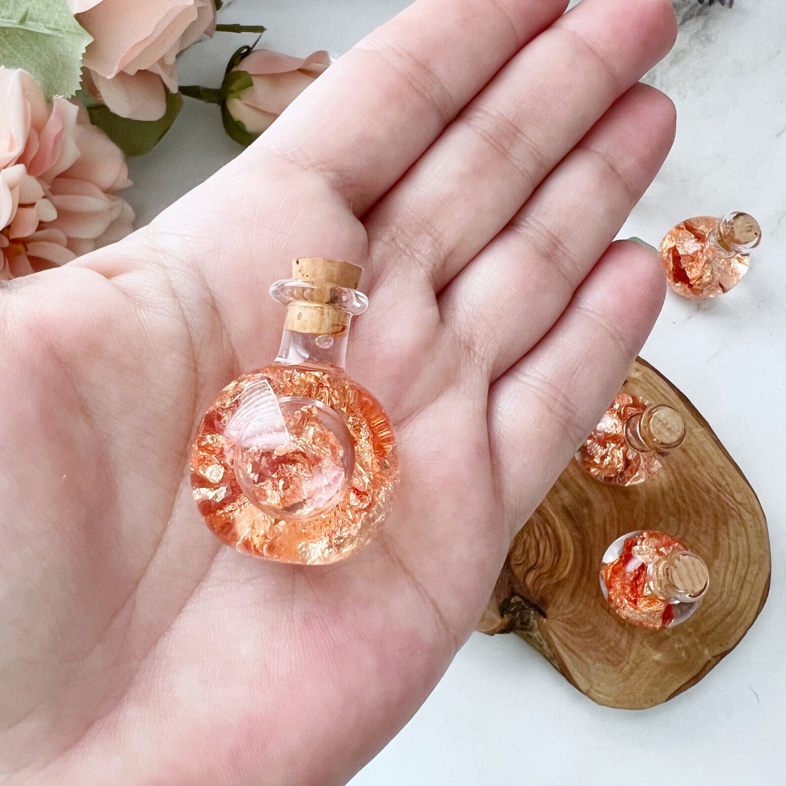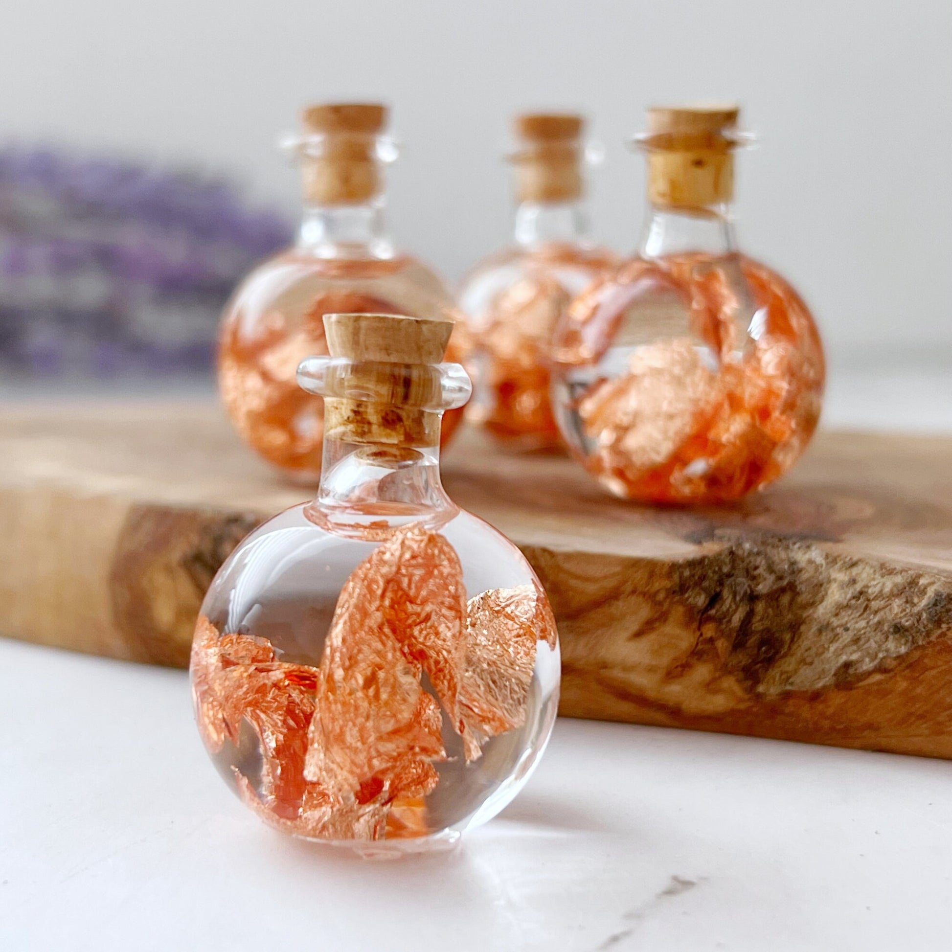 You will receive ONE (1) Bottle of genuine Copper Flakes in Mineral Oil that measures approx 1.30" high x 1" wide and weigh about .35 ounces. These are sealed bottles and unable to be opened. Handle with care, these are glass bottles. The bottle will be representative of the lot pictured but may vary as individual bottles vary.