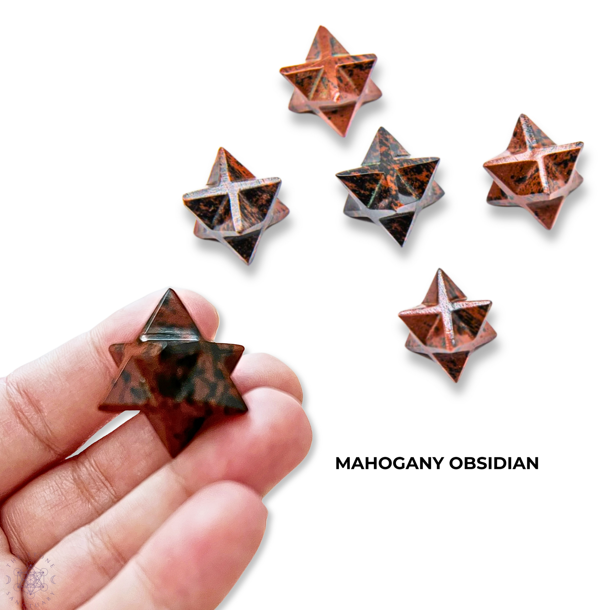 Step into the realm of grounding and protection with our 15-20mm Mahogany Obsidian Merkaba, a fusion of ancient wisdom and earthly strength. Crafted from rich Mahogany Obsidian, this sacred geometric marvel encapsulates the unique properties of this powerful stone with the profound significance of the Merkaba.