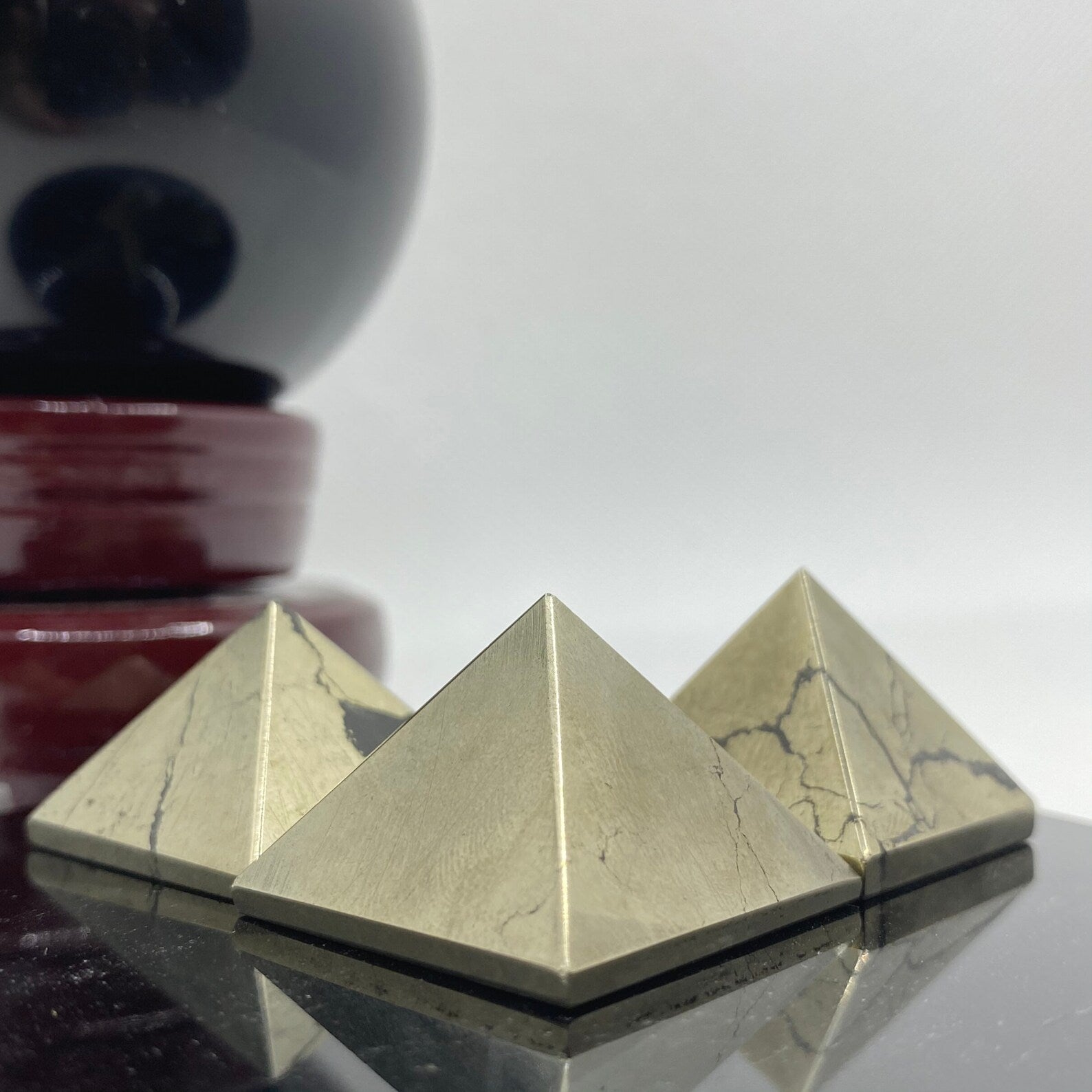 You will receive 1 polished Pyrite Pyramid intuitively chosen. Pyramids measure 25-30mm in size (approx 1" x 1" x 1")