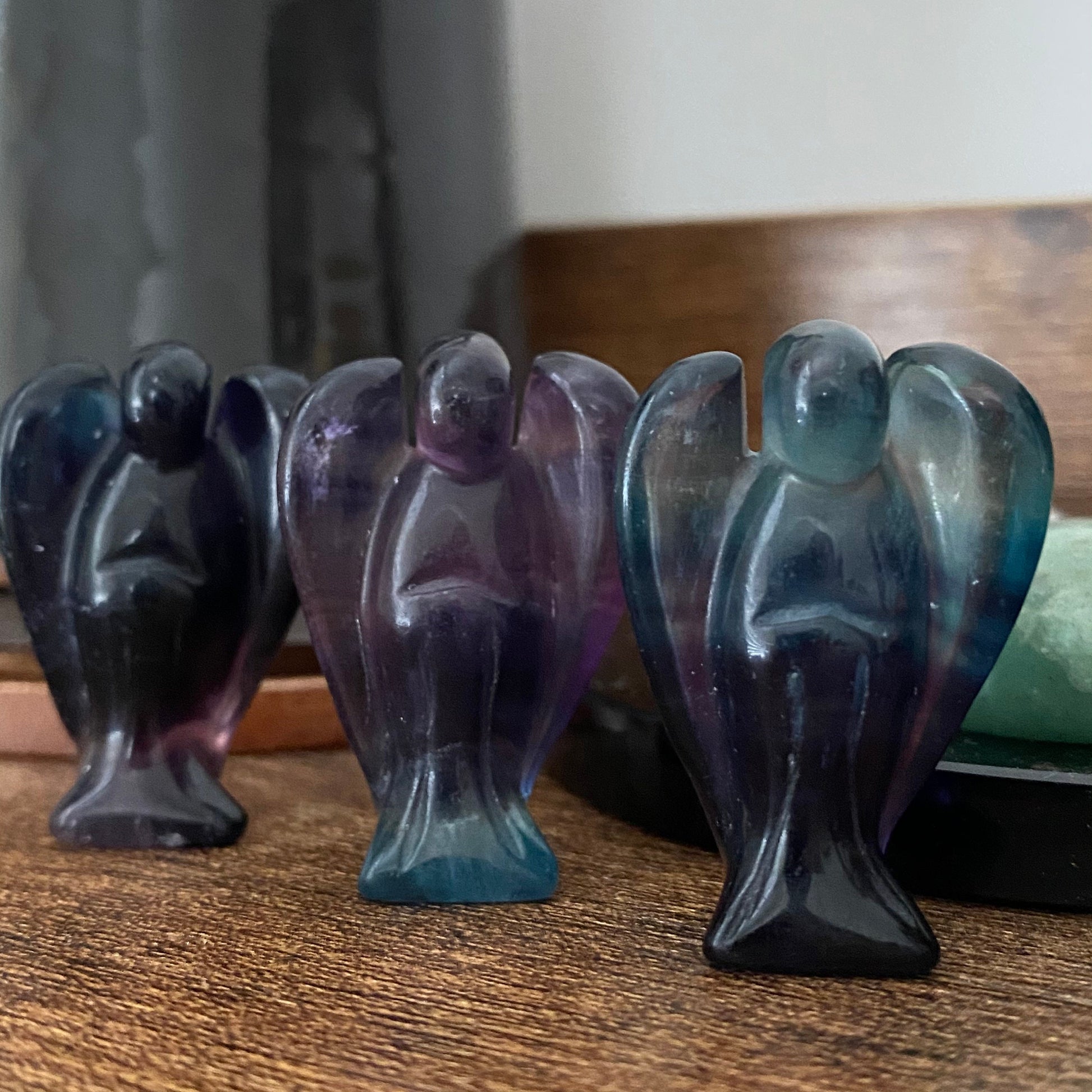 Introducing Your Guardian Angel: The 1.5" Mini Pocket Rainbow Fluorite Angel