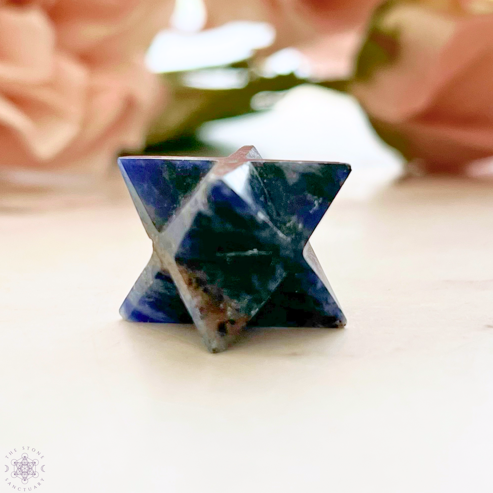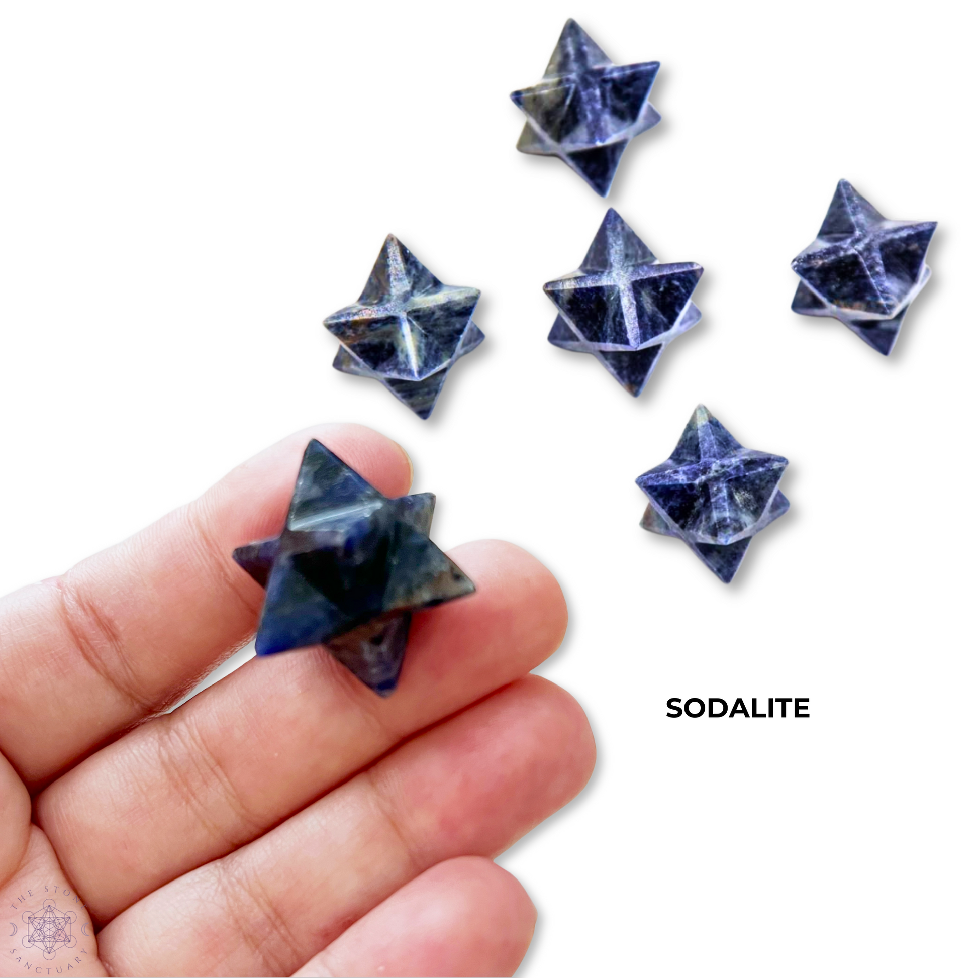 Immerse yourself in the tranquil energy of our 15-20mm Sodalite Merkaba, a harmonious blend of wisdom and inner peace. Crafted from the serene essence of Sodalite, this sacred geometric masterpiece intertwines the calming properties of Sodalite with the profound symbolism of the Merkaba.