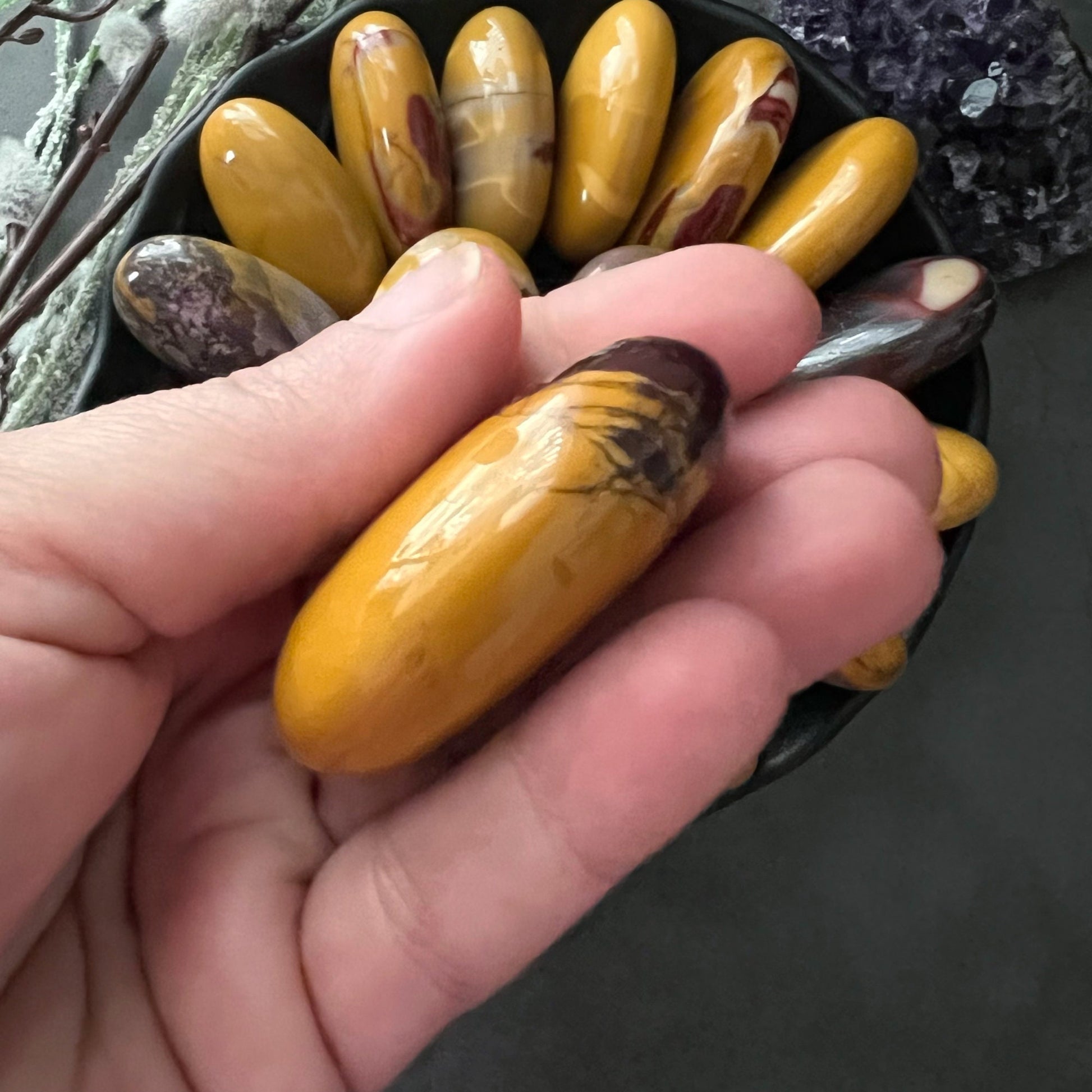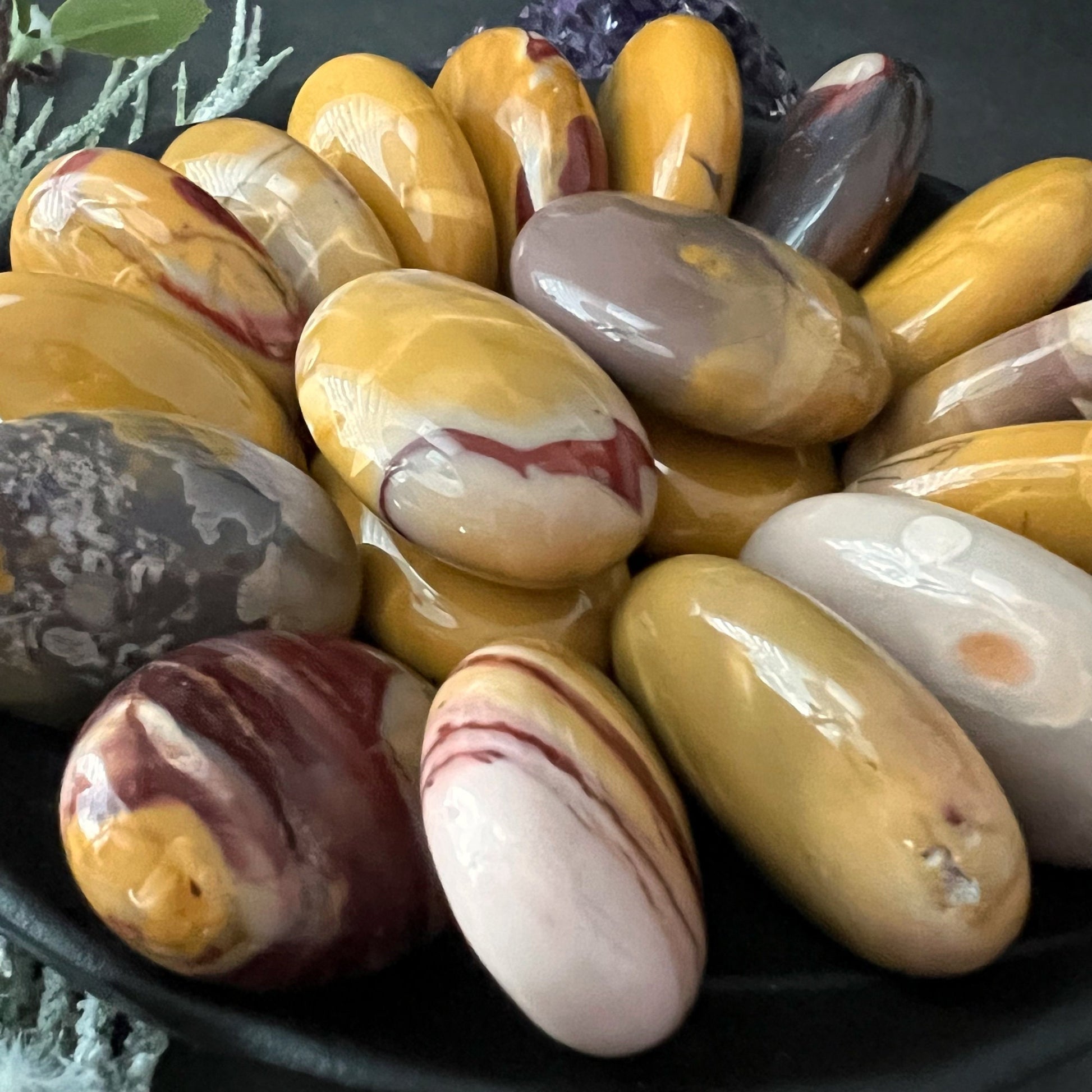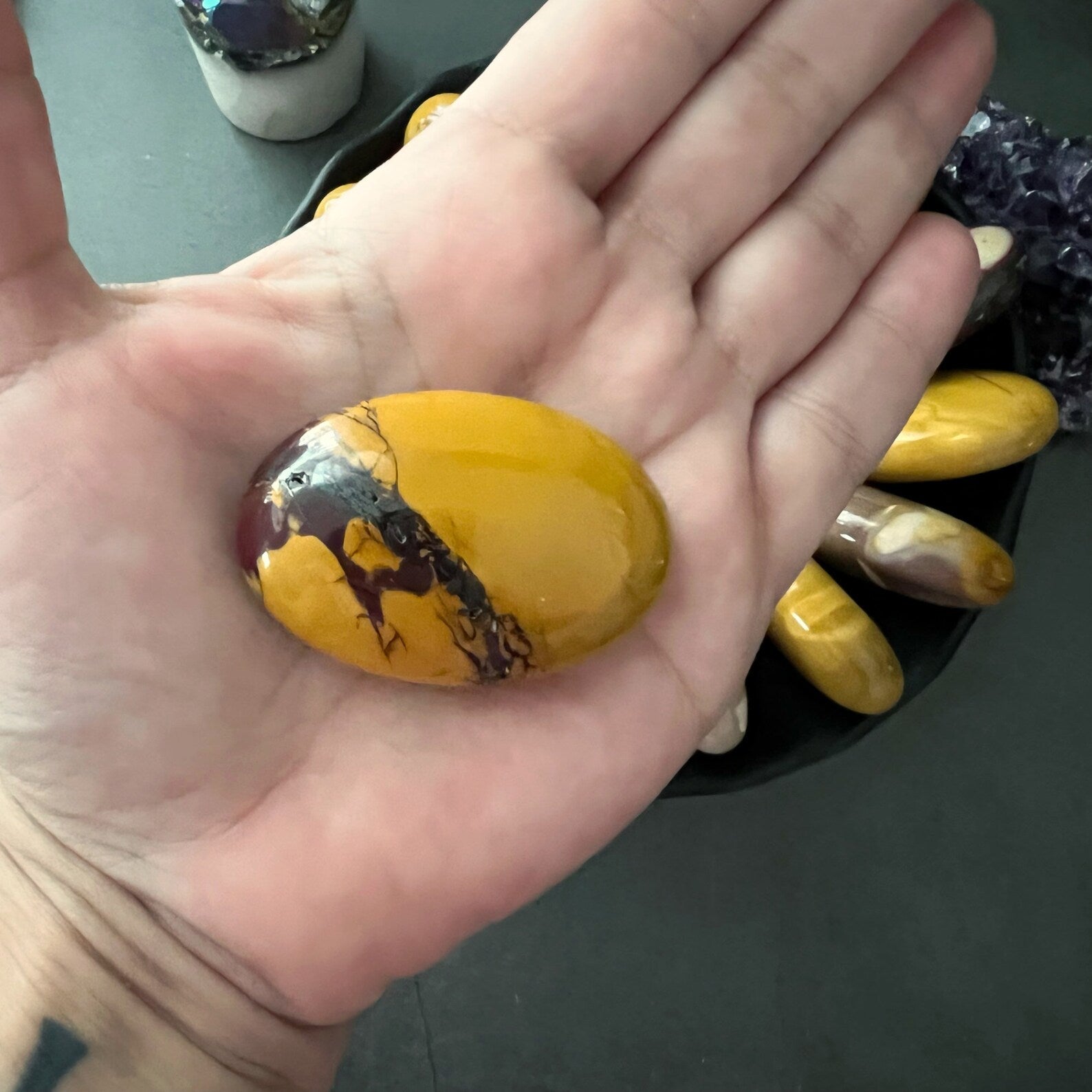 You will receive 1 Mookaite Palm Stone intuitively chosen. These measure approx 30x45x15mm - 1.75" L x 1.20" W