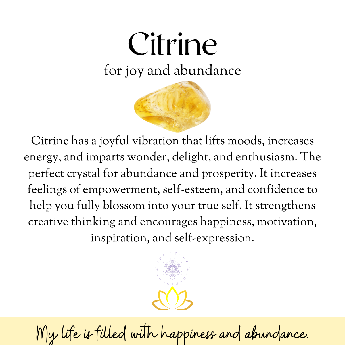Citrine radiant energy radiaites, activates and attracts. It brings mental clarity and prosperity into your life! Citrine is a powerful stone of manifestation and the perfect tool to work with for all things abundance. It's bright disposition imparts wonder, delight, and enthusiasm. By working with your Solar Plexus Chakra, it increases your feelings of empowerment, self-esteem, and confidence to help you fully blossom into your true self. Citrine is also strengthens the intellectual and creative thinking, encouraging motivation, inspiration, and self-expression.