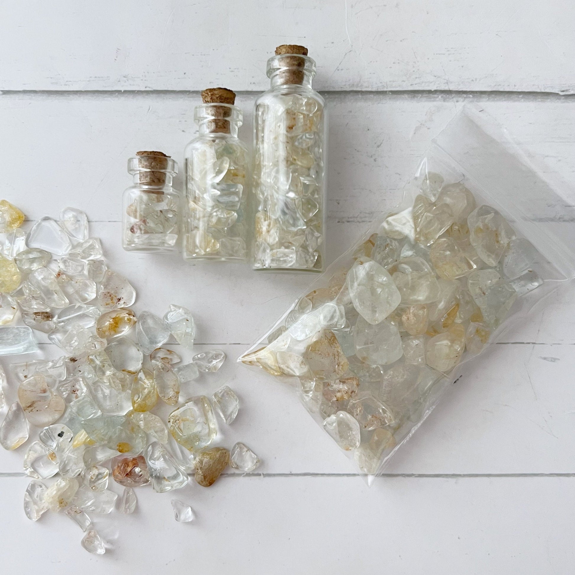 Natural Topaz Crystal Chips are tumbled and polished tiny stones. These mini stones are perfect for various creative and mystical endeavors. Whether you're into candle making, adding to your roller ball oils, crafting, or creating resin jewelry, these chips add a touch of natural energy to your projects. They're also ideal for spell jars, mojo bags, witch balls, orgone devices, and as sacred additions to your altar jars.