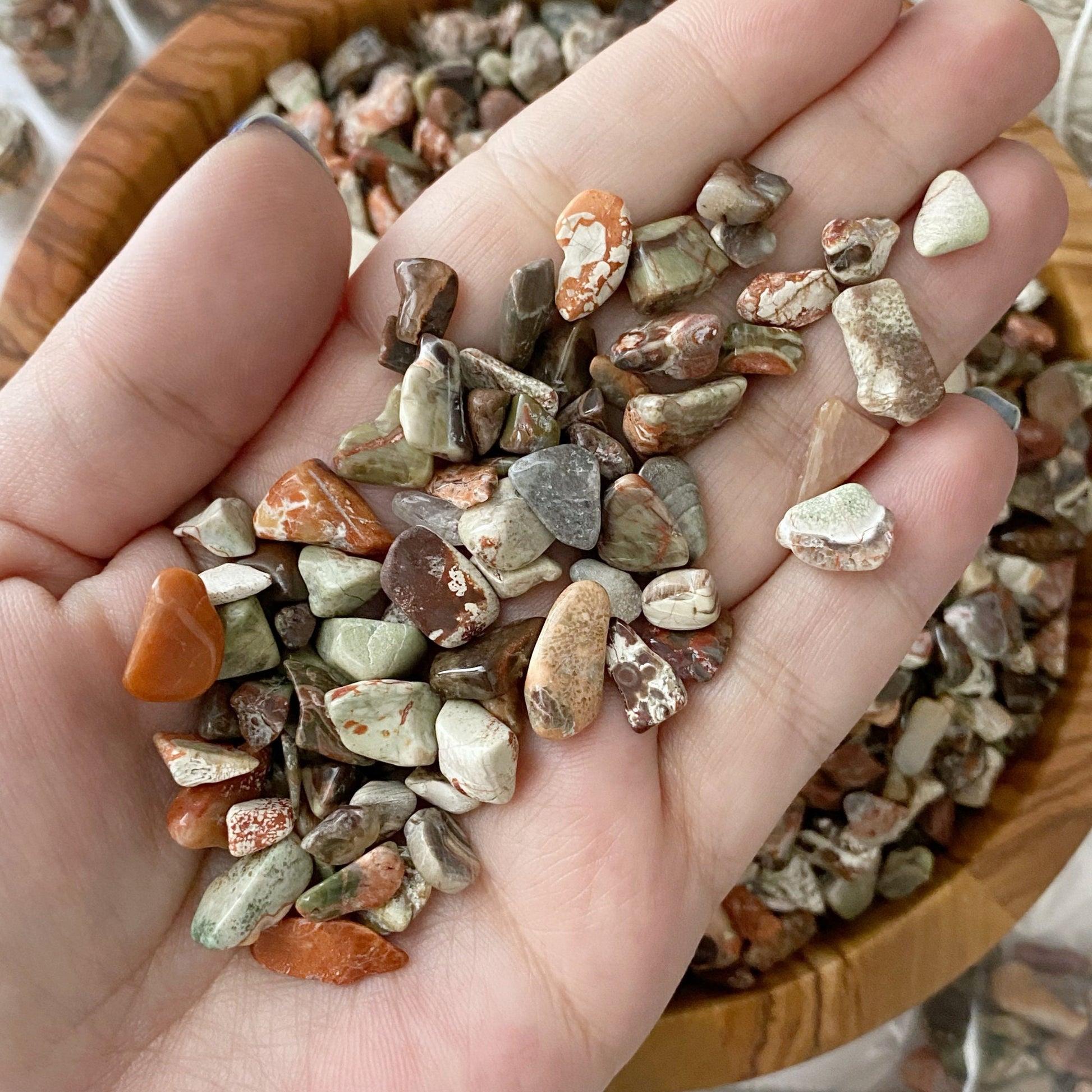 Ocean Jasper Crystal Chips are tumbled and polished tiny stones. These mini stones are perfect for various creative and mystical endeavors. Whether you're into candle making, adding to your roller ball oils, crafting, or creating resin jewelry, these chips add a touch of natural energy to your projects. They're also ideal for spell jars, mojo bags, witch balls, orgone devices, and as sacred additions to your altar jars.
