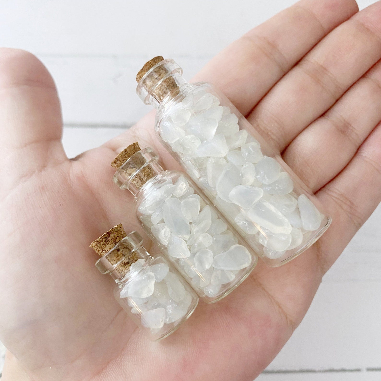 Opalite Crystal Chips which are tumbled and polished tiny stones. These mini stones are perfect for various creative and mystical endeavors. Whether you're into candle making, adding to your roller ball oils, crafting, or creating resin jewelry, these chips add a touch of natural energy to your projects. They're also ideal for spell jars, mojo bags, witch balls, orgone devices, and as sacred additions to your altar jars.
