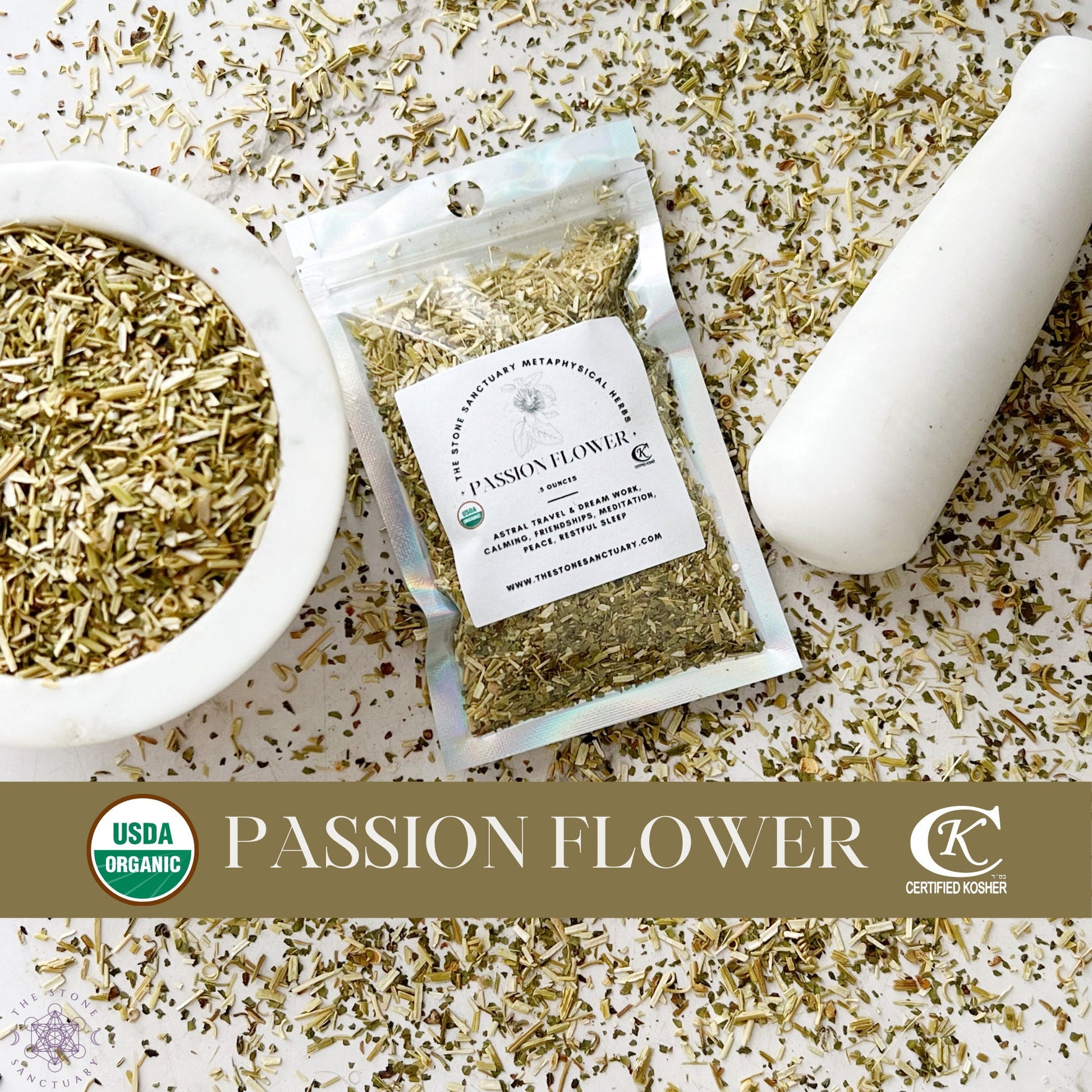 Introducing our marvelous Organic Dried Passion Flower Herb Cut & Sifted - a mystical treasure handpicked from nature, perfect for your magical rituals, spell casting, or creative endeavors.