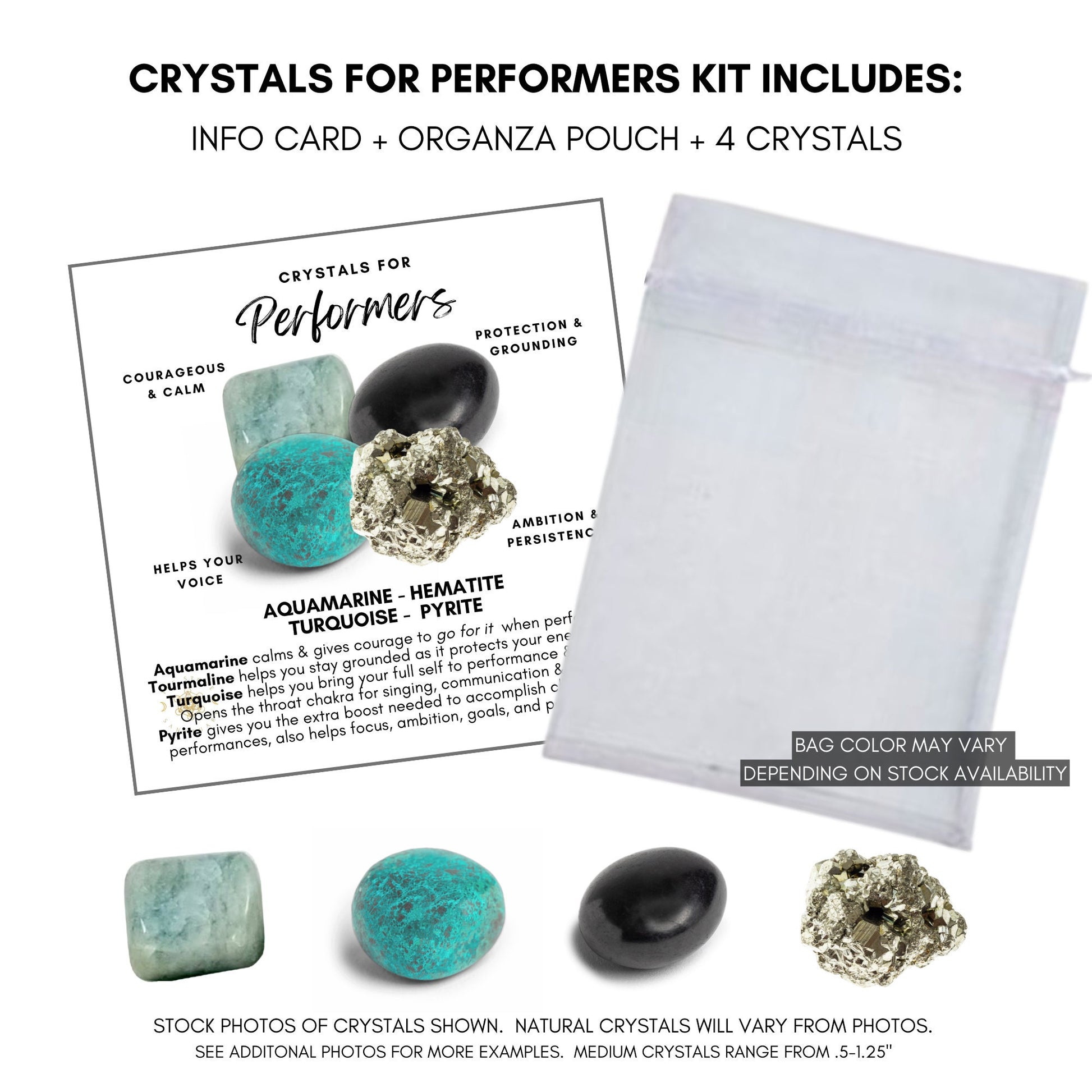 You will receive 1 Crystals for Performers, which contains the information card, organza bag, and Set of 4 crystals. An optional gift box is also available.
