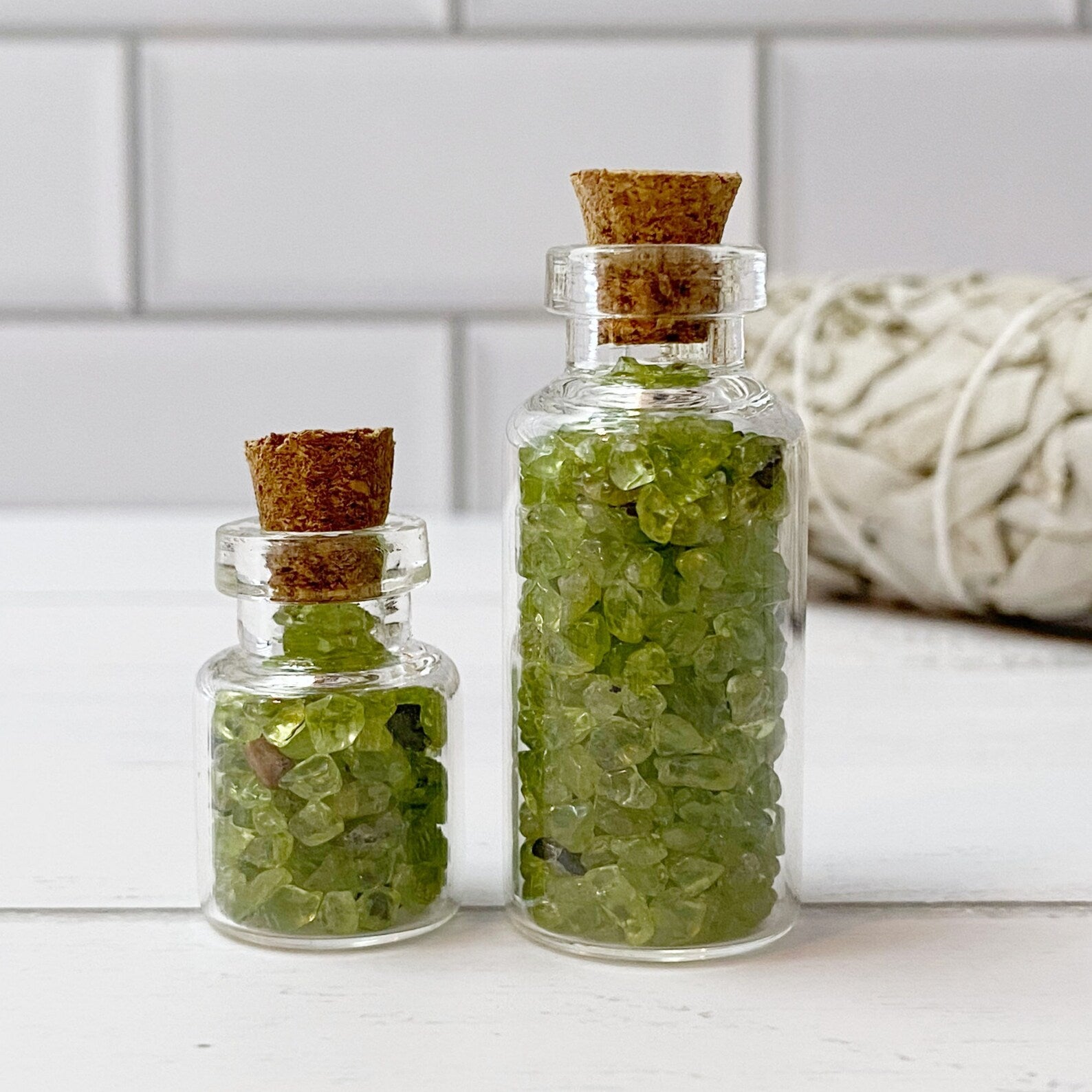 Peridot Crystal Chips which are tumbled and polished tiny stones. These mini stones are perfect for various creative and mystical endeavors. Whether you're into candle making, adding to your roller ball oils, crafting, or creating resin jewelry, these chips add a touch of natural energy to your projects. They're also ideal for spell jars, mojo bags, witch balls, orgone devices, and as sacred additions to your altar jars.