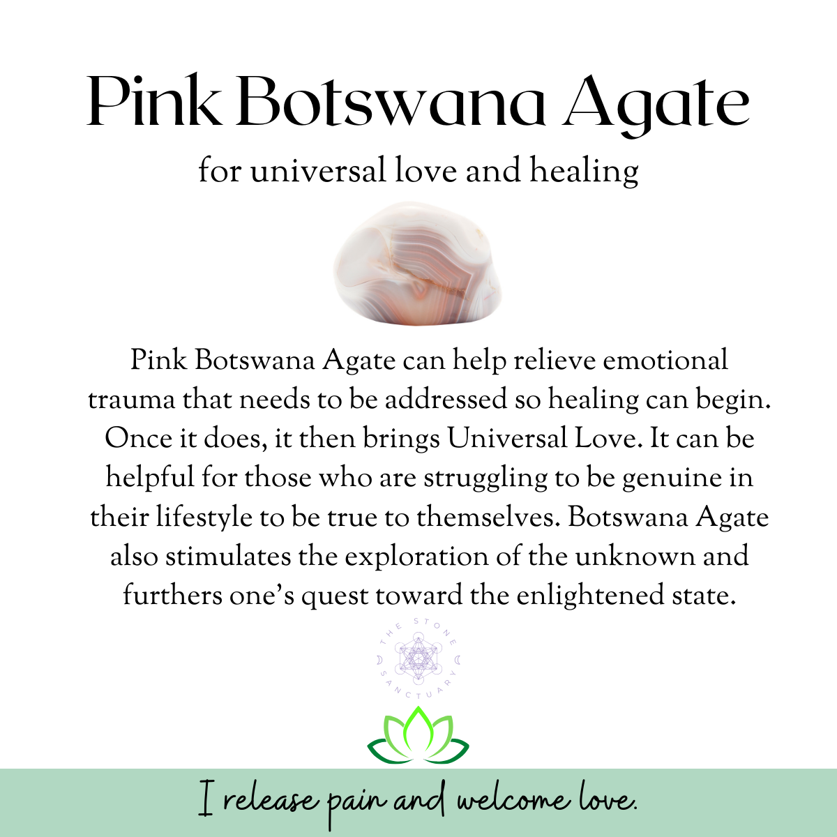 This listing is for 1 (one) Pink Botswana Agate crystal tumbled stone intuitively chosen.