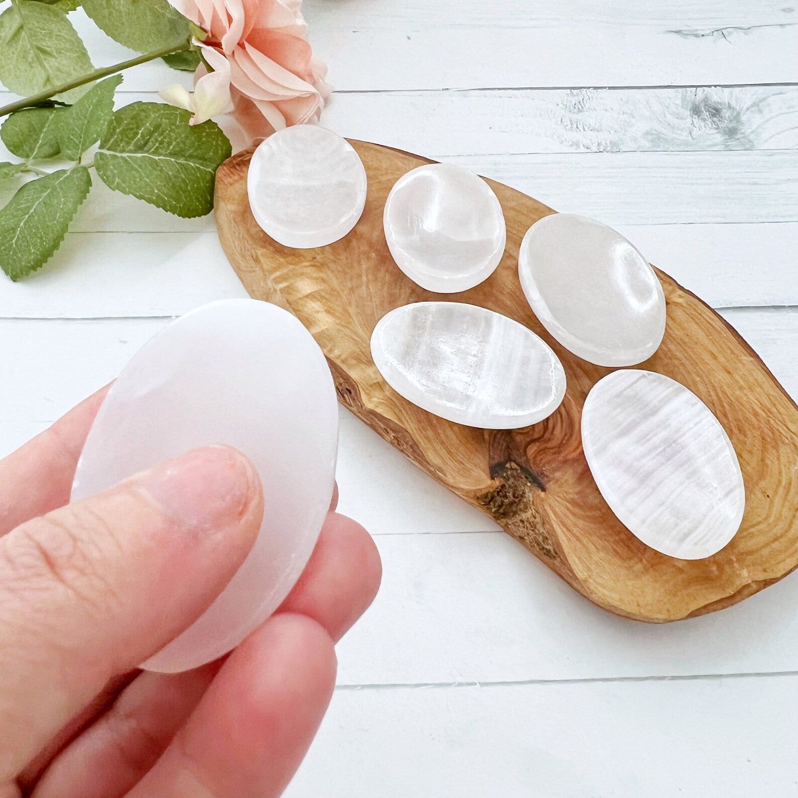 Crafted from genuine pink calcite, this worry stone carries the essence of unconditional love, compassion, and emotional healing. Its delicate light pink blush hue emanates a warm and nurturing energy, making it an ideal companion during meditation, mindfulness practices, or even a quick moment of self-soothing during a hectic day.