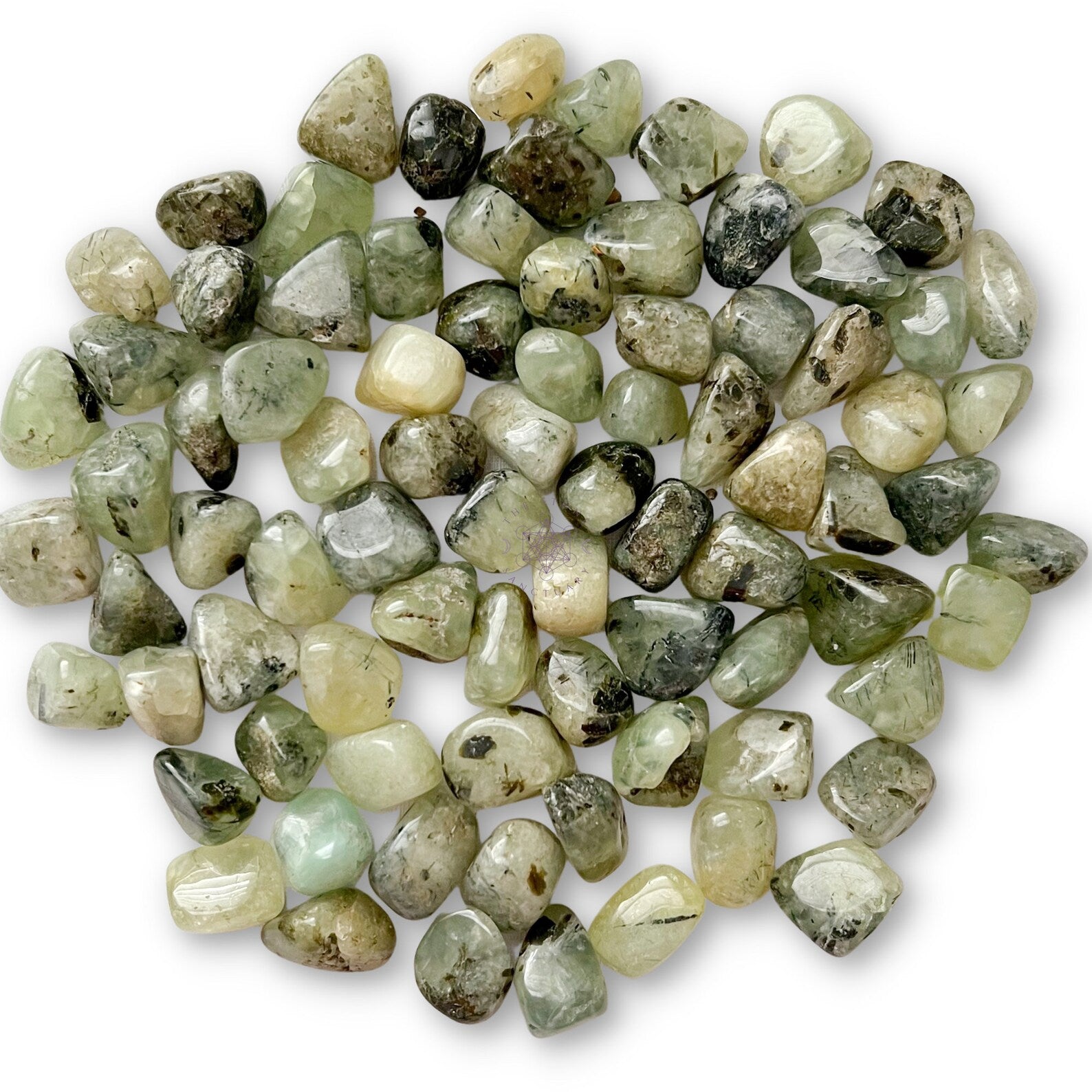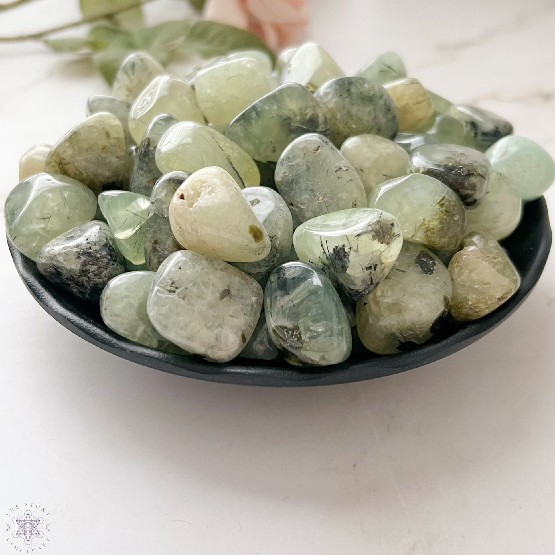 You will receive 1 (one) Prehnite crystal tumbled stone, medium in size, intuitively chosen. These Prehnite stones contain Epidote inclusions.