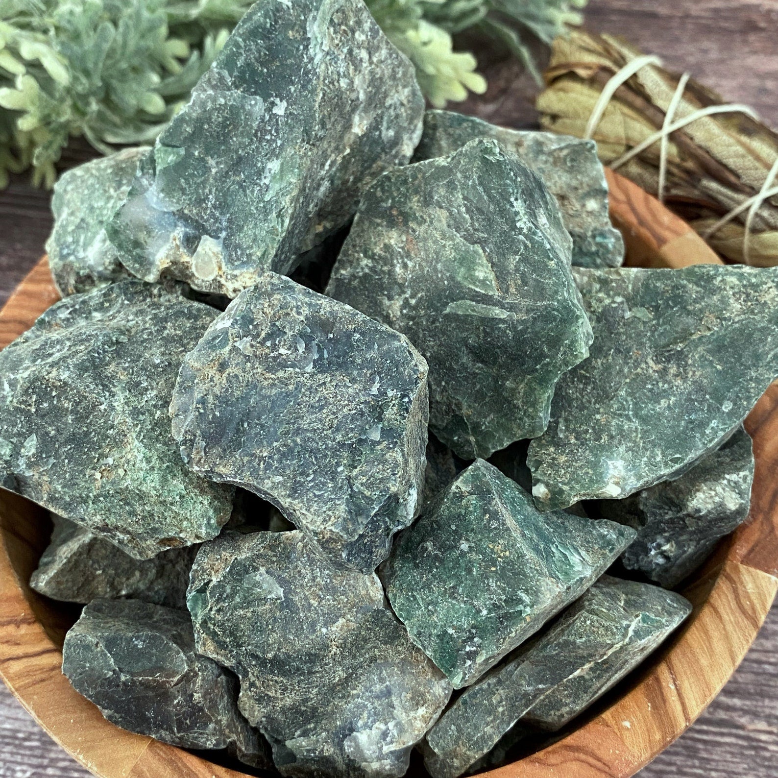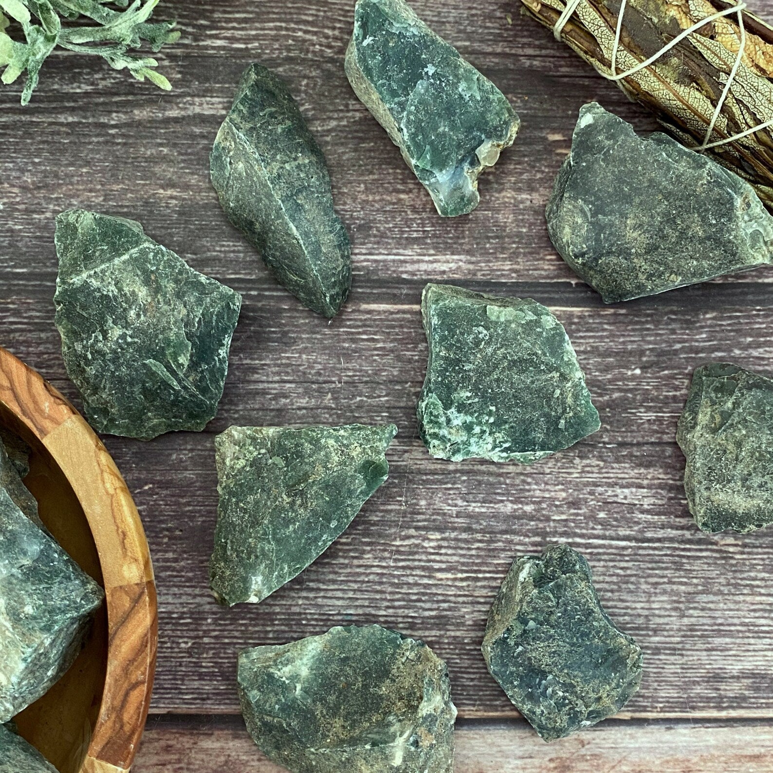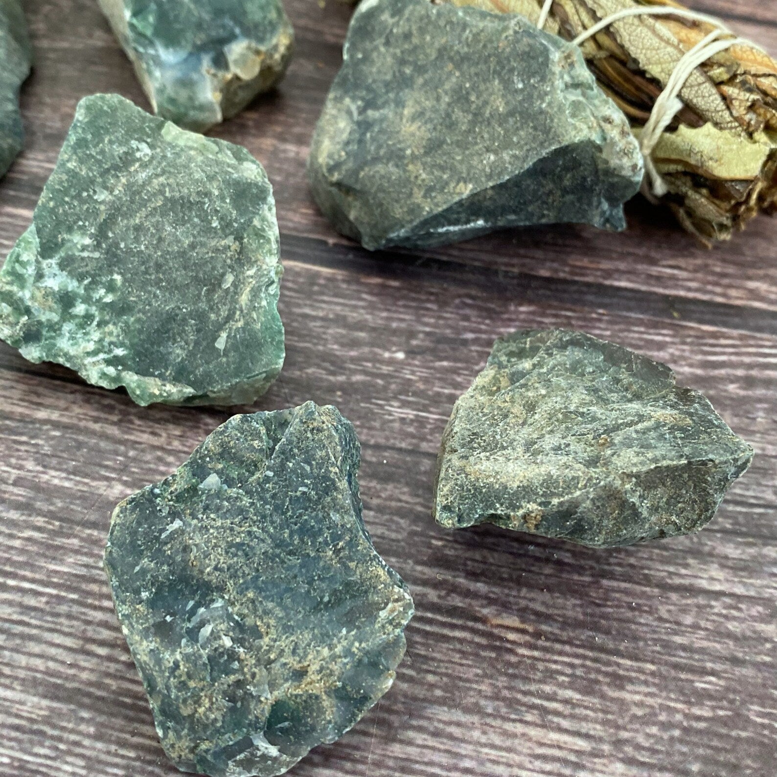 Discover the natural beauty and versatile energy of Green Moss Agate with our intuitively chosen rough crystals. You have the option to select from various sizes, including 1"-1.5" pieces, 2-3" chunks, or a convenient 4-ounce bag containing .5"-2" pieces. These rough Green Moss Agate crystals offer a wide range of creative and spiritual possibilities.