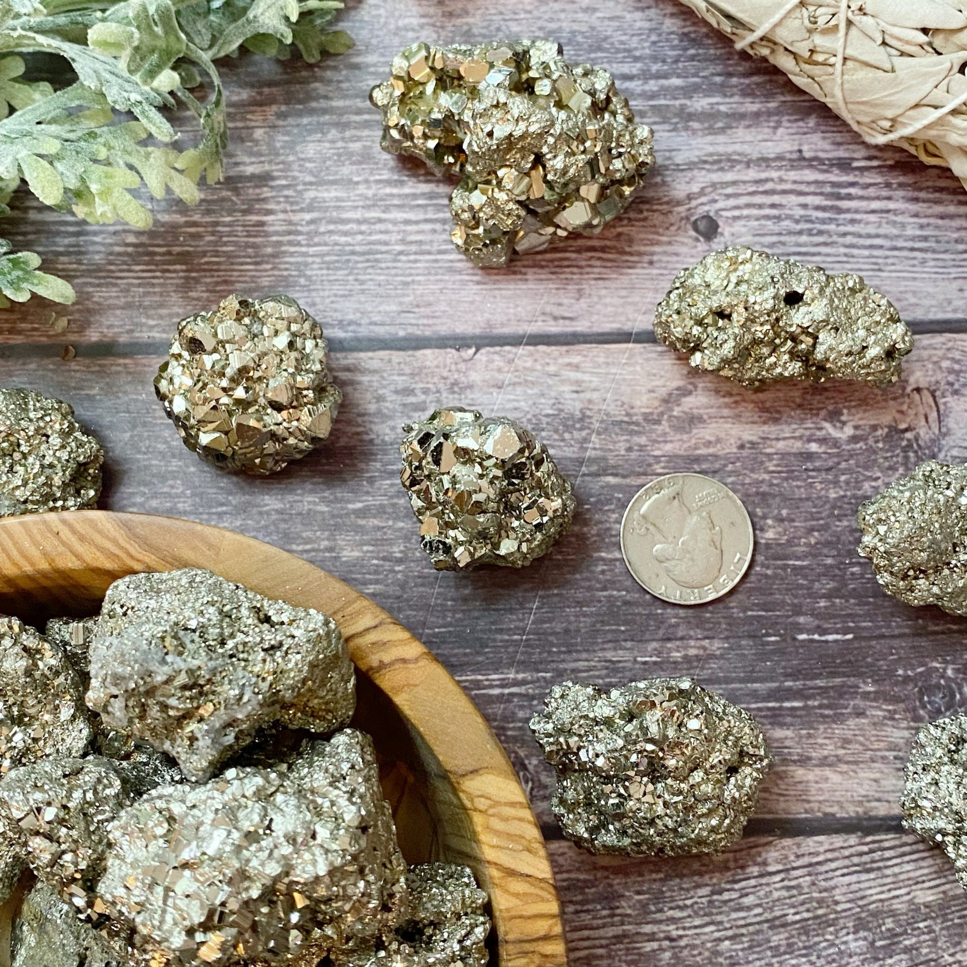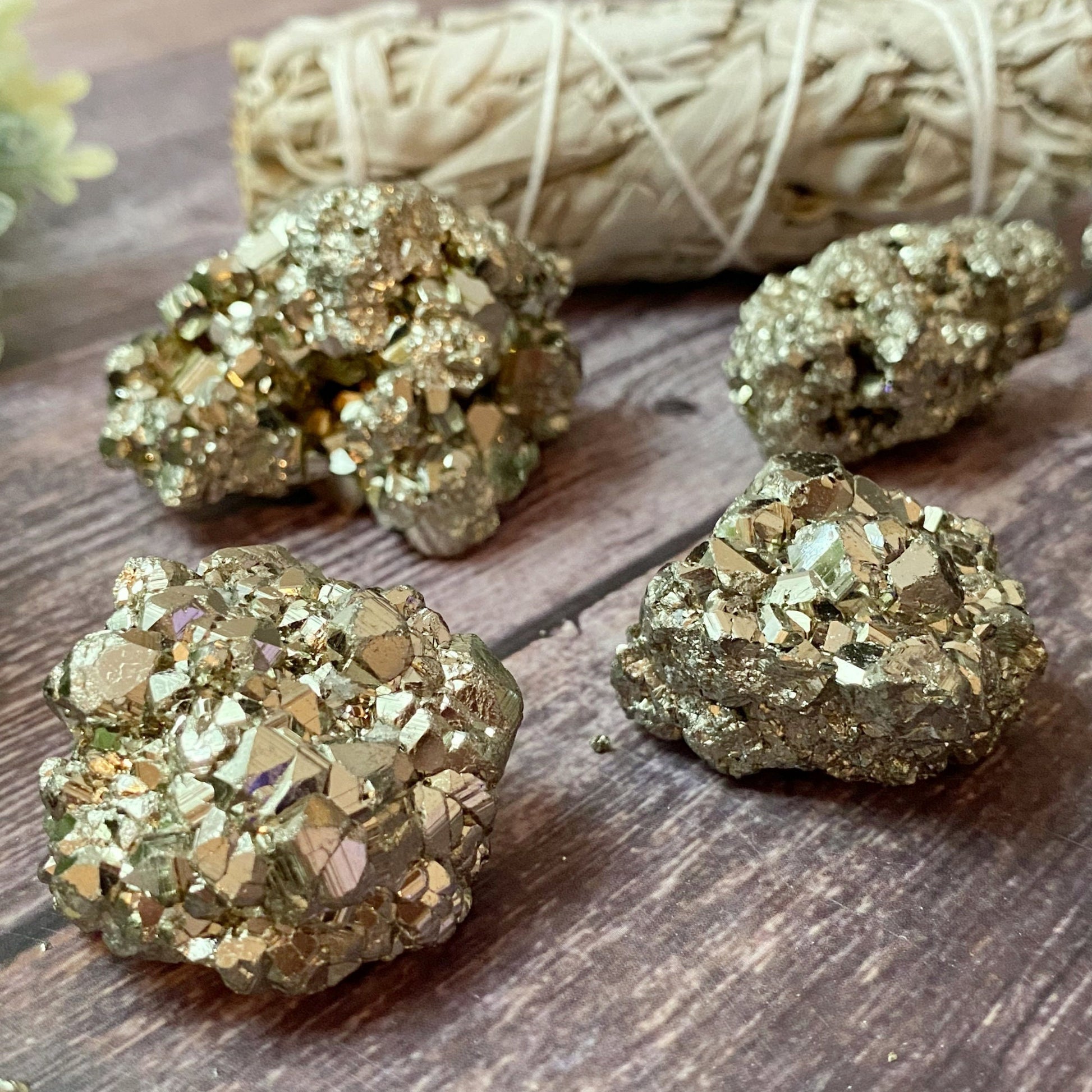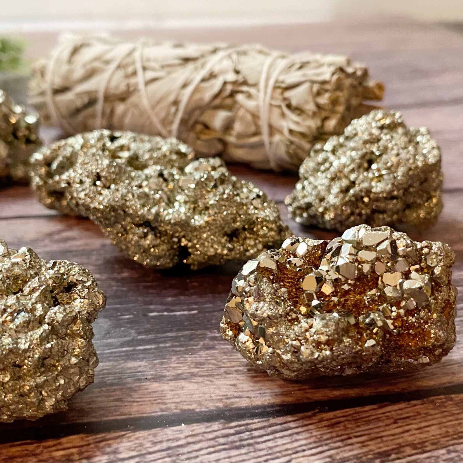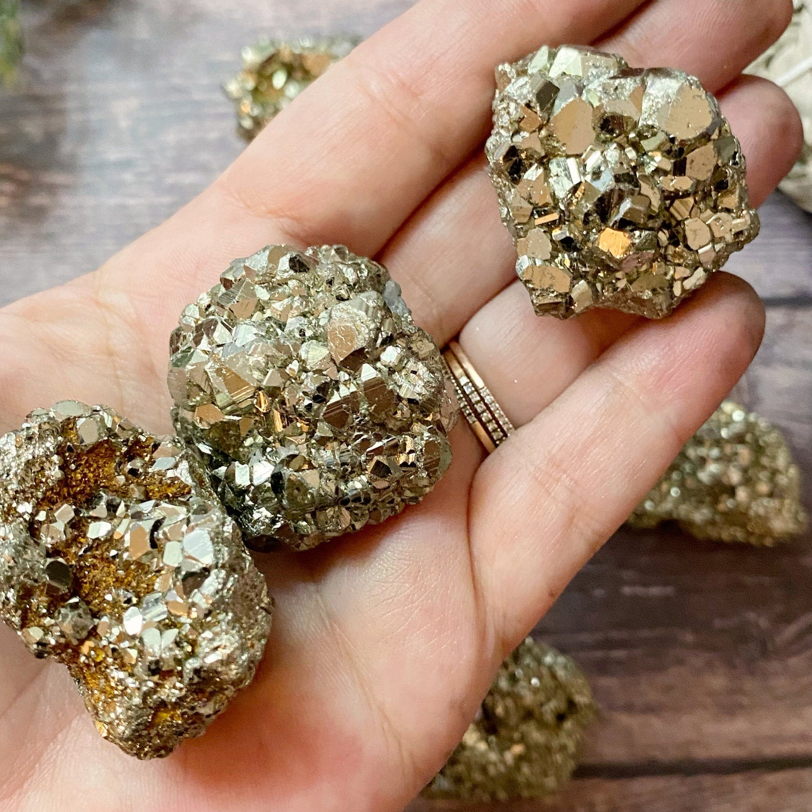 You will receive 1 sparkling rough natural Pyrite Stone intuitively chosen - select from Medium .75-1.25" inches or Large 1.5-2" inches.