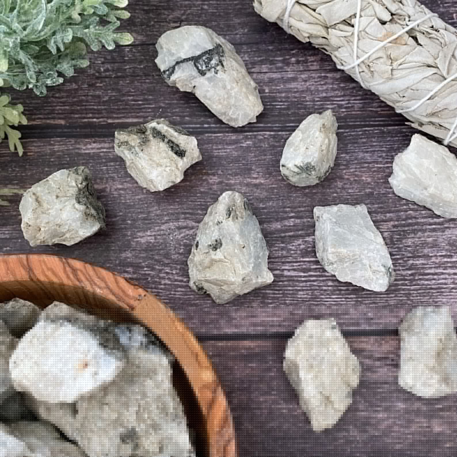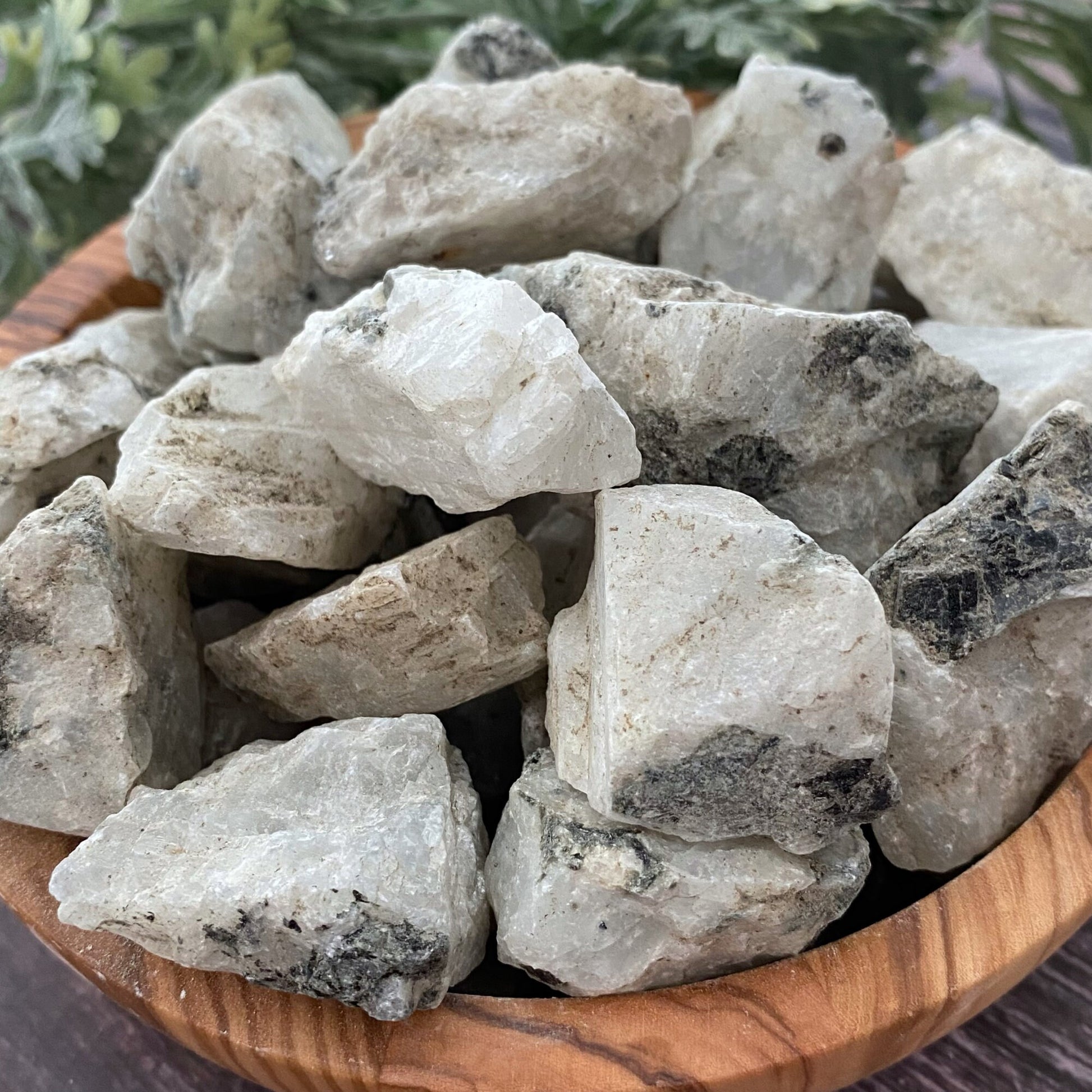 You will receive 1 rough Rainbow Moonstone stone intuitively chosen. Select from 1"-1.5" piece, 2-3" chunk, or you can select from a 4-ounce bag (containing .5-2" pieces)