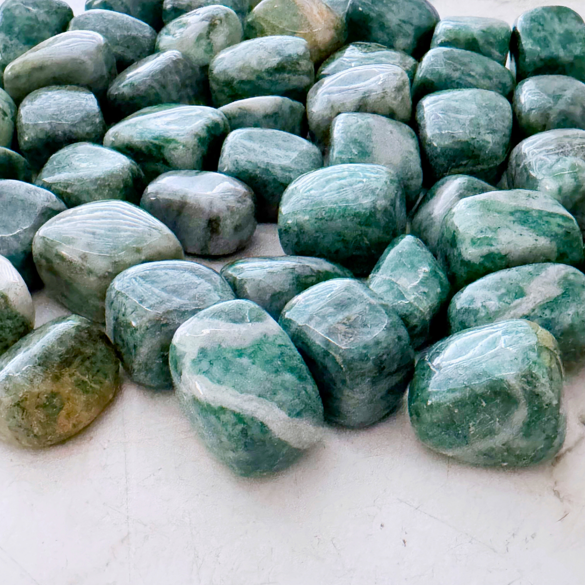 You will receive 1 polished tumbled Rich Jade Stone. In healing, Rich Jade encourages harmony, devotion, and love in personal and family relationships. It helps us to be better attuned to the needs of others and to offer more love and nurturing to our fellow human beings. Rich Jade is widely thought of as a protective stone that attracts good luck, health, wealth, happiness, and friendship.