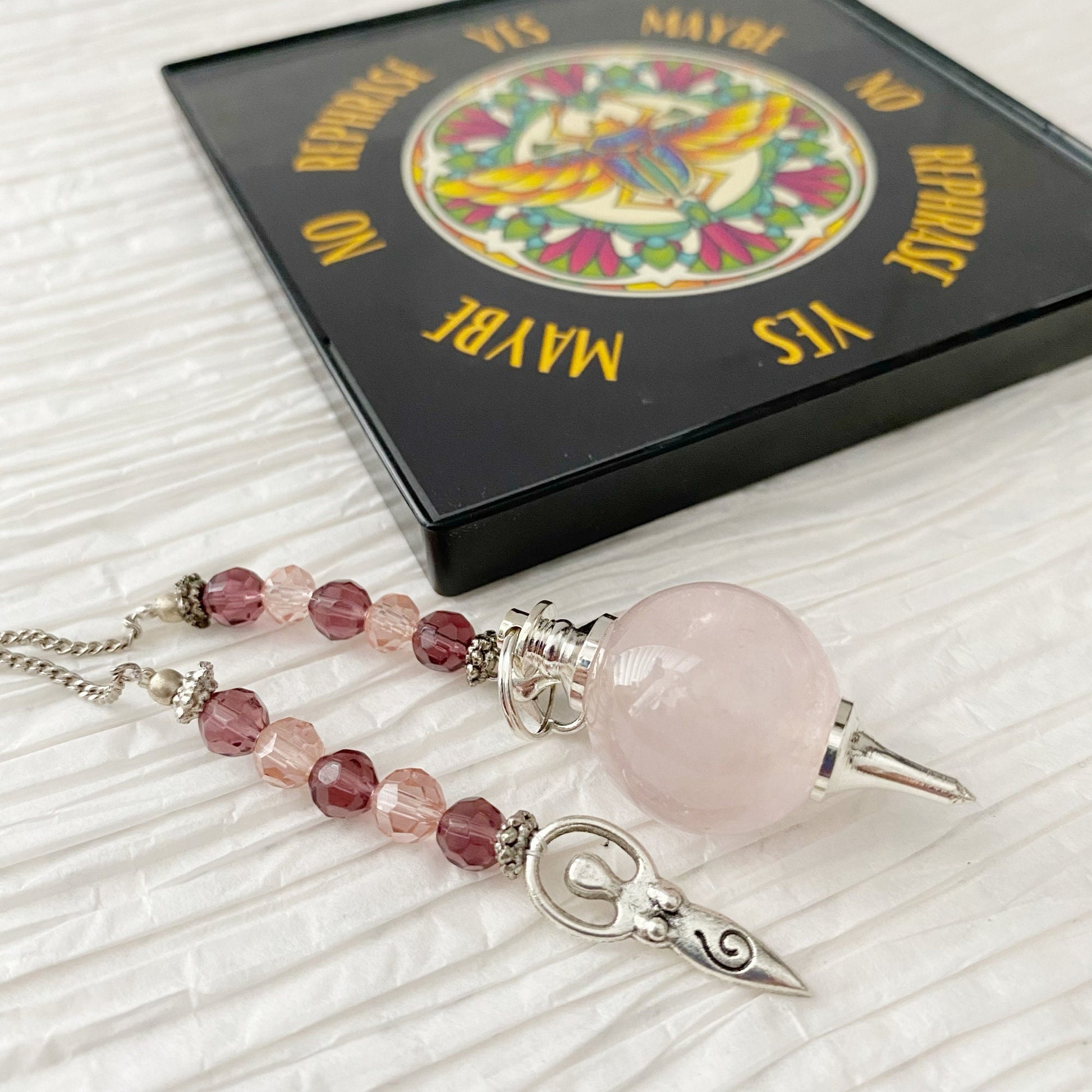 Rose Quartz Crystal Ball Pendulum w/Goddess Charm