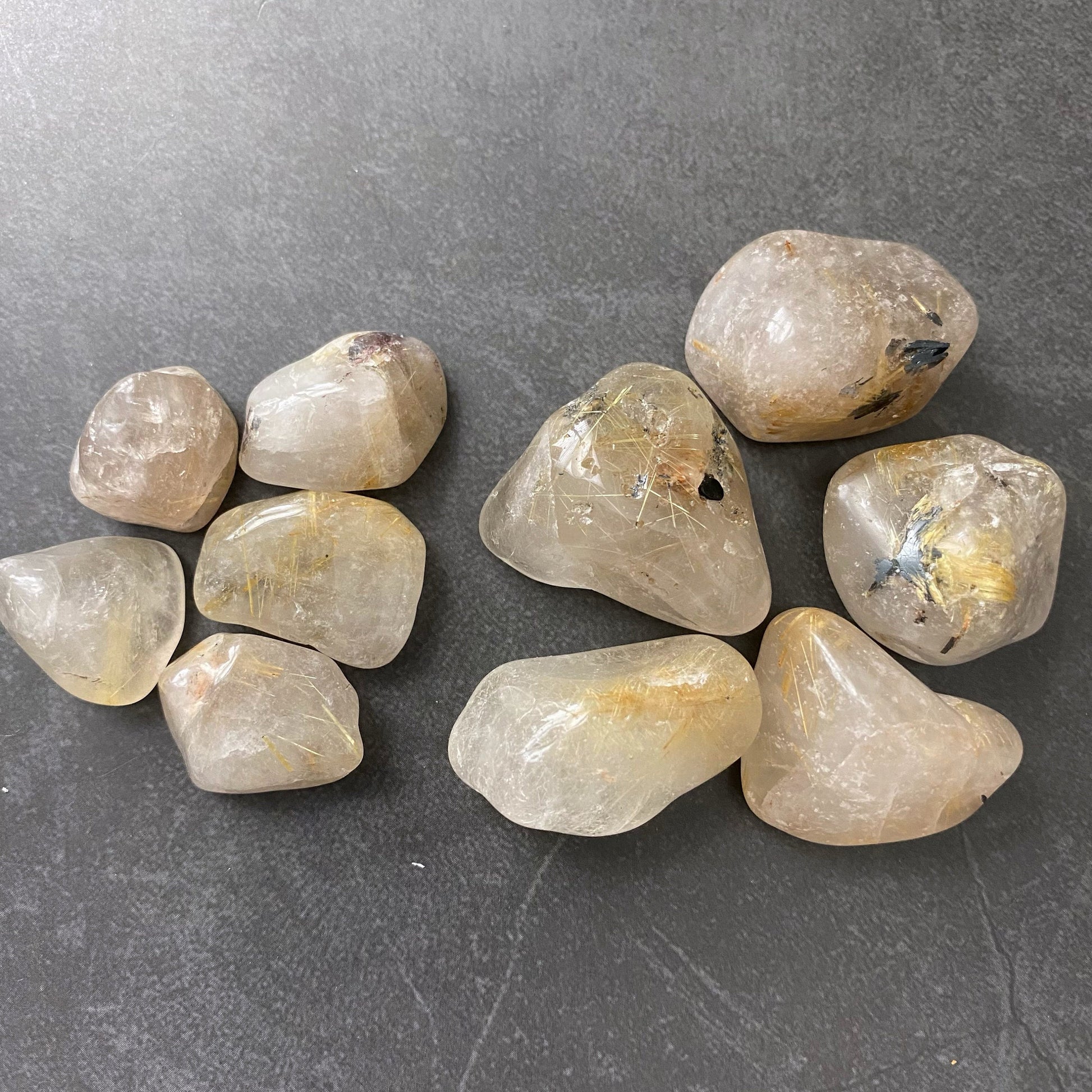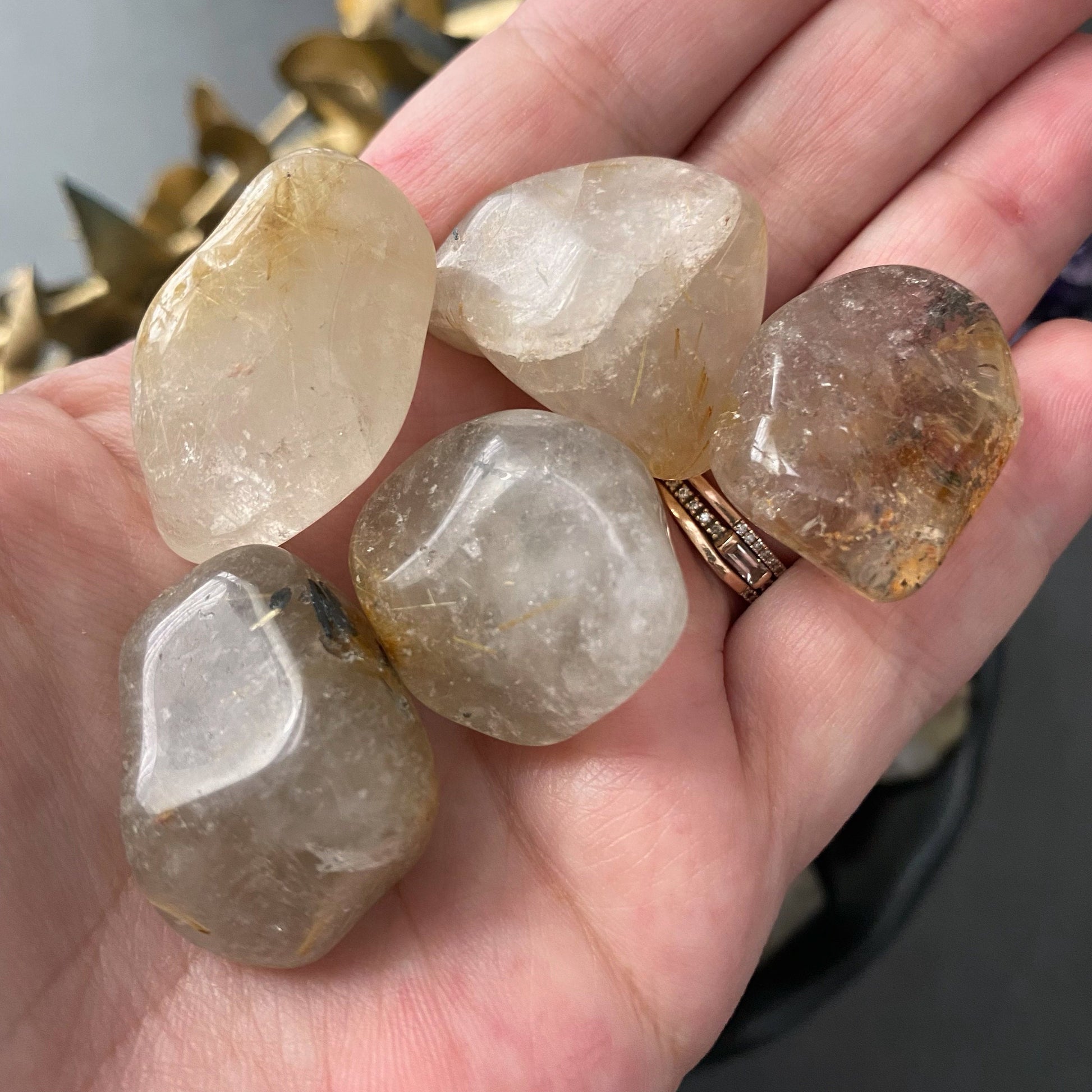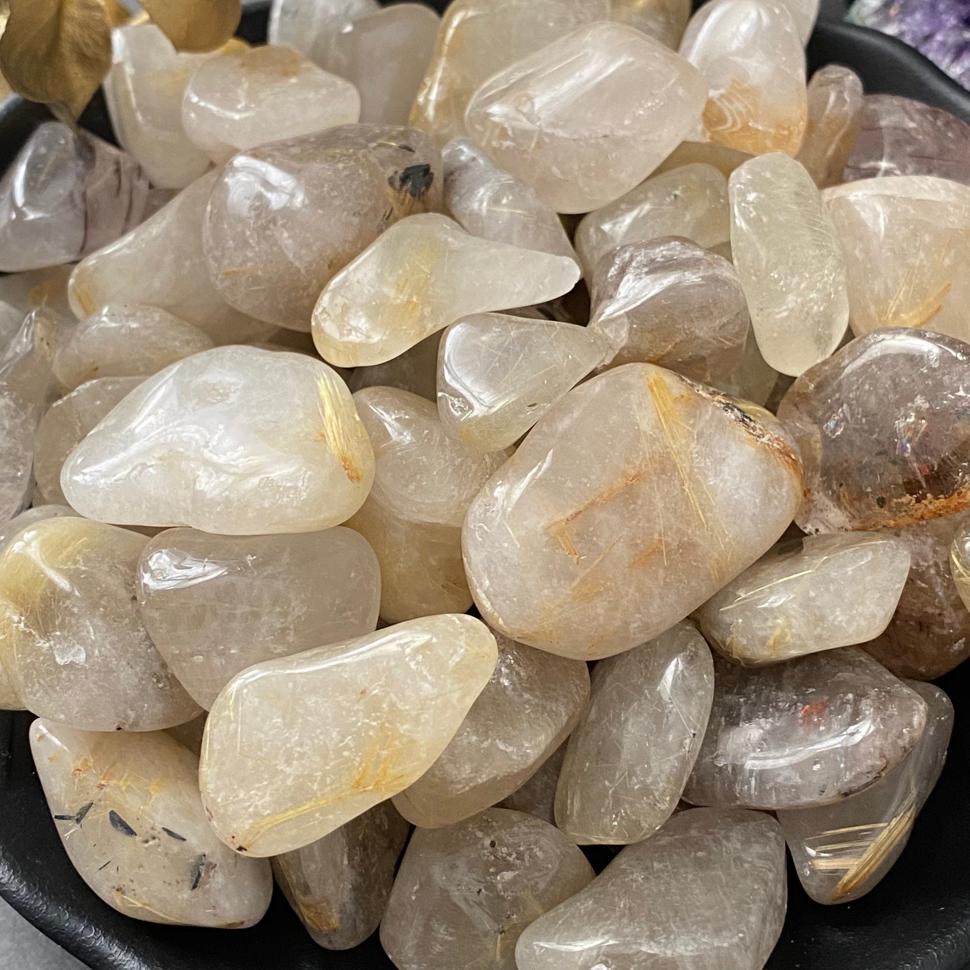You will receive 1 Rutilated Quartz tumbled polished stone intuitively chosen.