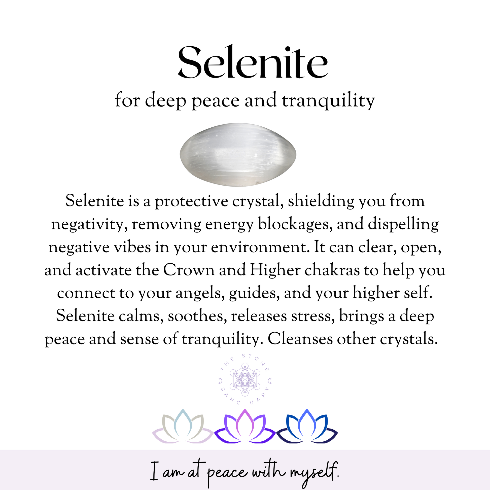 Allow Selenite to clear, open, and activate your Crown and Higher chakras, fostering a deeper connection with your angels, guides, and higher self. It's a pathway to spiritual enlightenment and insight. Experience a profound sense of tranquility as Selenite calms and soothes your inner self. Release stress and find your inner peace with the gentle energy of this angel.