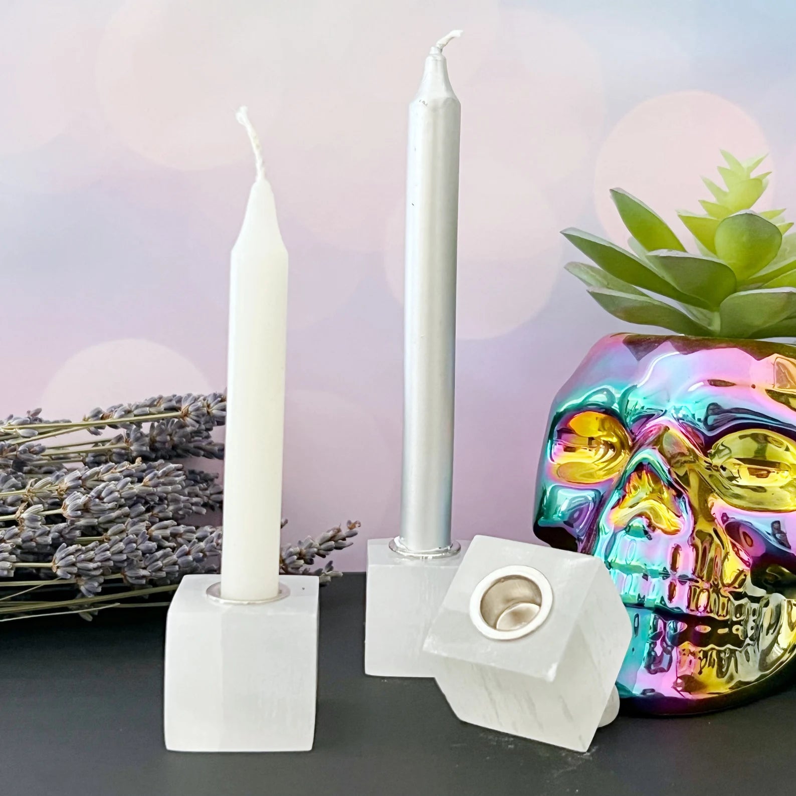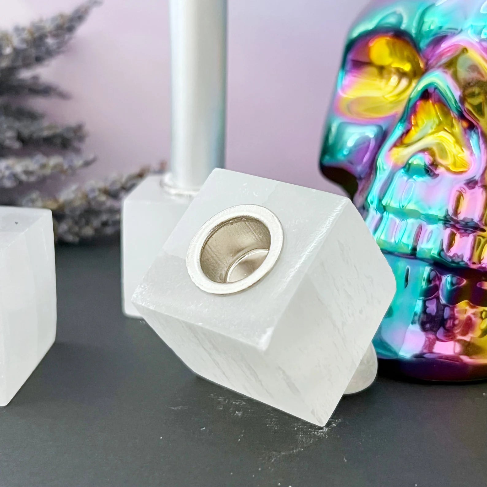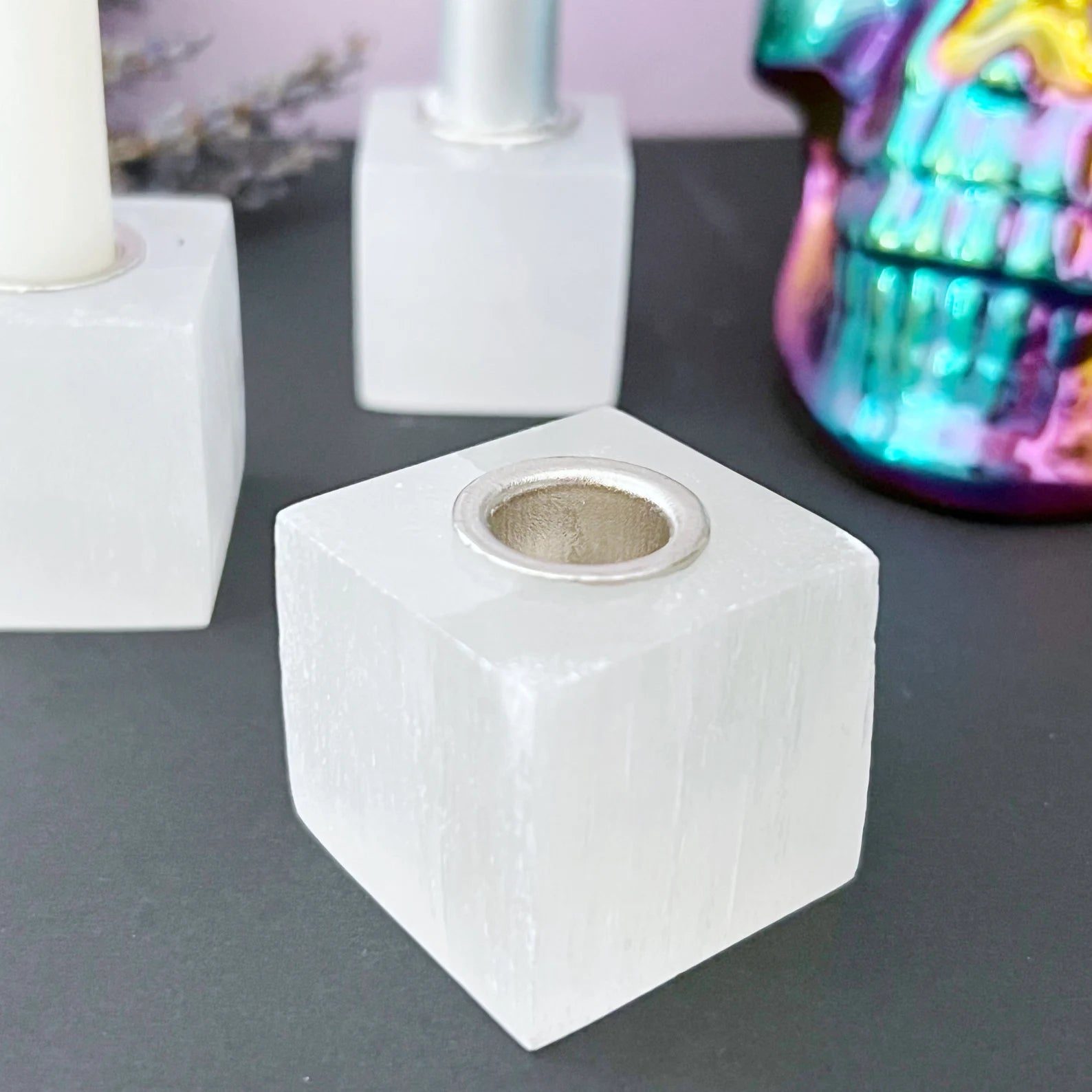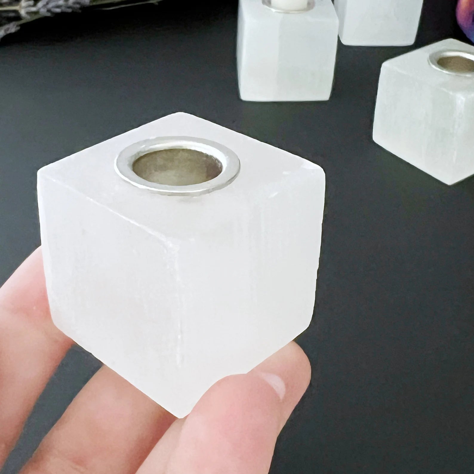 1" Selenite Cube Mini Candle Holder for Ritual Candles
