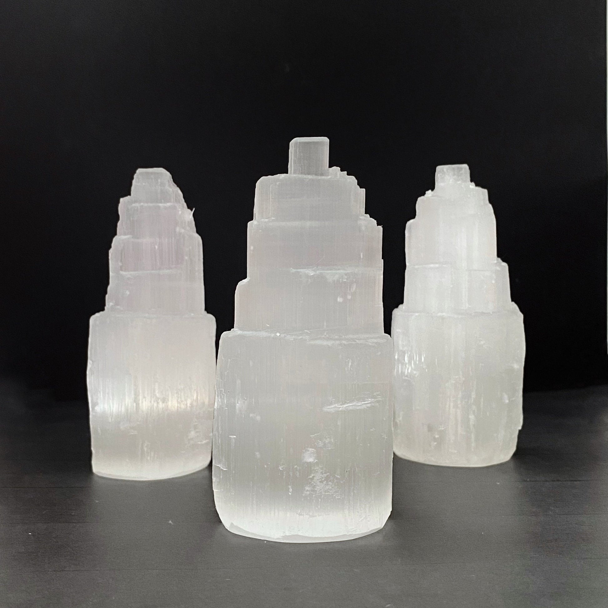 You will receive one (1) polished Selenite Tower intuitively chosen. Select your size, small (approx 2.5" tall), medium (approx 4" tall), or Large (approx 6" tall).