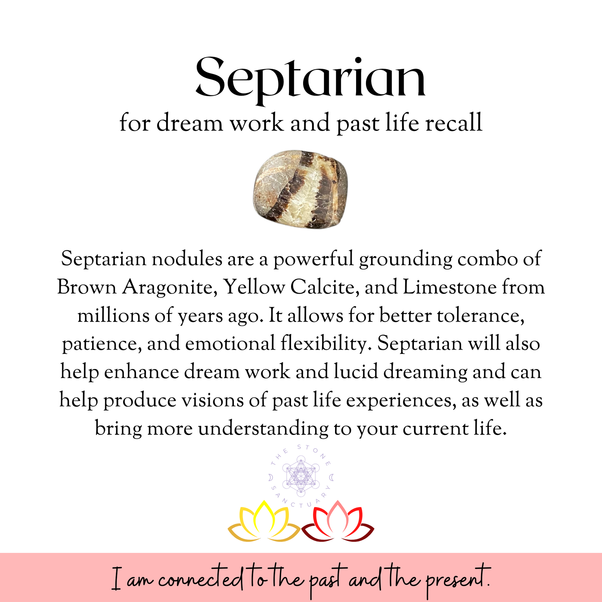 You will receive 1 polished Septarian crystal / tumbled stone ranging from .5-1" intuitively chosen.