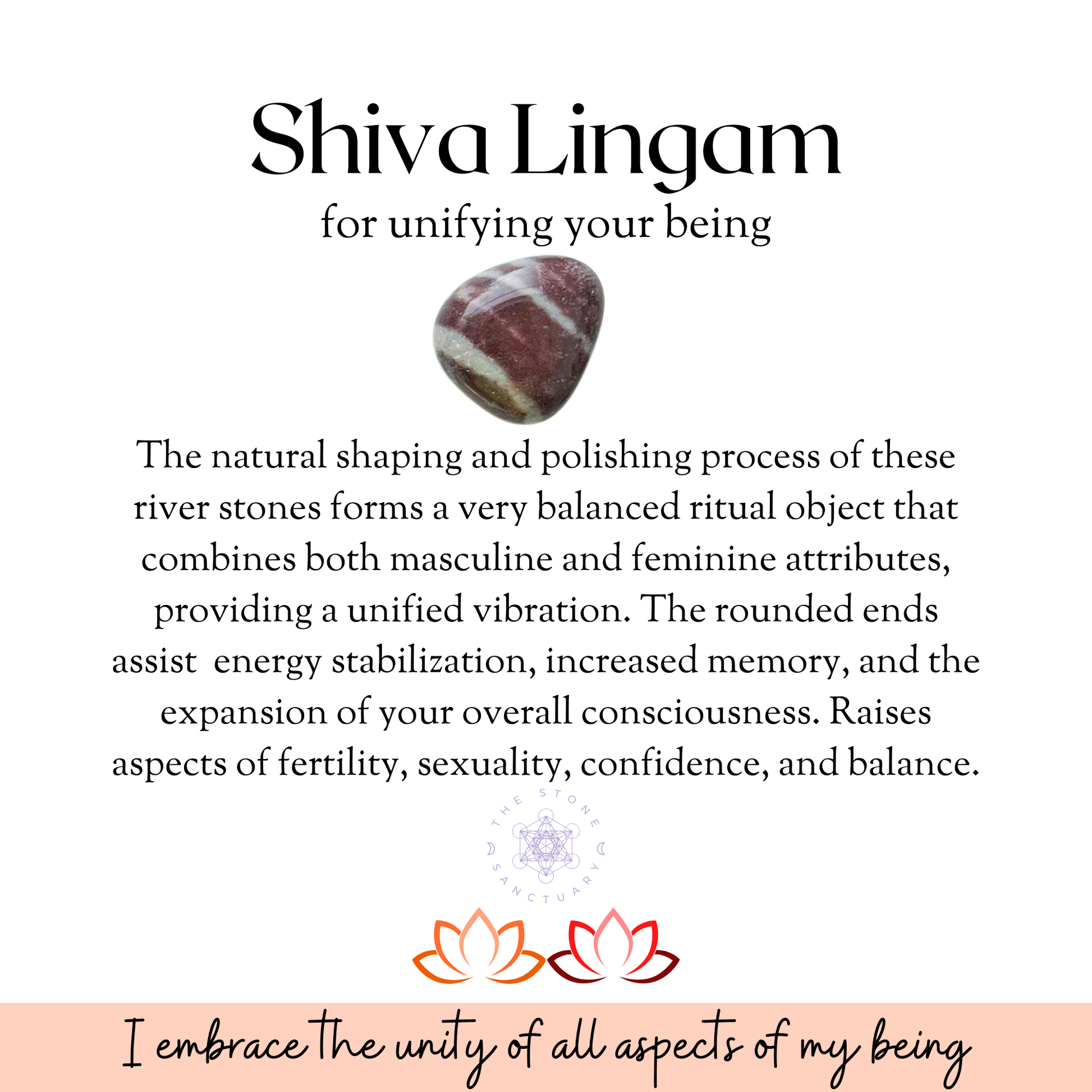 You will receive 1 polished tumbled, Shiva Lingam crystal, intuitively chosen.