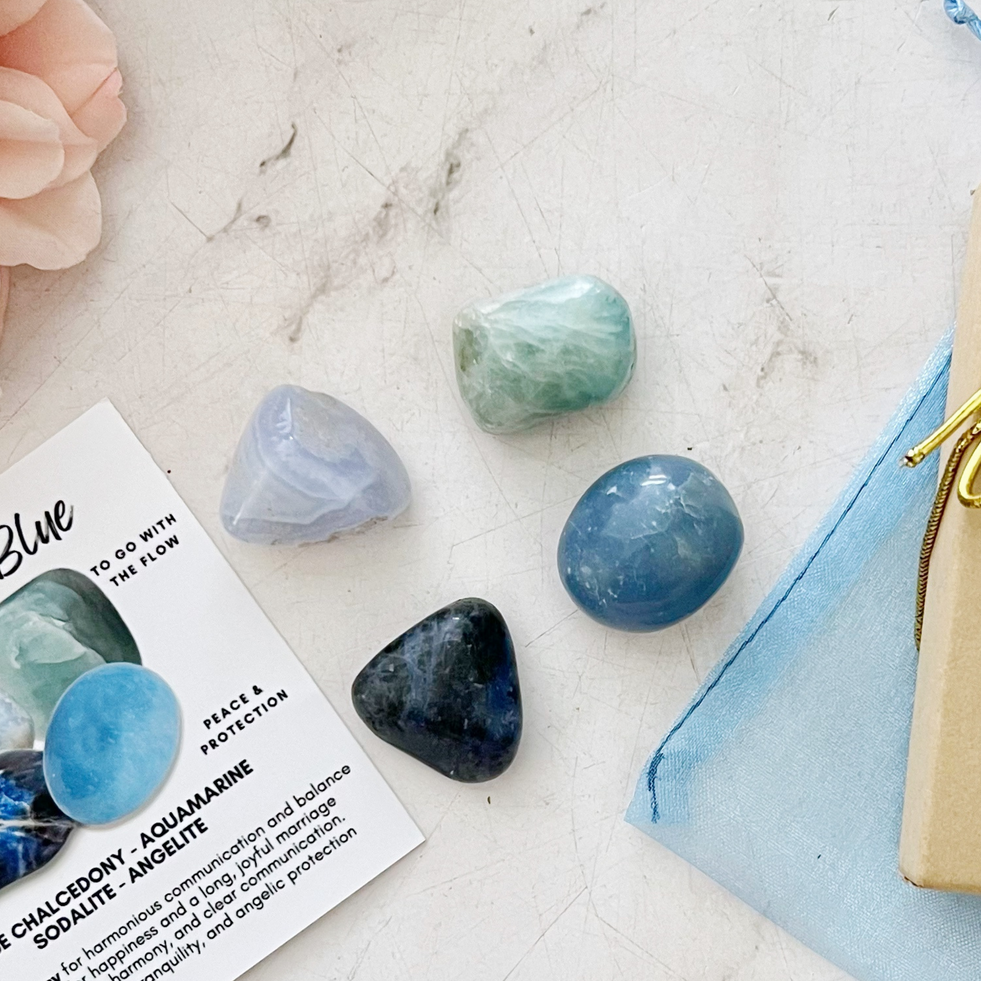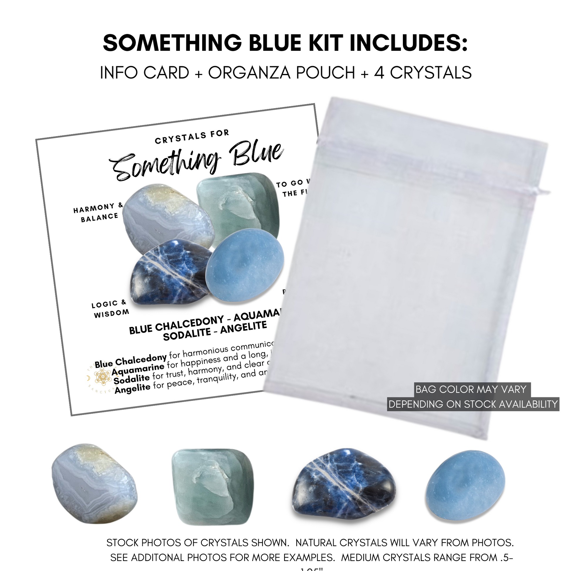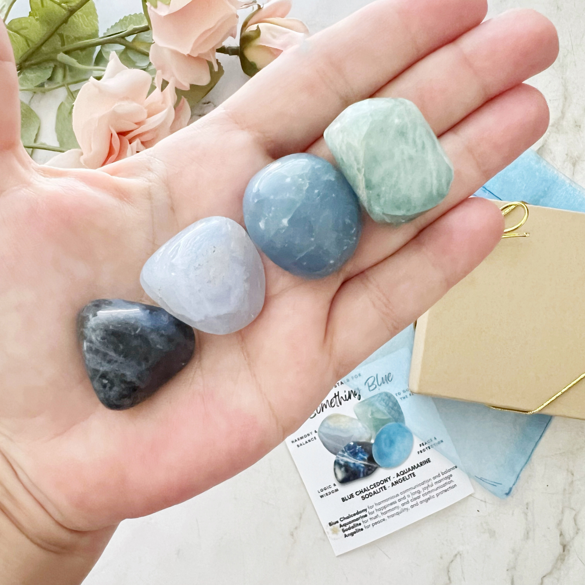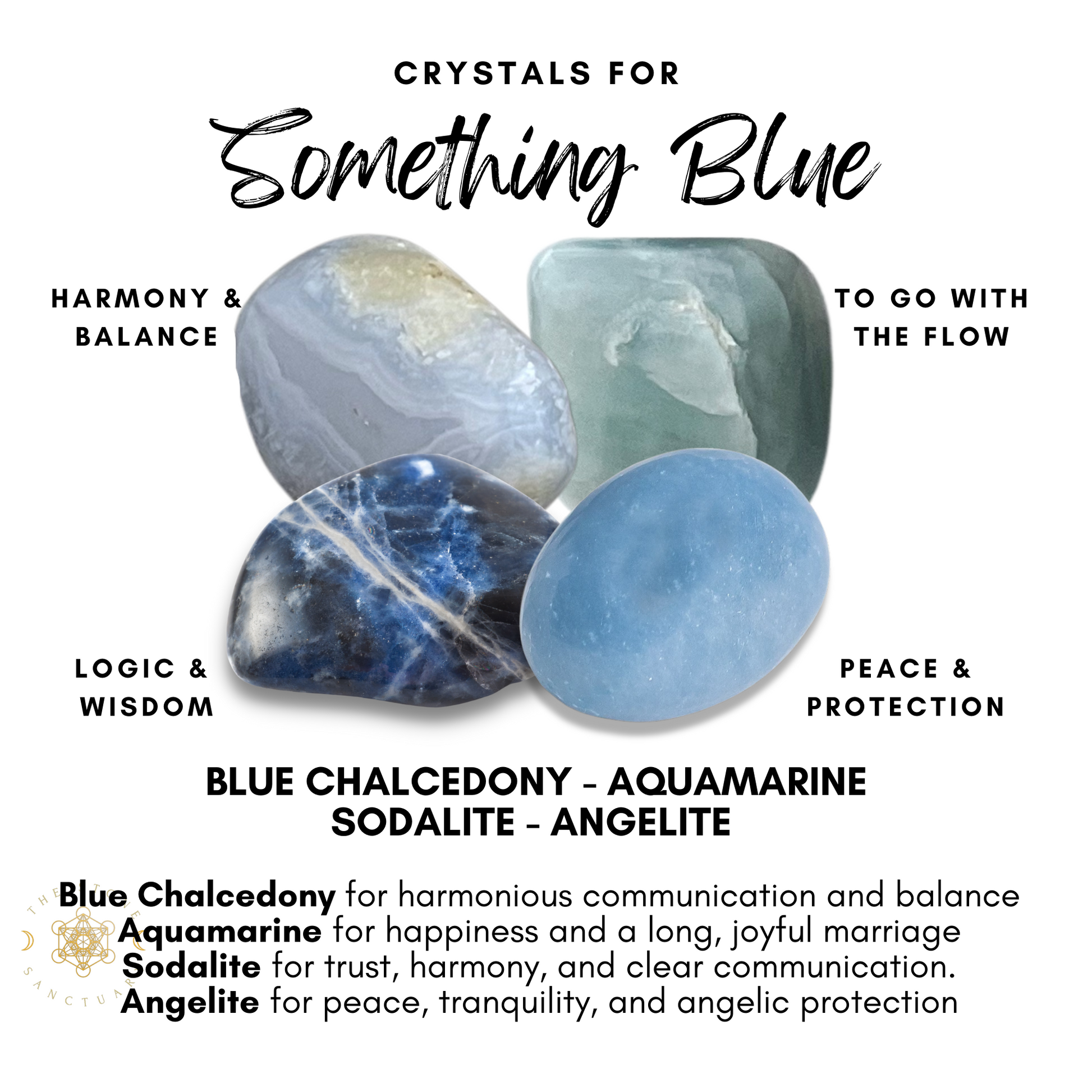 Celebrate your special day with our Something Blue Crystal Kit, designed to ensure harmony, happiness, and heartfelt communication on your wedding day and beyond. This beautifully curated set not only follows the cherished tradition of including "something blue" to bring luck to the bride, but also offers deep spiritual benefits.