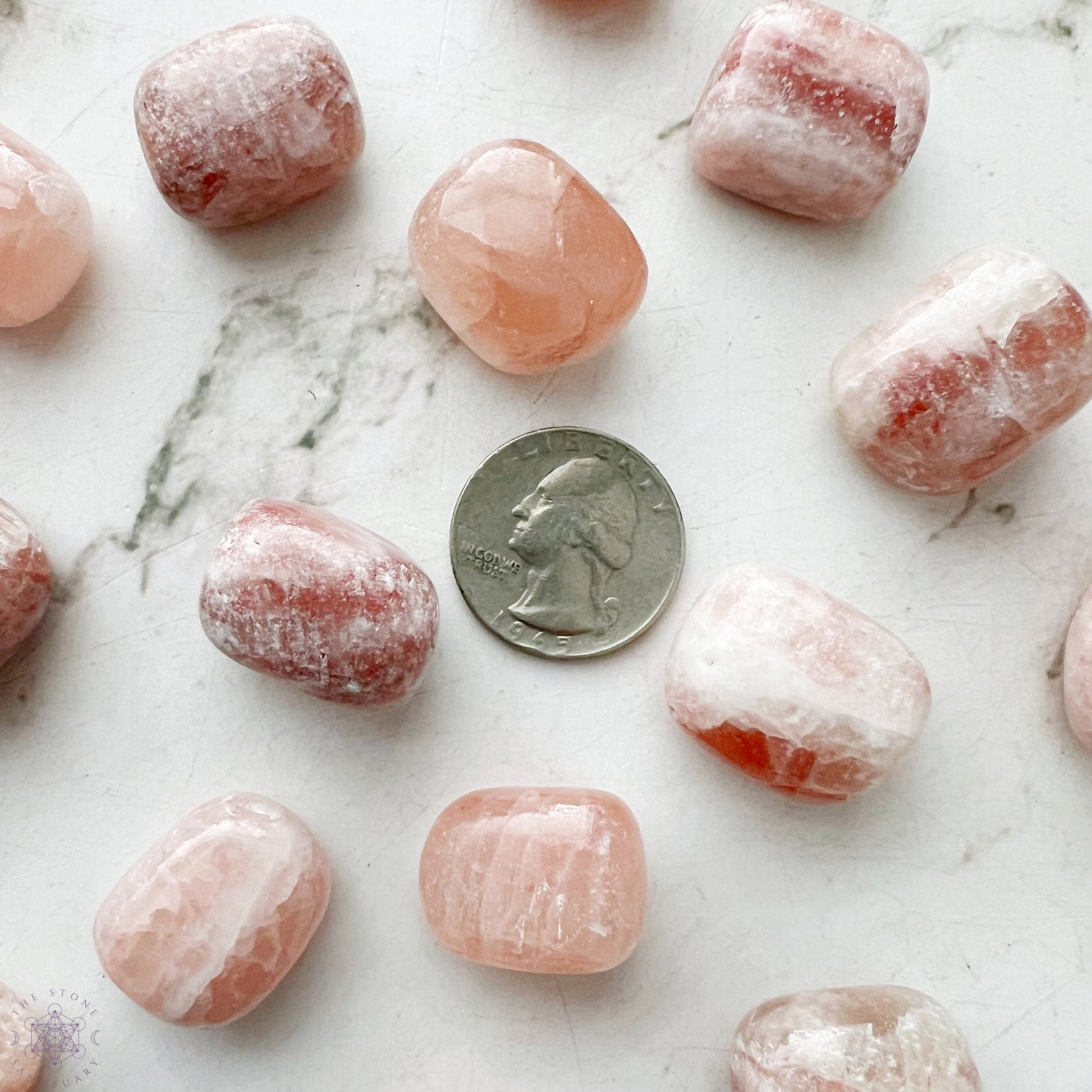 Embrace the transformative energy of Strawberry Pink Calcite as it resonates with your intentions and invites you to nurture your heart and spirit. Each tumbled stone is handpicked to align with your unique journey, allowing you to harness the stone's energy for emotional healing, self-discovery, and gentle transformation.