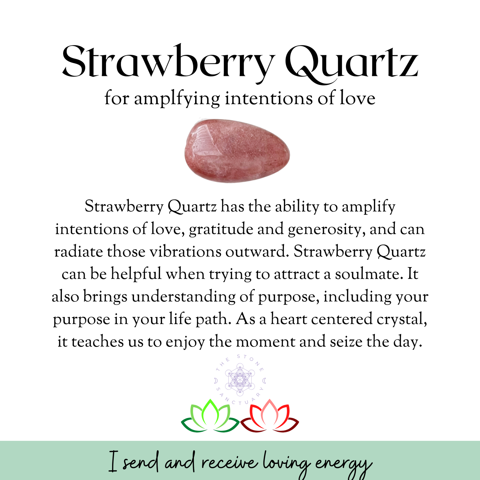 Strawberry Quartz assists in bringing balance to the psyche, the emotions, and the subtle energy bodies. An important tool for new initiates on the spiritual path, Strawberry Quartz can help one to gain insights into one's persona and inspiration regarding how to improve on it. Strawberry Quartz is a great facilitator of gaining hidden knowledge.