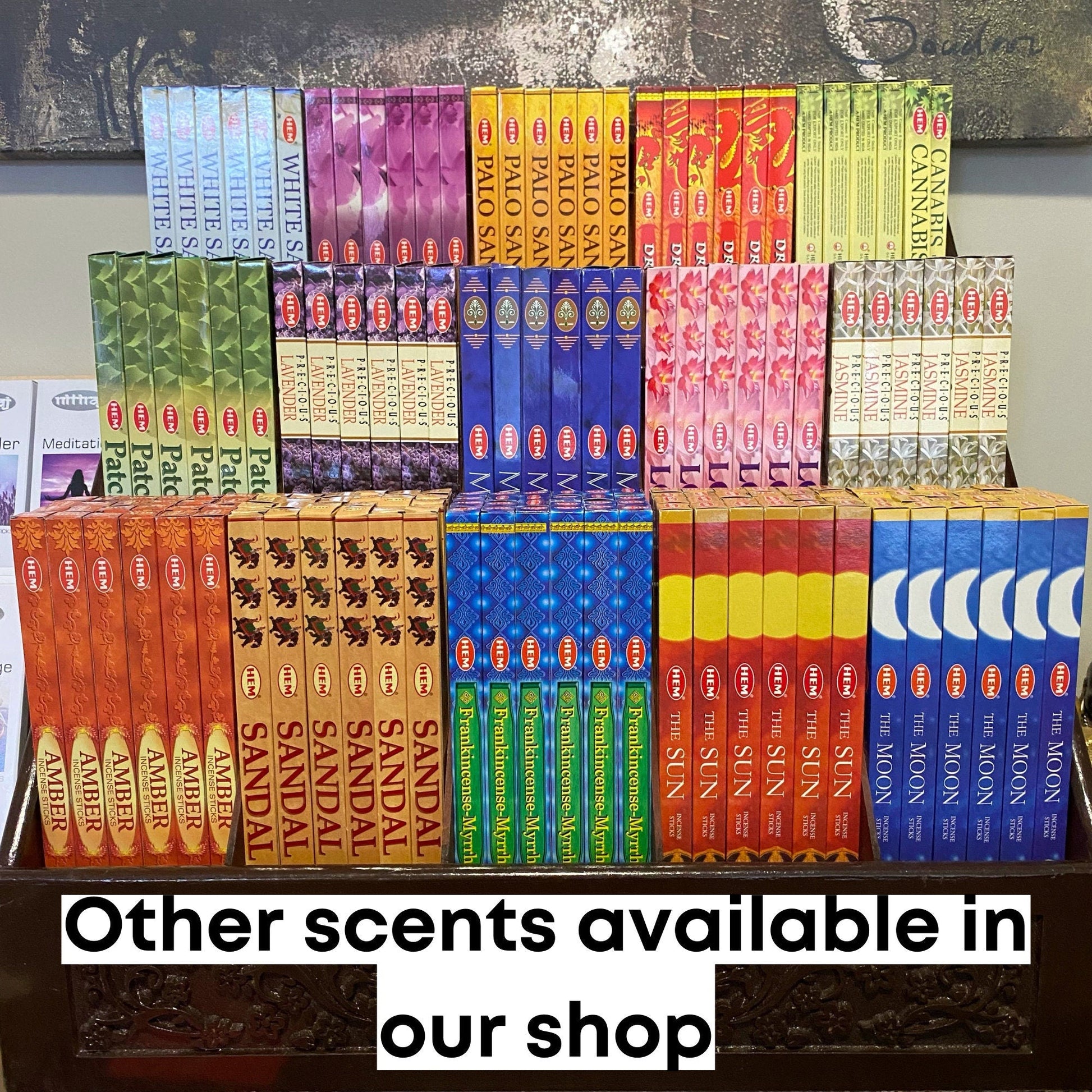 You will receive 1 (one) 20-gram square box of HEM The Sun Incense (Approx 20 Sticks Per Box) Or select a case of 6, which you will receive 6 boxes of 20 sticks each (120 total sticks). Each approx 9" long incense stick can burn for 30-60 minutes each, however, each stick and pack varies.