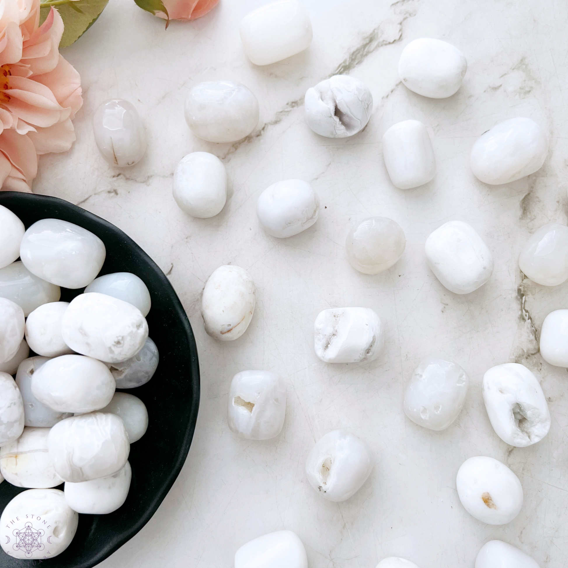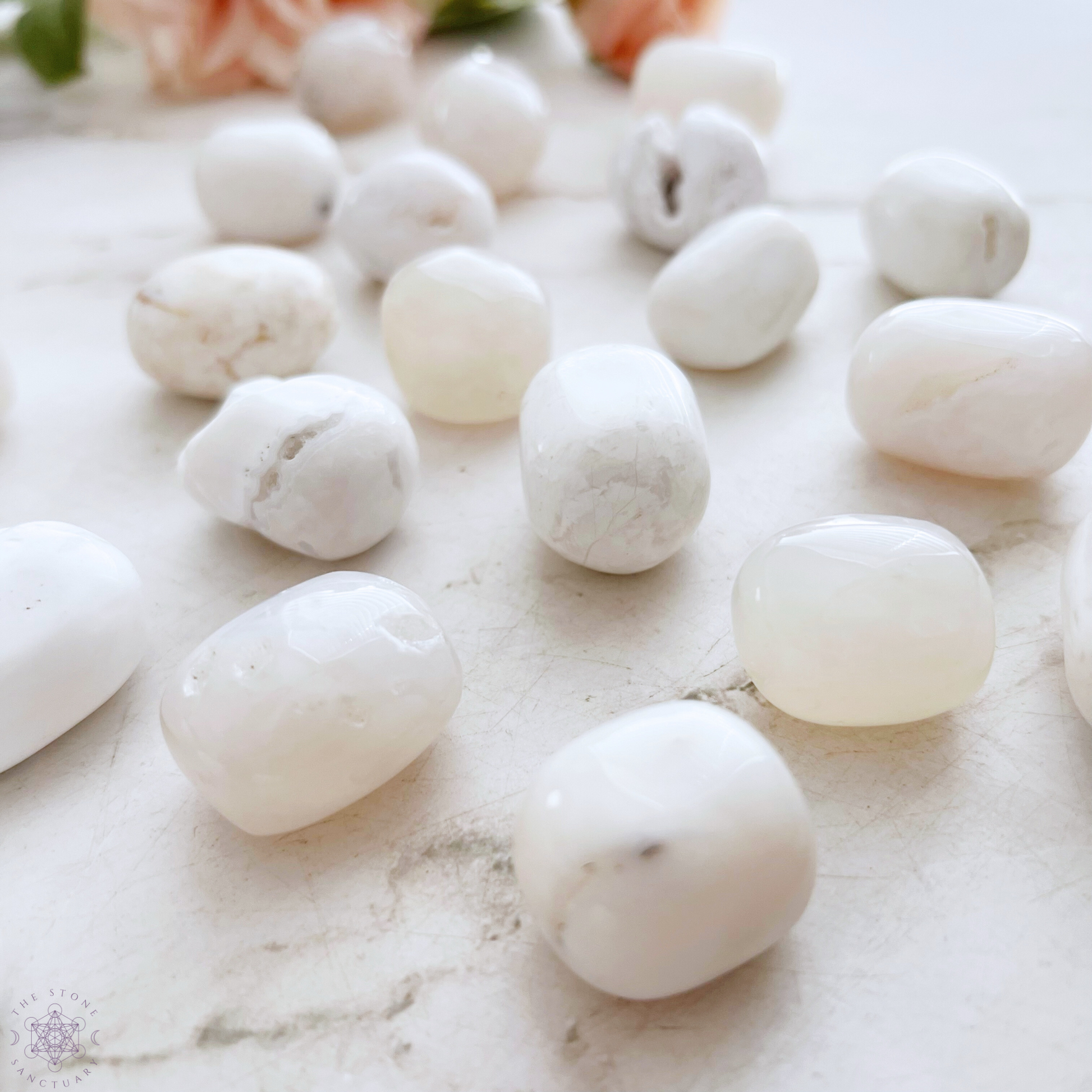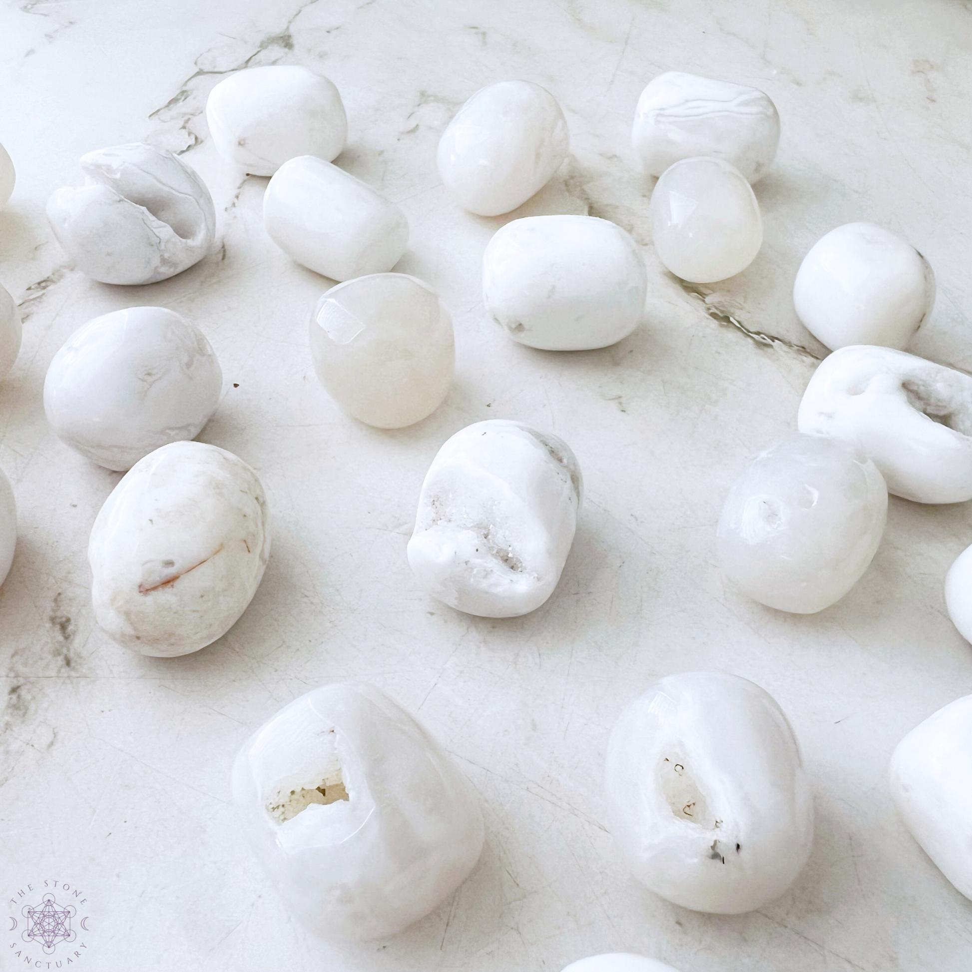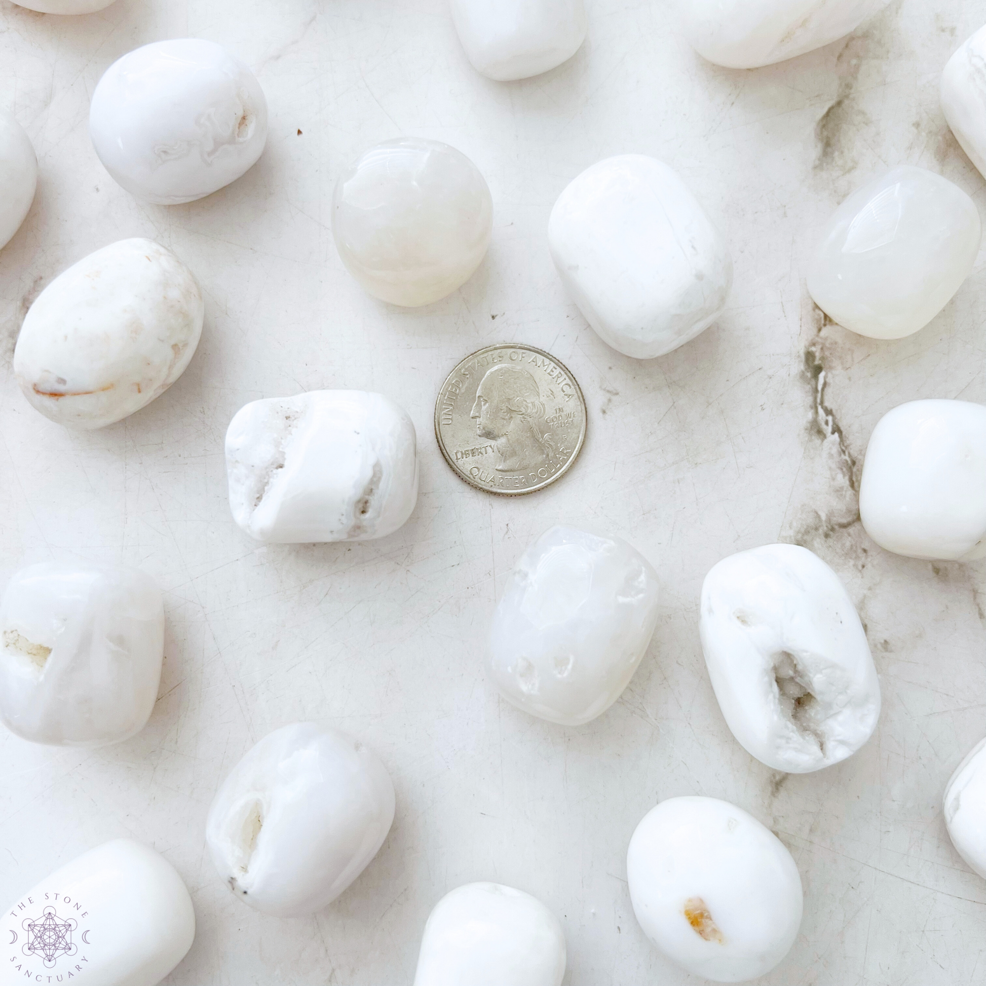 You will receive 1 Medium White Agate tumbled stone, intuitively chosen.