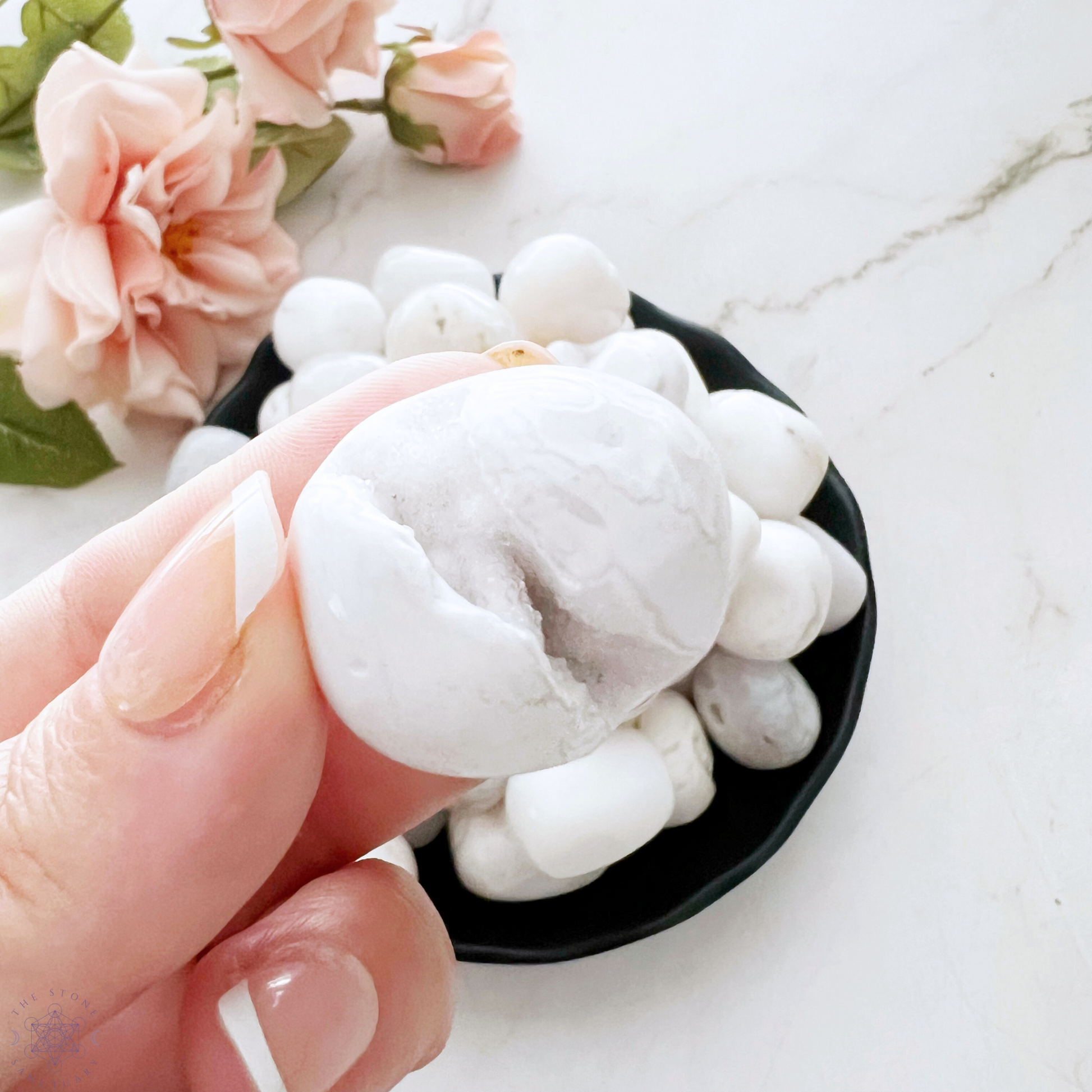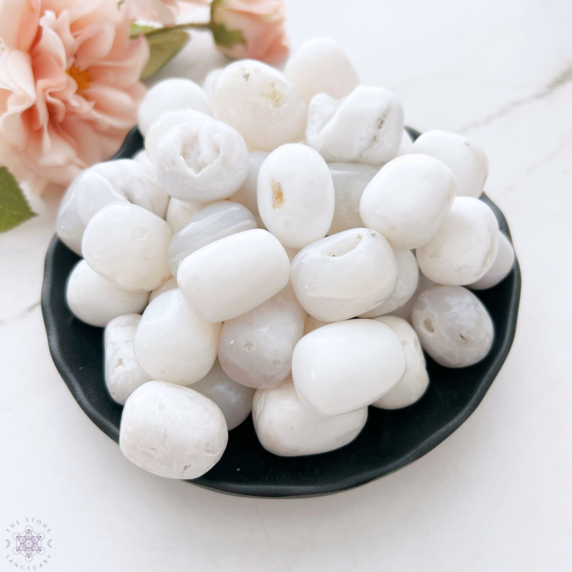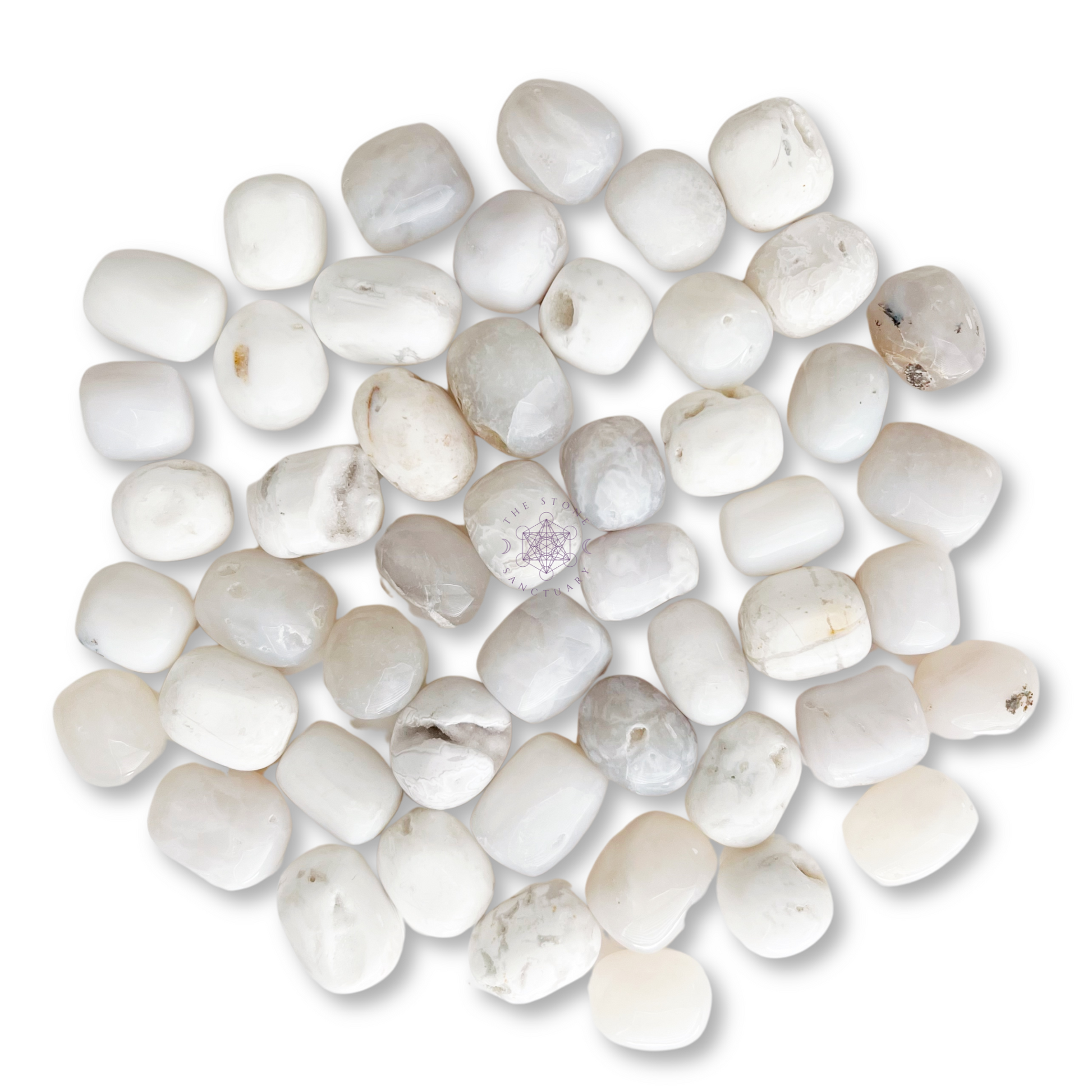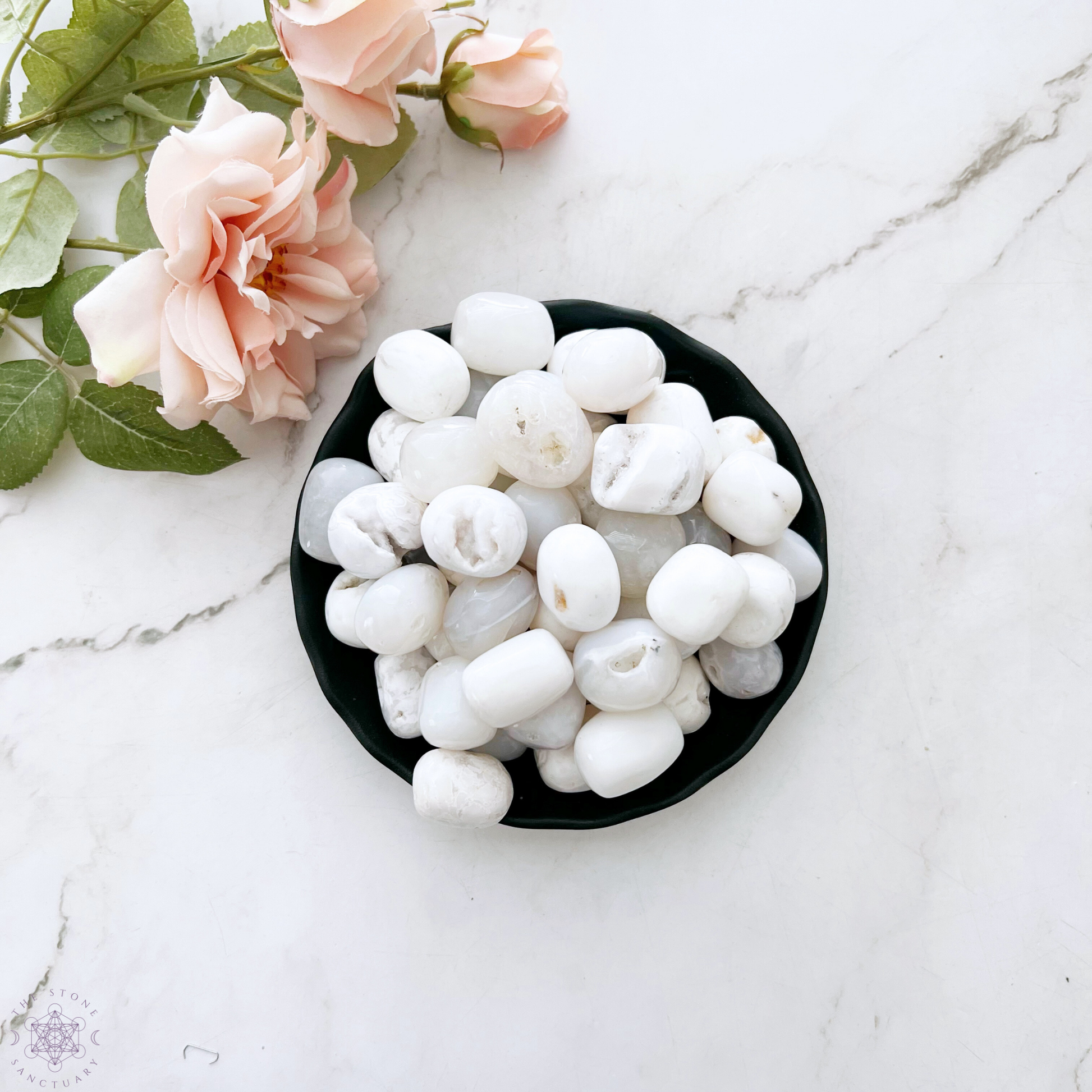 You will receive 1 Medium White Agate tumbled stone, intuitively chosen.