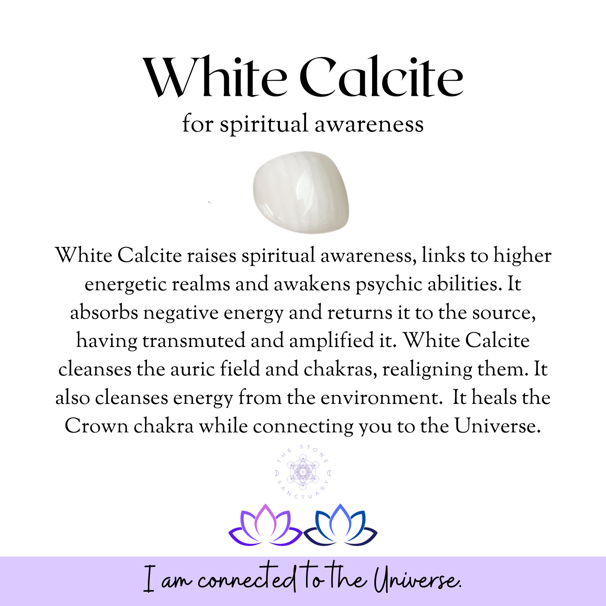 White Calcite is commonly associated with the Crown and Third Eye Chakras, as well as the Soul Star Chakra, making it a powerful tool for spiritual growth and intuition. It is believed to promote emotional healing, harmony, and peace, making it an excellent tool for managing stress and promoting well-being.