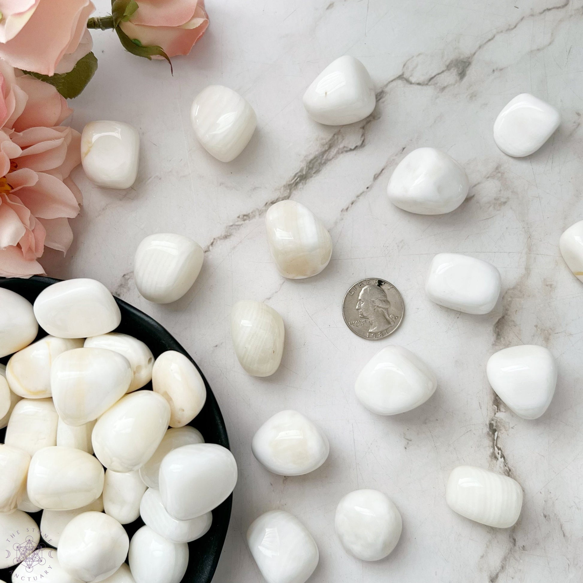 White Calcite is a powerful crystal that is believed to have many metaphysical properties, including enhancing intuition, promoting emotional healing, and promoting spiritual growth. Our White Calcite tumbled stone has been carefully polished to bring out its natural beauty, and some have light stripes and patterns, making it a beautiful addition to any crystal collection.