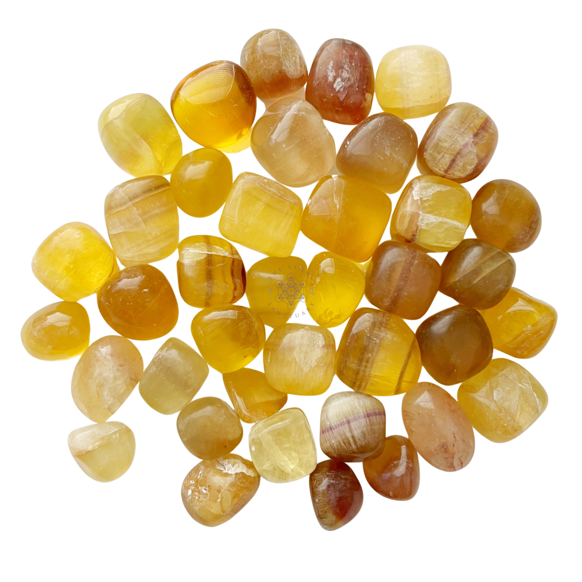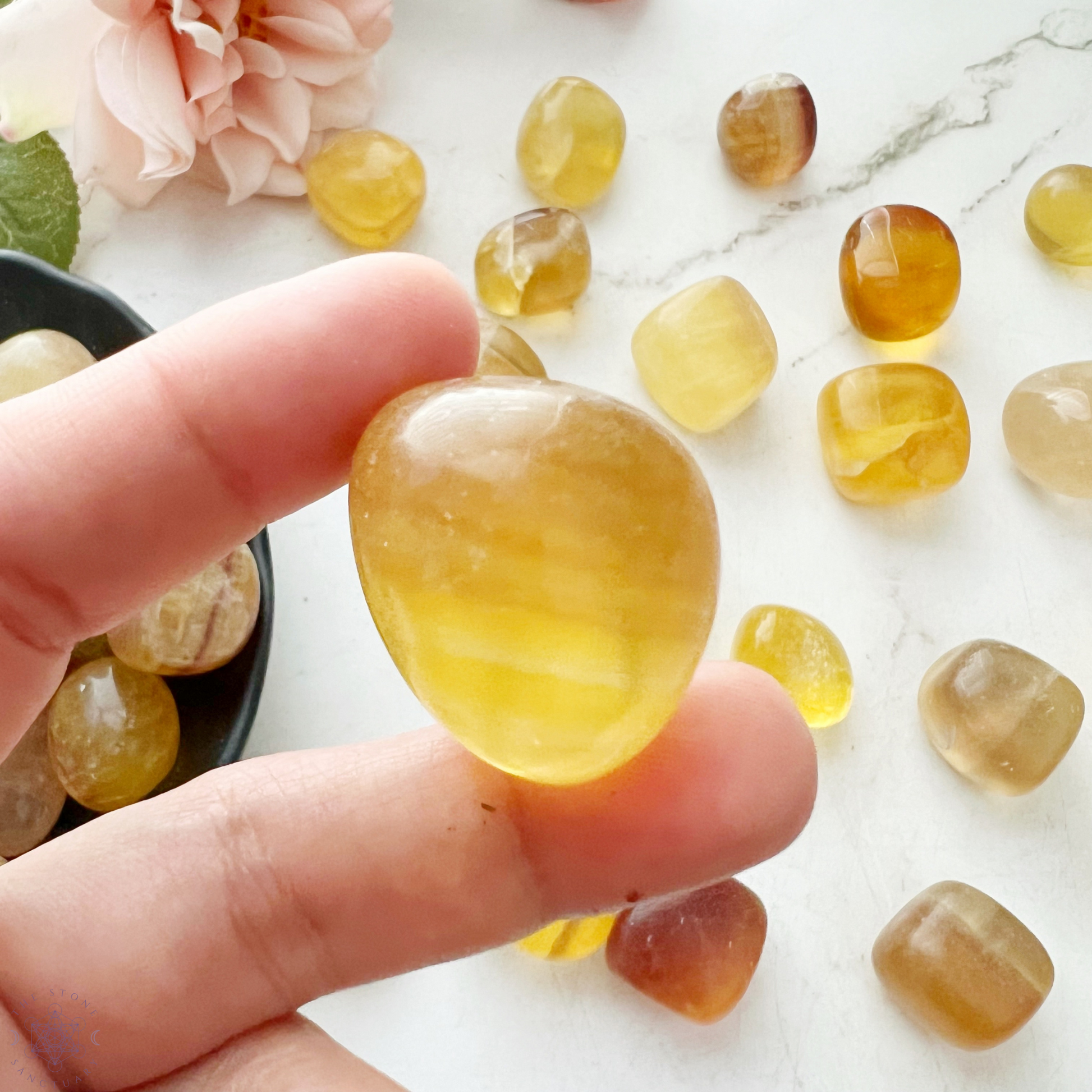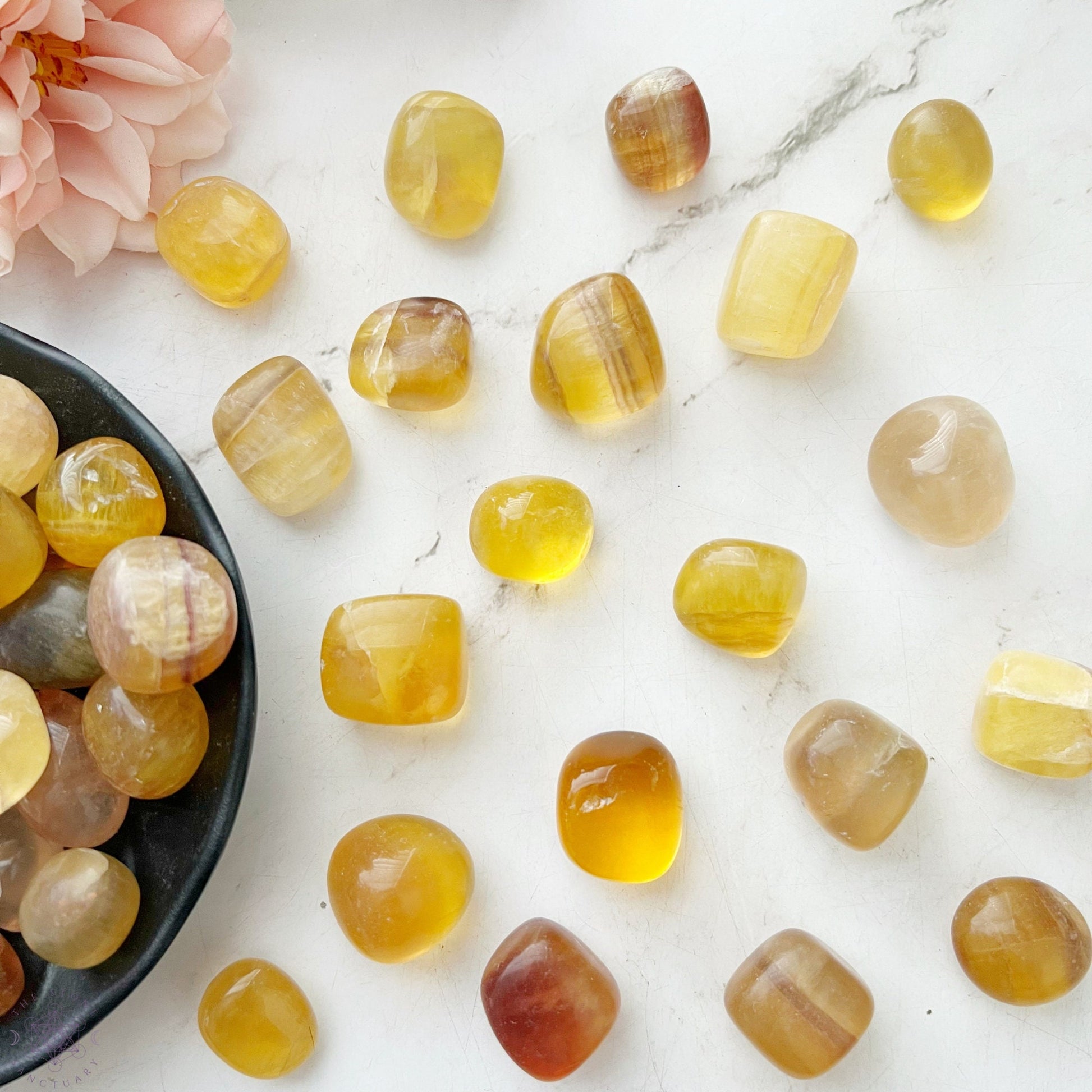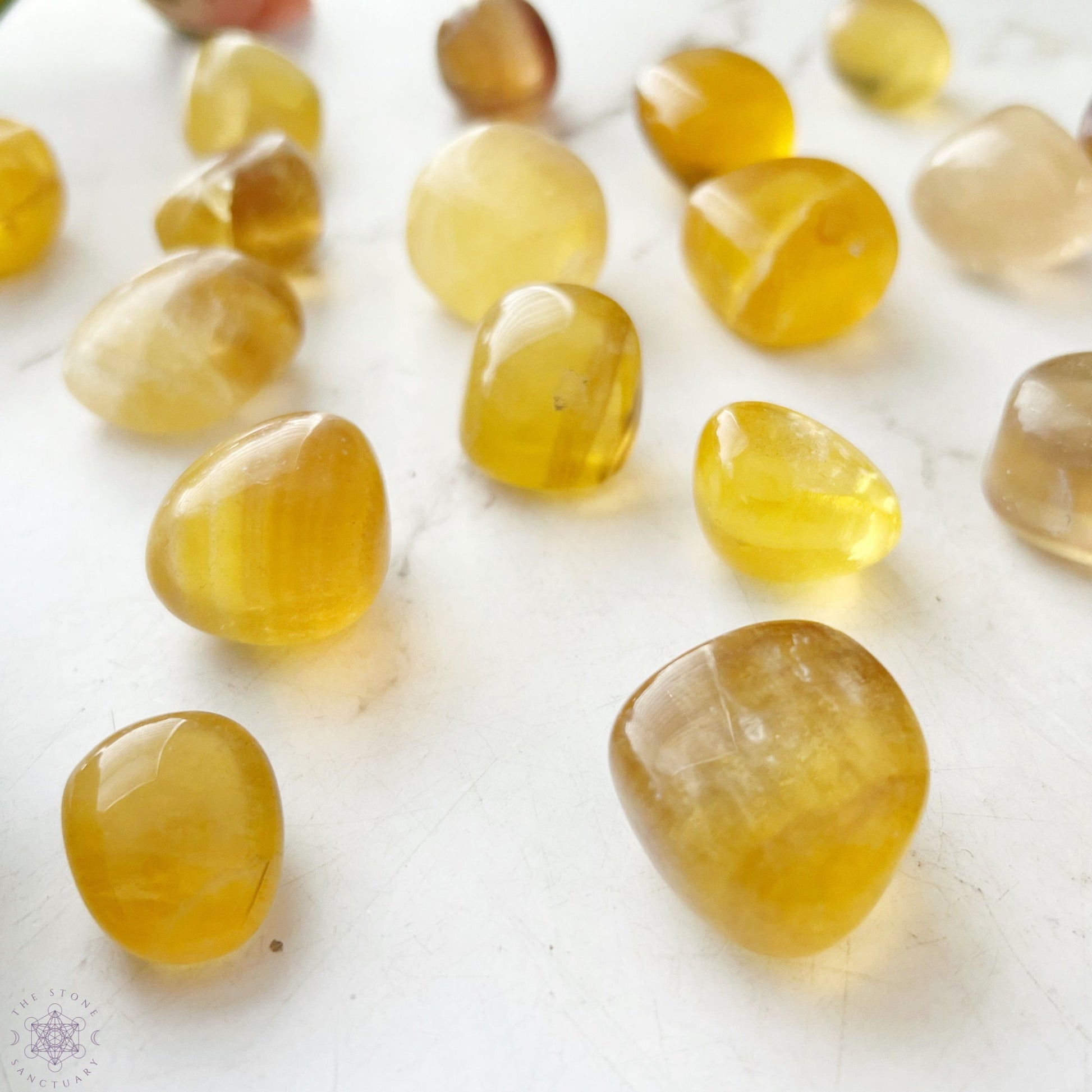 Experience the warm glow of our Yellow Fluorite tumbled stones, a true marvel sourced from the heart of earth's enchanting landscapes. Bask in the sunshine hues of these captivating crystals, as they infuse your life with joy, positivity, and a renewed sense of enthusiasm.