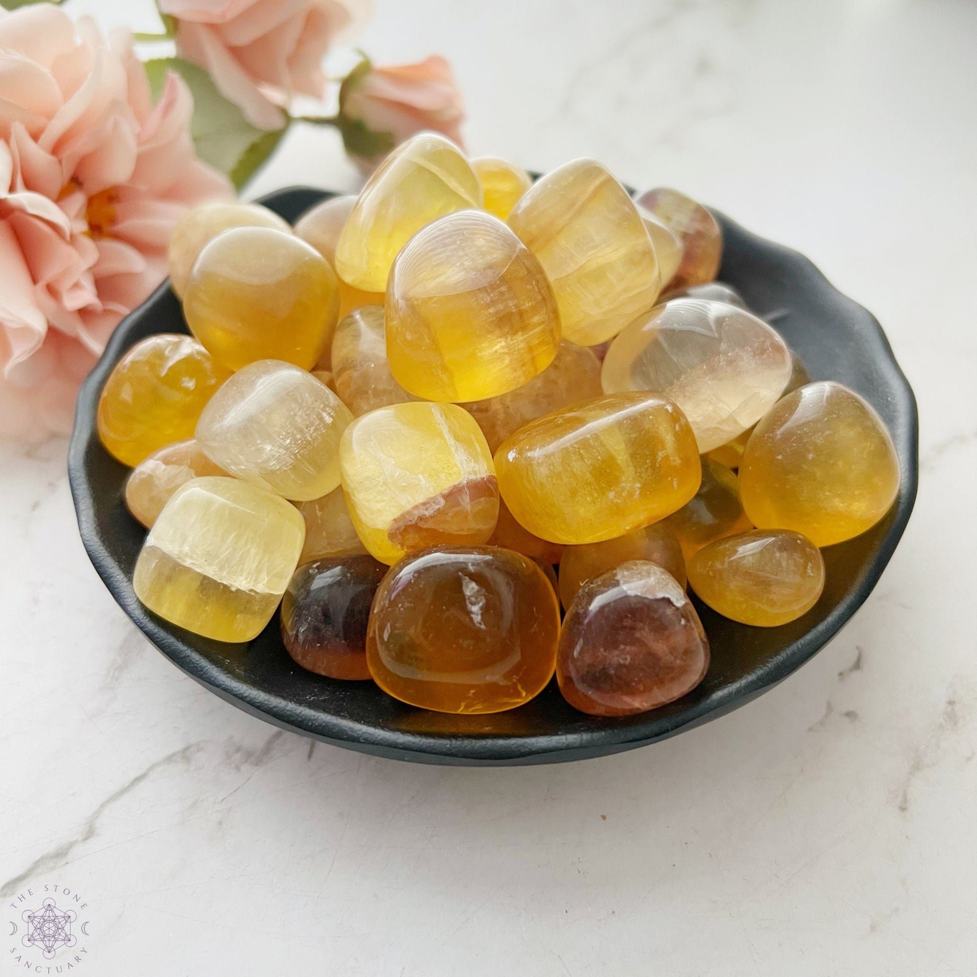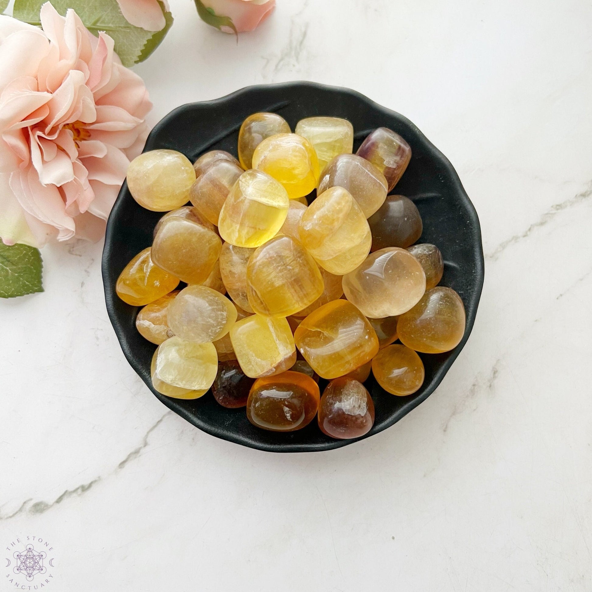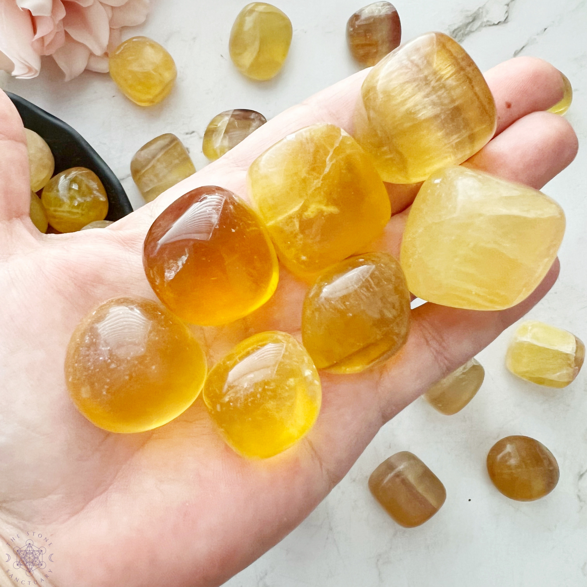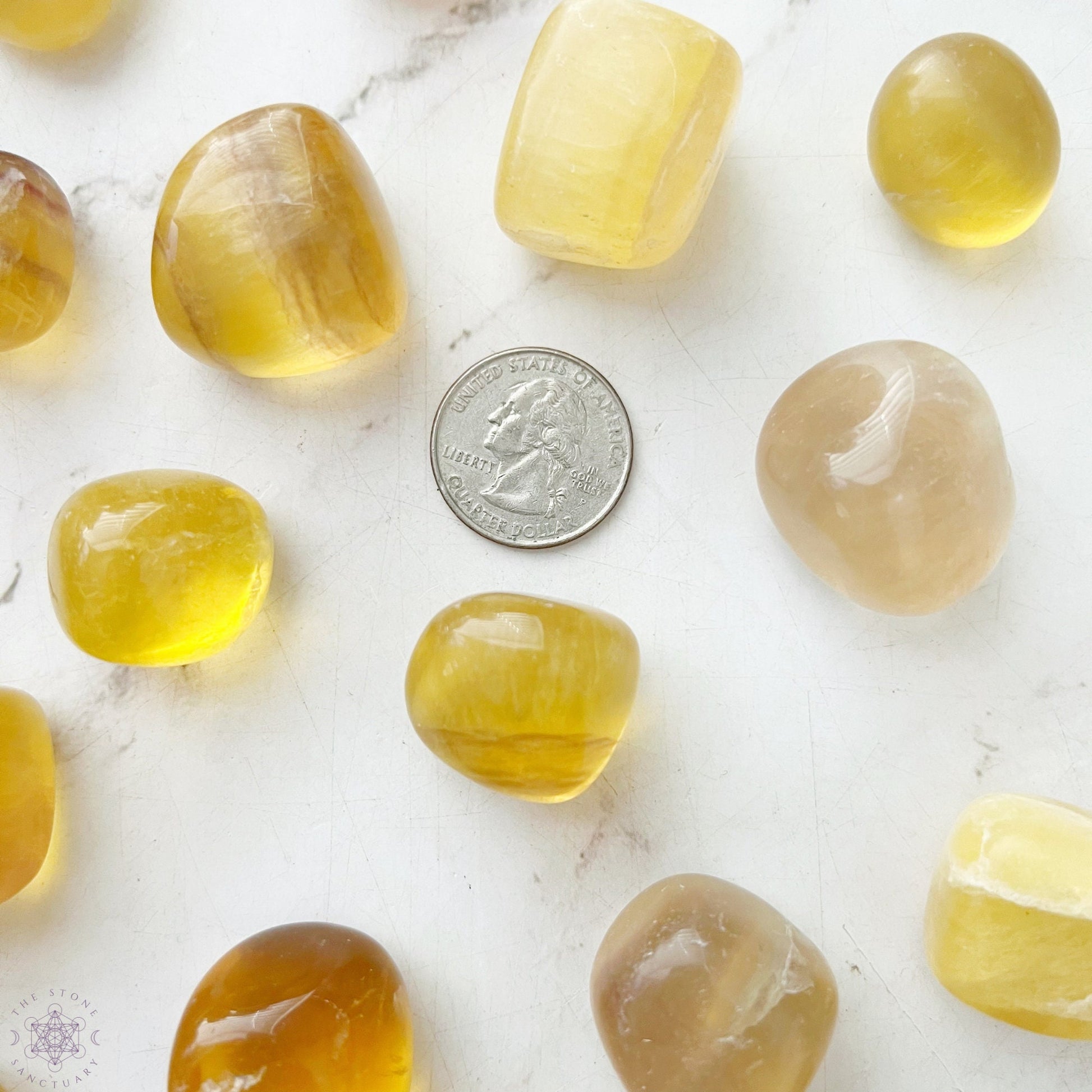 Experience the warm glow of our Yellow Fluorite tumbled stones, a true marvel sourced from the heart of earth's enchanting landscapes. Bask in the sunshine hues of these captivating crystals, as they infuse your life with joy, positivity, and a renewed sense of enthusiasm.