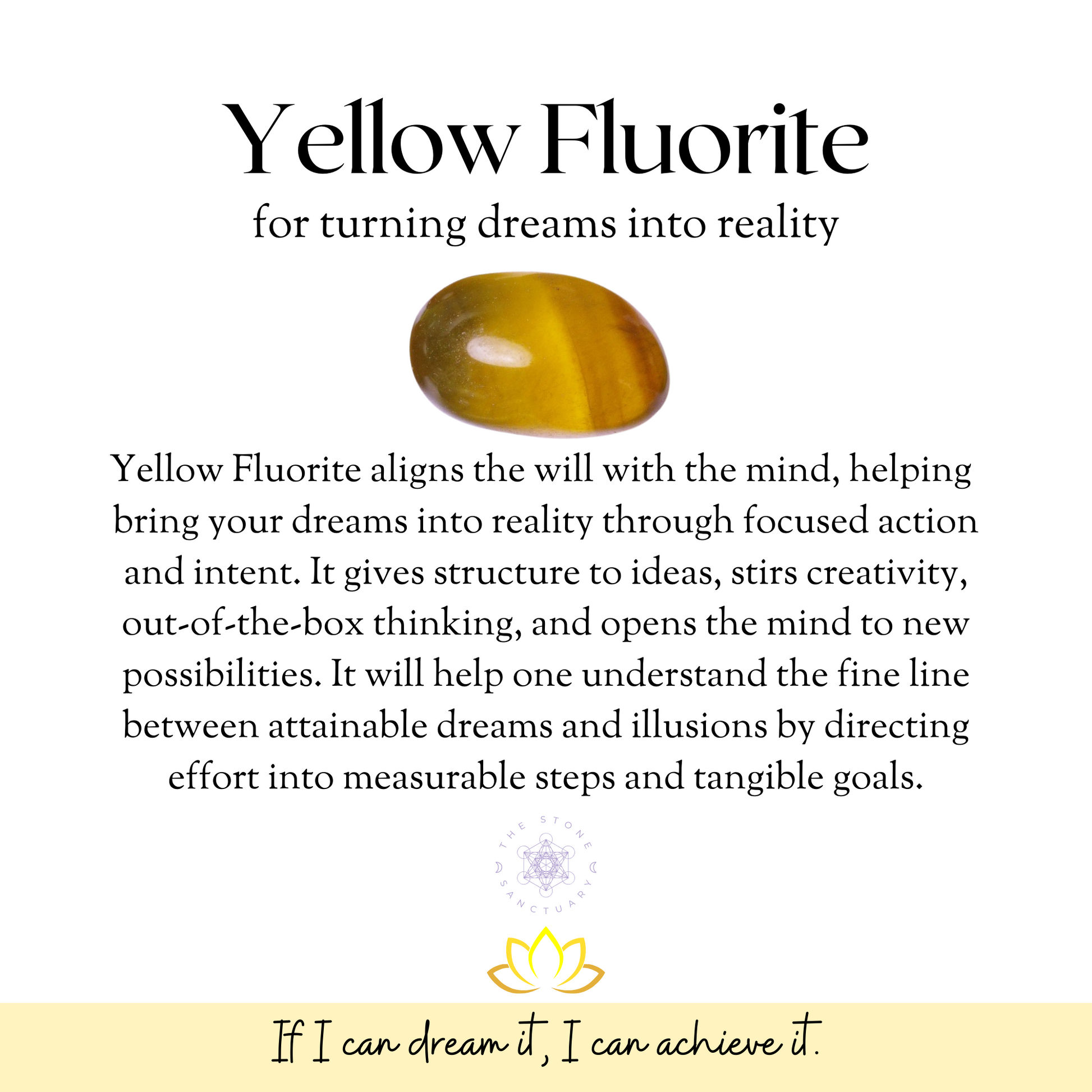 As natural wonders, each stone possesses its own distinct patterns and shades of yellow, ensuring that you own a truly one-of-a-kind piece. Let the radiant beauty and uplifting energies of Yellow Fluorite fill your life with positivity and light, creating a sense of harmony and well-being in your daily journey.